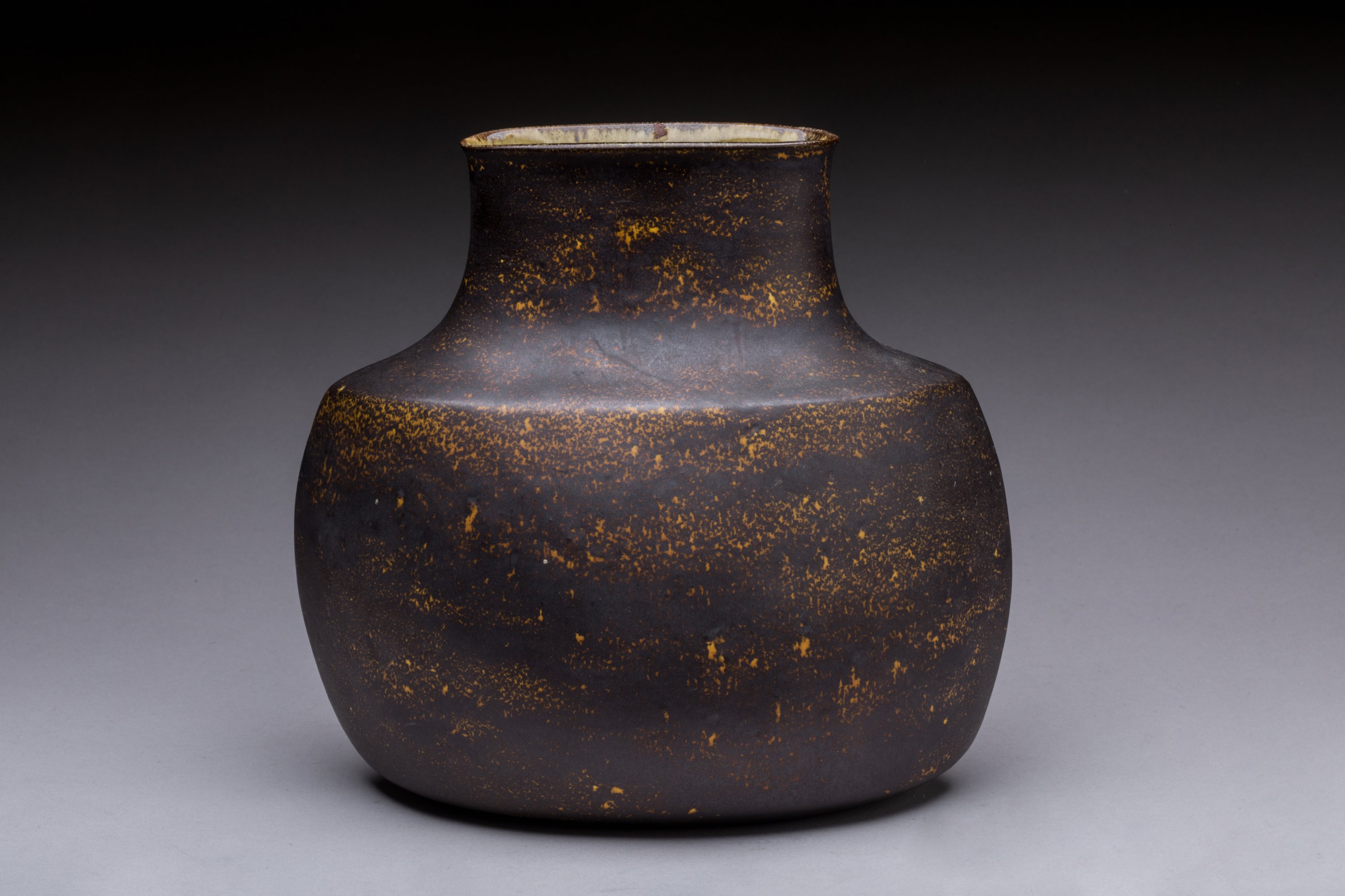 Vase ovoïde en céramique émaillée marron noir moucheté, c. 1970.