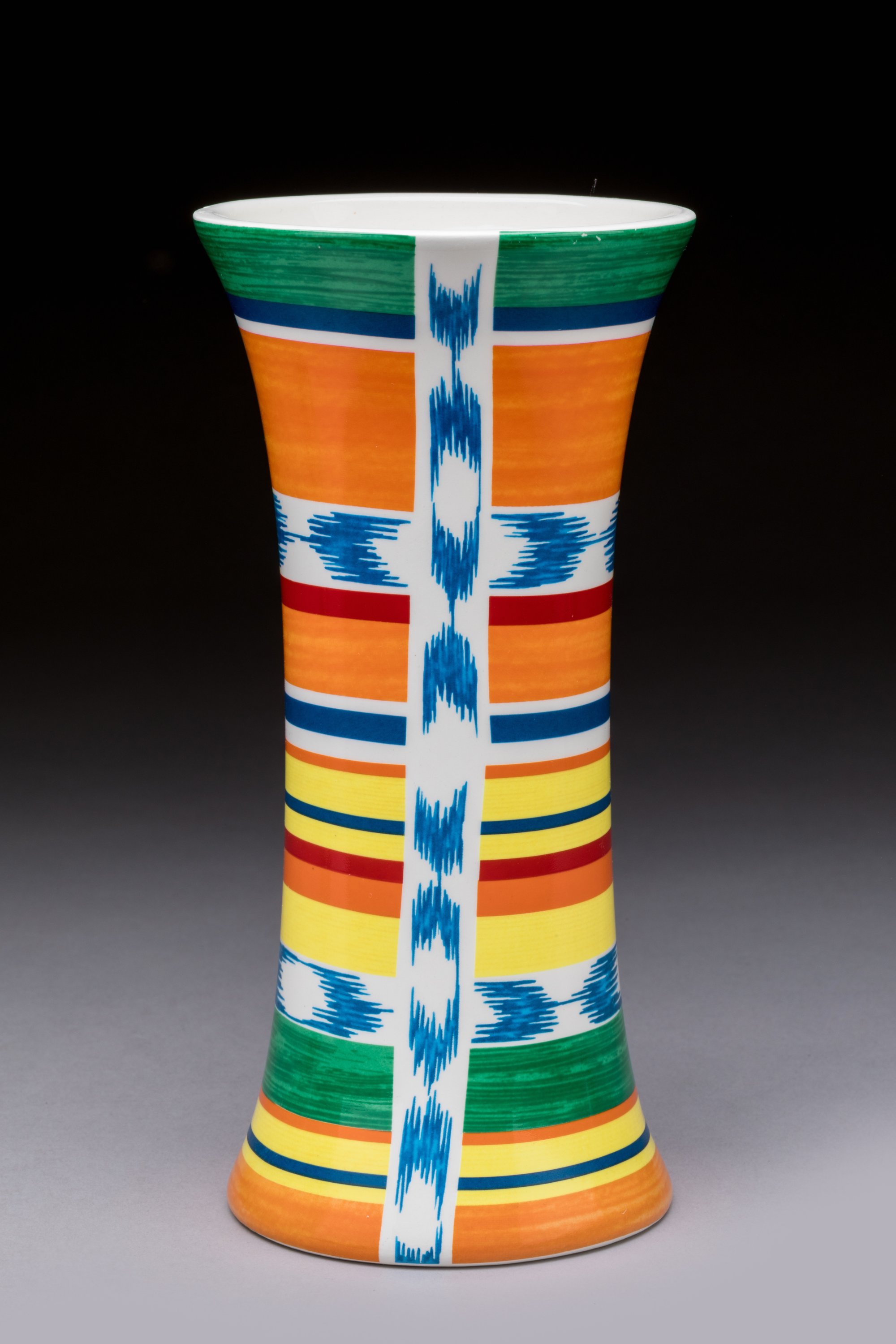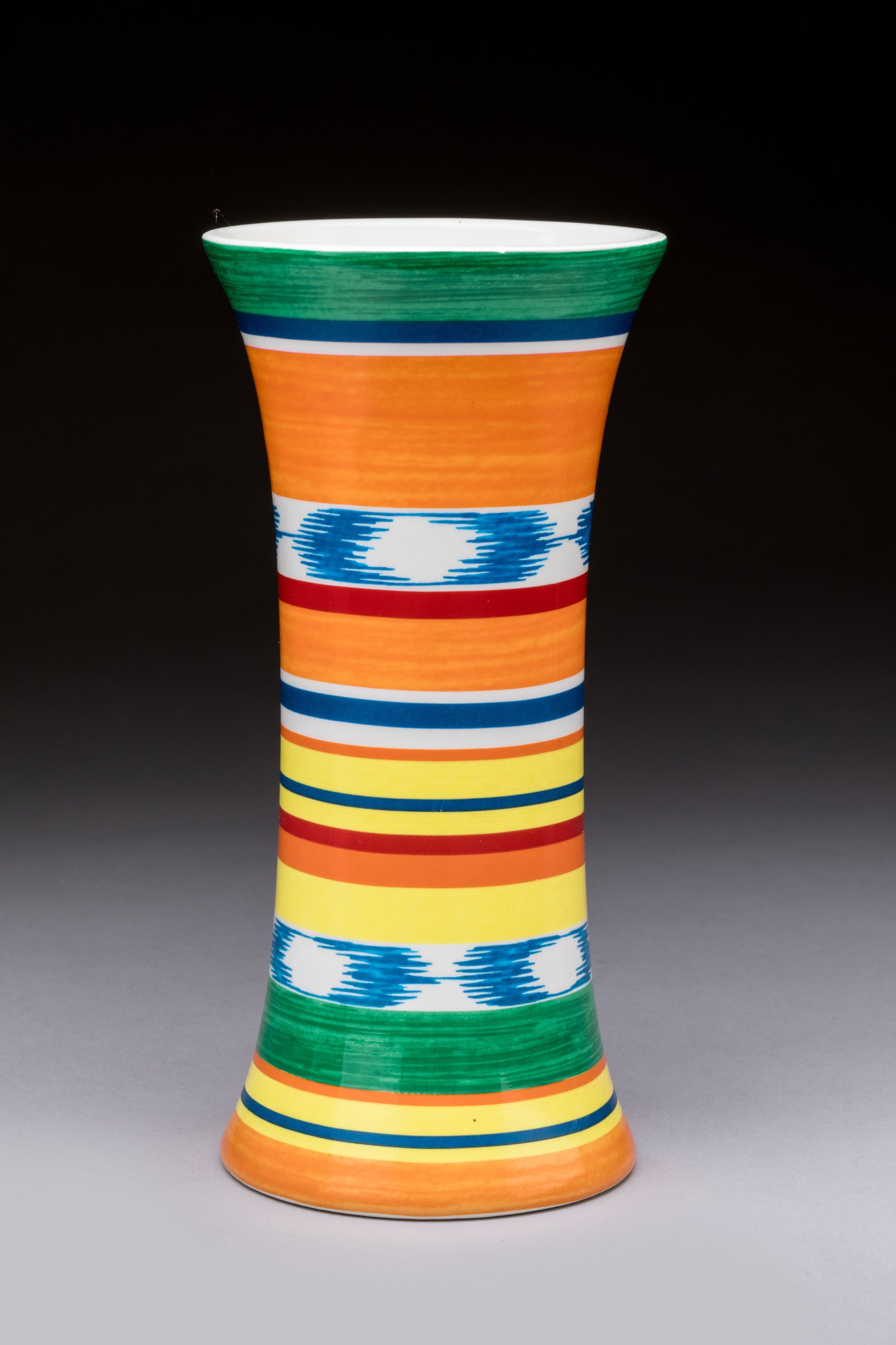 Vase cornet en céramique polychrome.