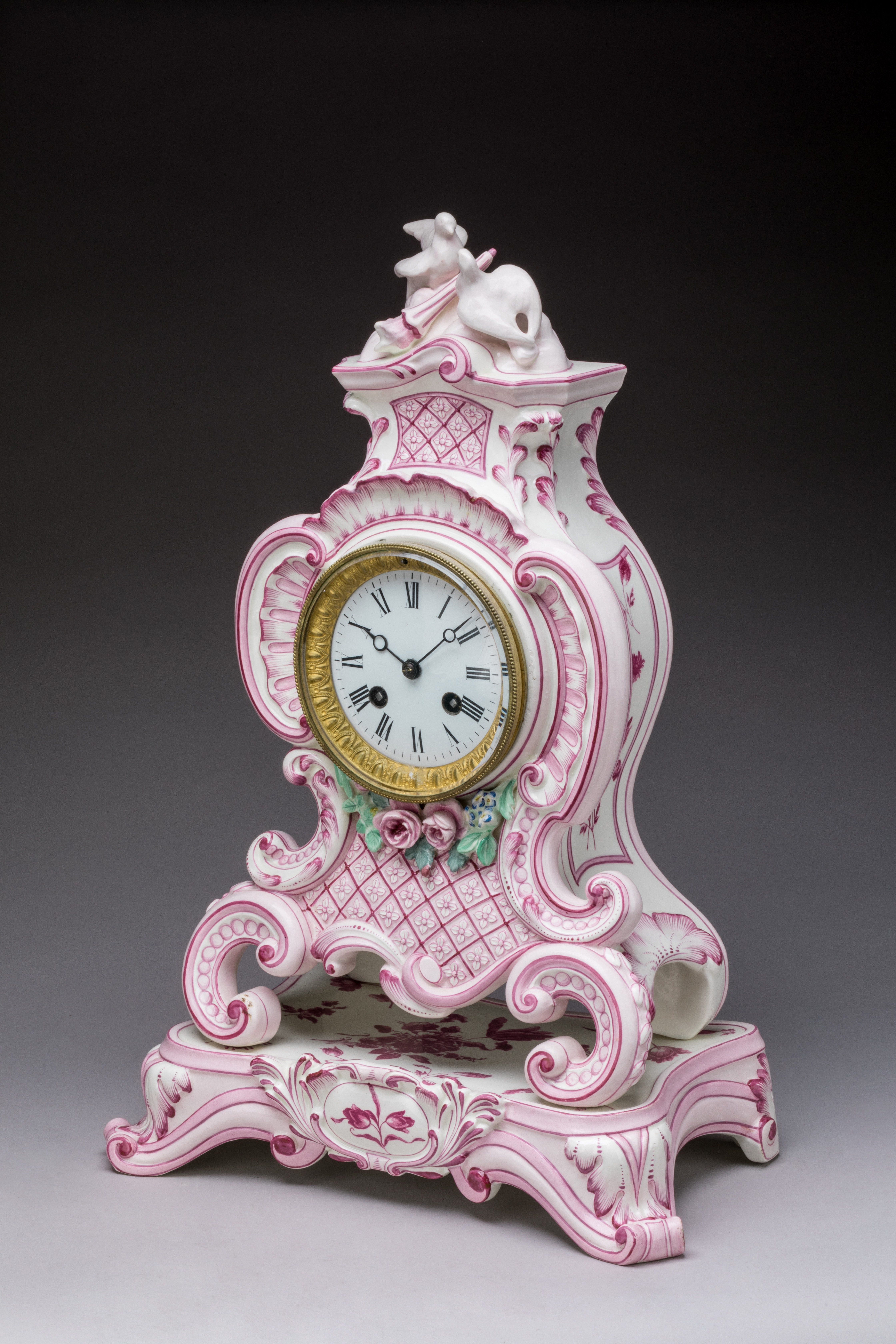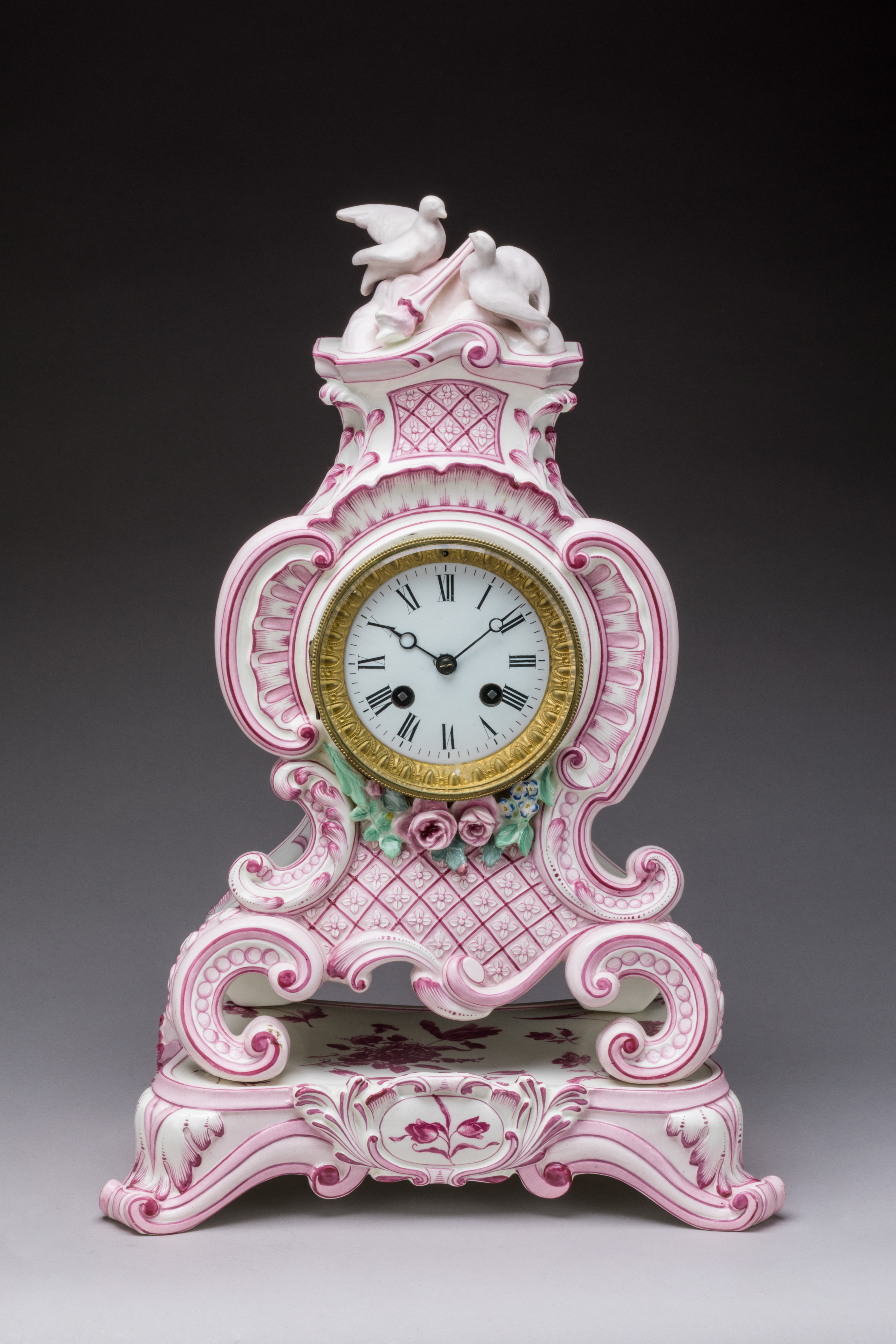 en céramique émaillée en camaïeu rose à la façon de Saxe avec des roses en applique.