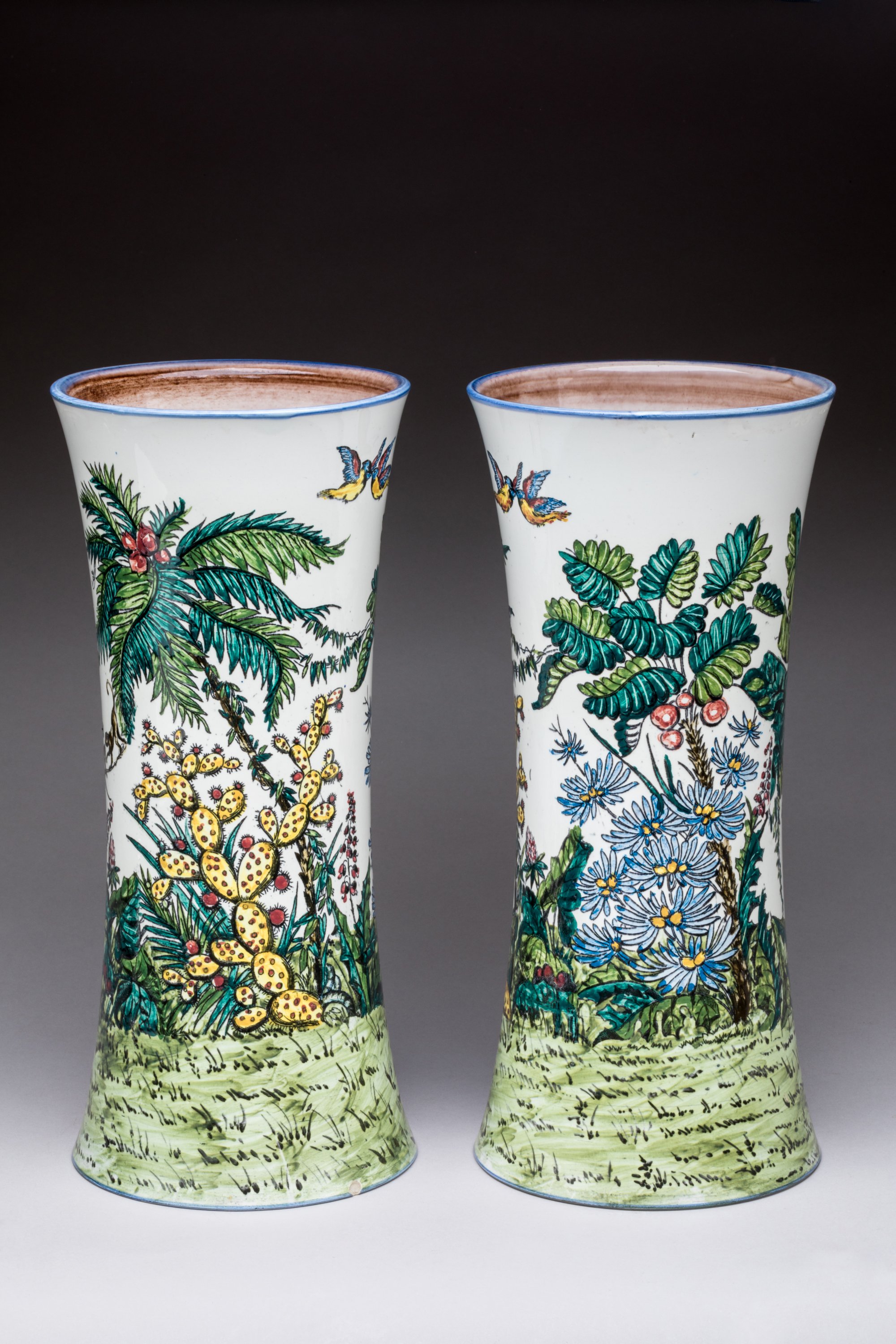 en céramique émaillée à décor de scènes de la foret équatoriale dite Tamarin.