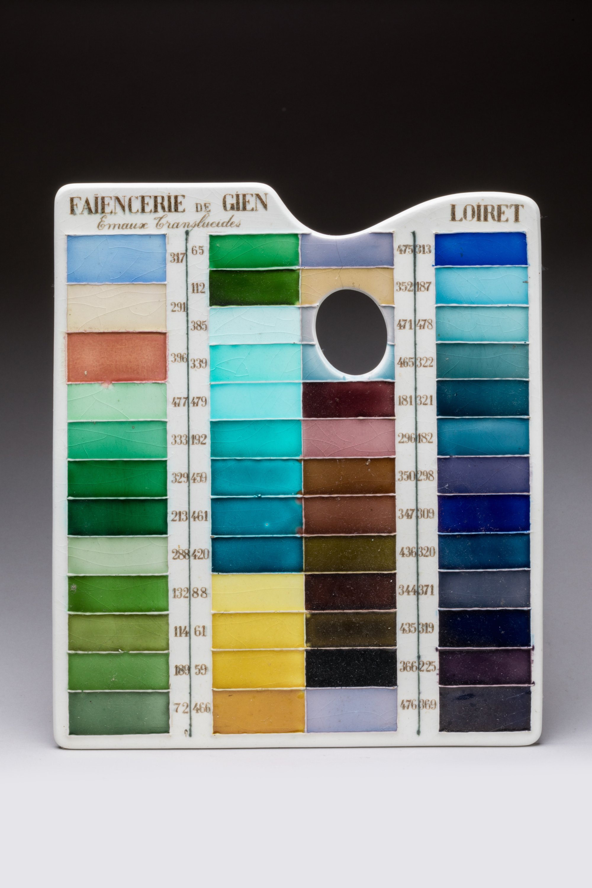 NUANCIER PALETTE, c. 1930de la faïencerie de Gien présentant cinquante...