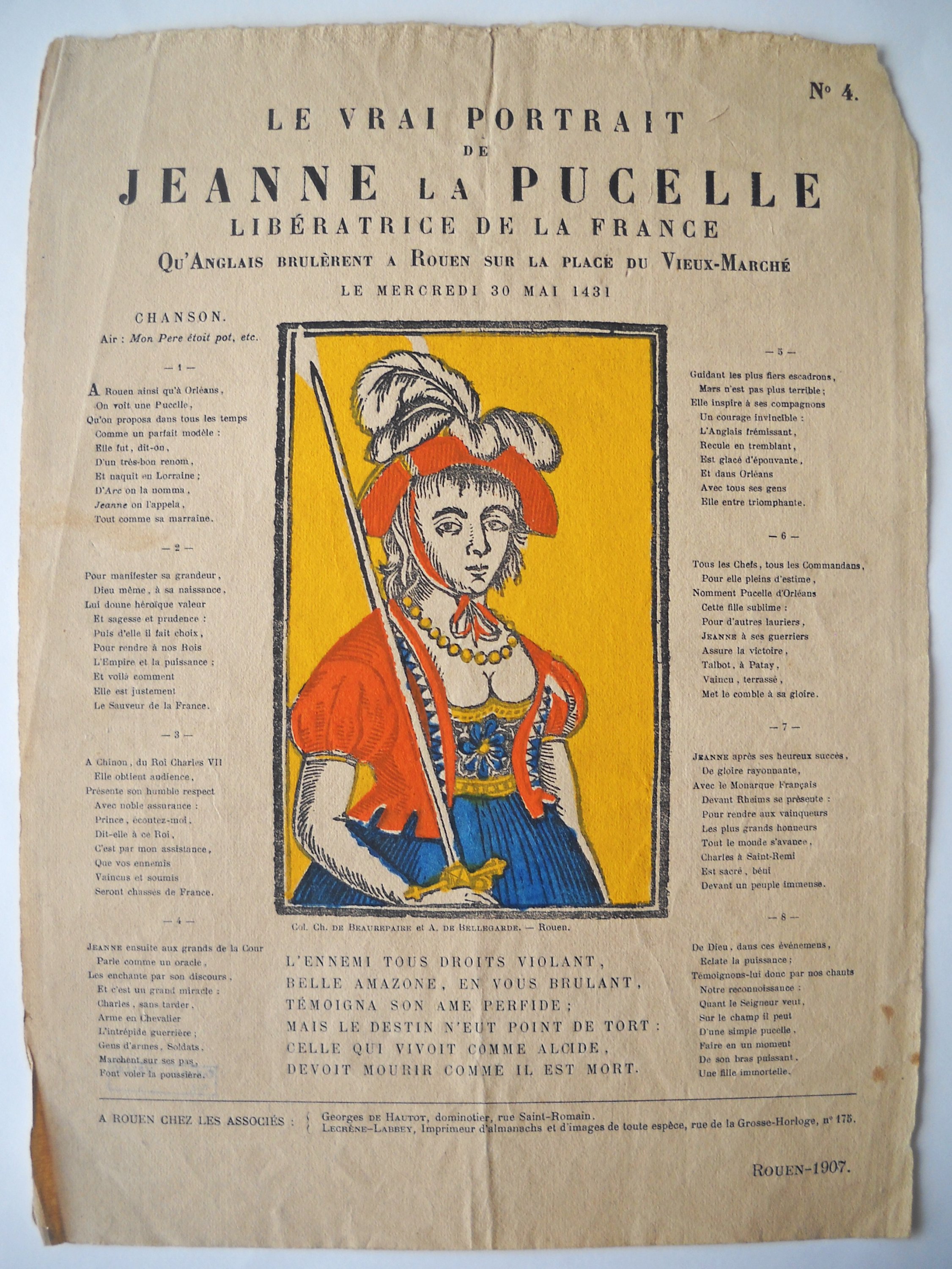 ", milieu du XIXe s., 43,5 x 32 cm - " LE VRAI PORTRAIT DE JEANNE LA PUCELLE