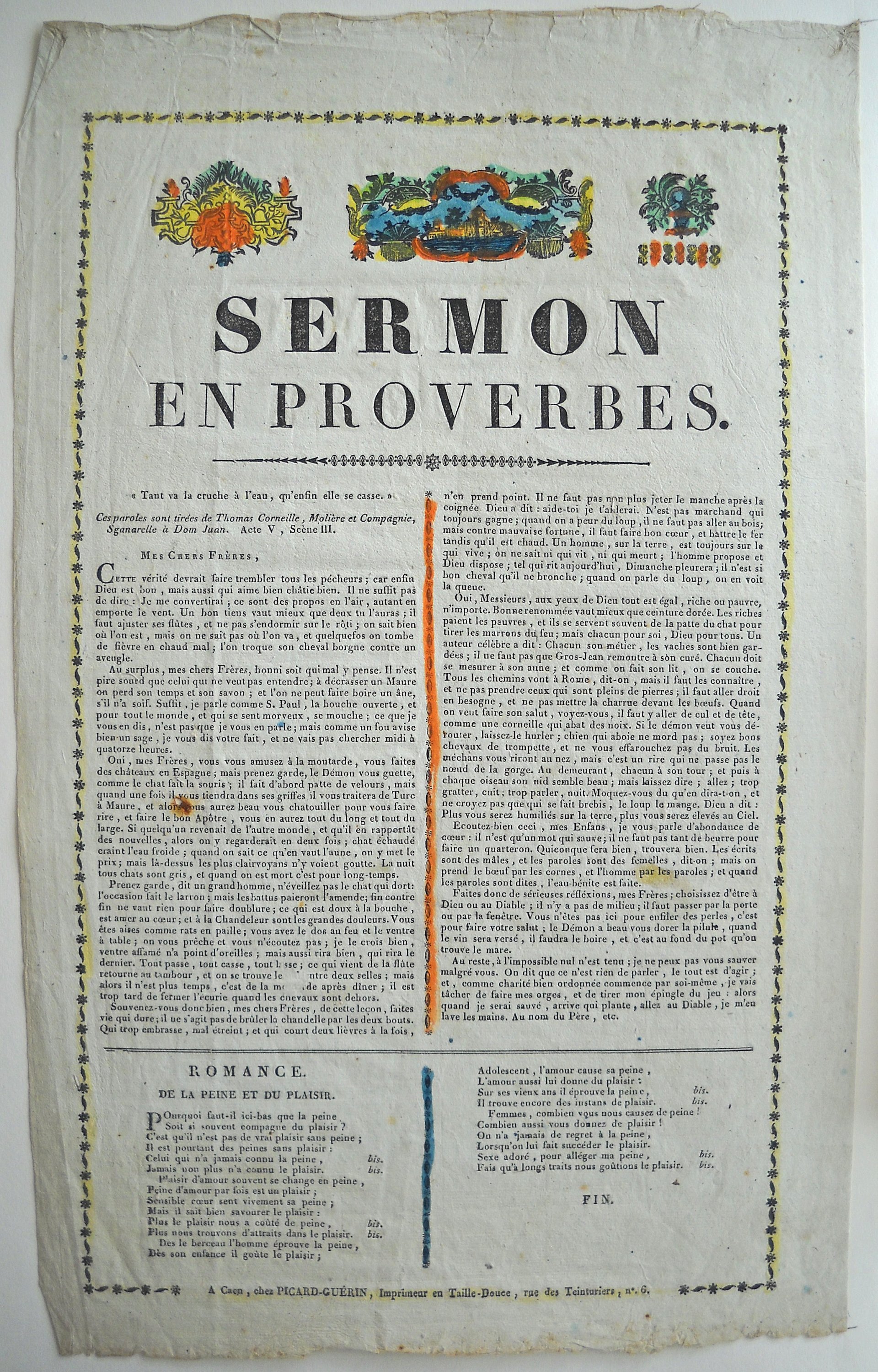 La Ville de Caen a été, du Premier Empire à la Monarchie de Juillet, un centre de production d'images populaires, la fabrique et l'imprimerie la plus active étant celle des Picard. Ils ont pratiqué la gravure sur bois comme la taille douce. Jean-François PICARD signe PICARD-GUÉRIN associant son nom à celui de son épouse. Alphonse PICARD, reprend l'imprimerie familiale en 1831 mais décède dès 1835. Il n'édite alors que des images d'après des bois, contrairement à son père qui utilisait la technique de la taille-douce. De 1835 à 1841, sa veuve se contente d'écouler le stock.