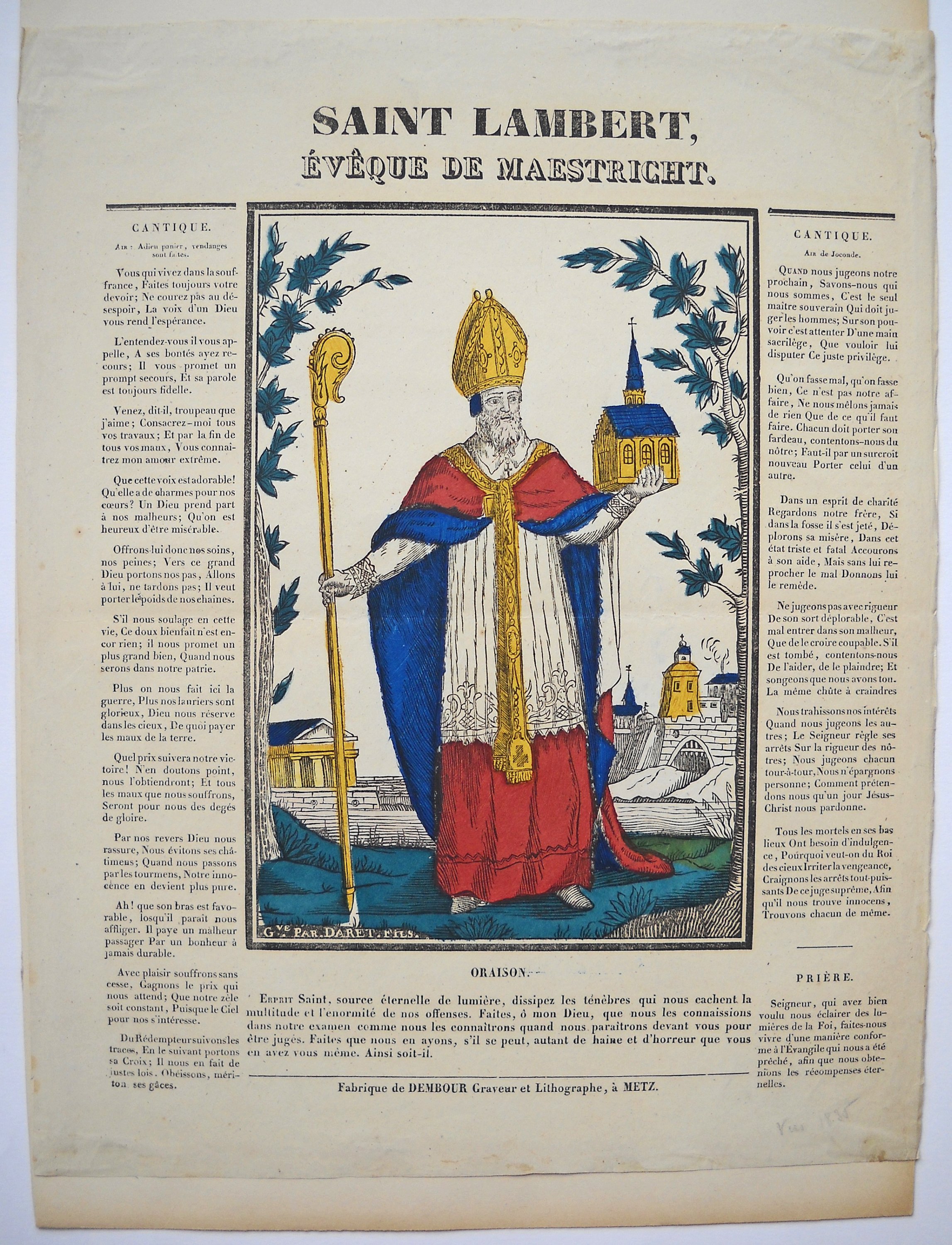 [Imagerie religieuse et populaire] METZ. Sujets populaires et religieux, petits formats. Adrien-Népomucène DEMBOUR (1799-1887), actif seul de 1835 à 1840.