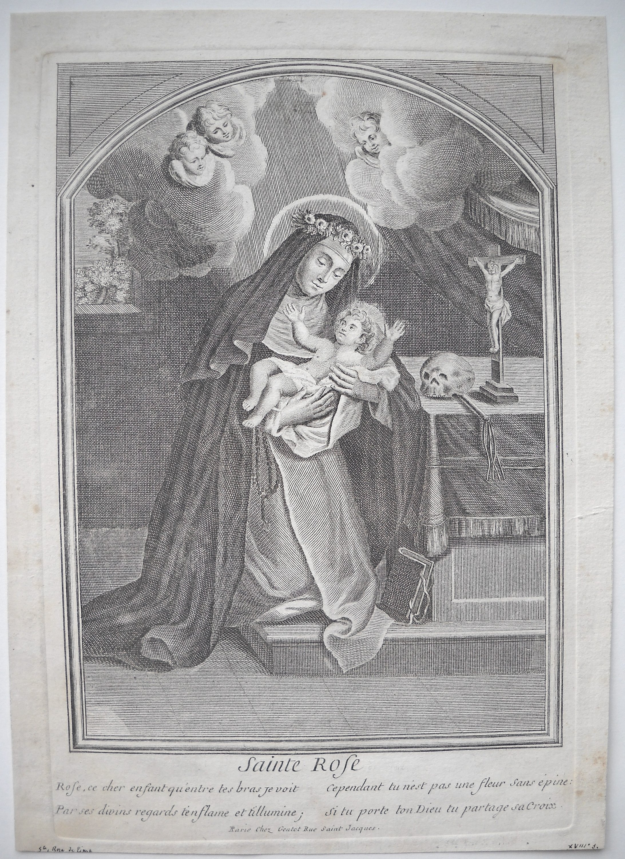 A Lyon chez Daudet rue merciere ", papier vergé, entre 1725 et 1760, 41 x 26,5 cm - " Sainte Rose