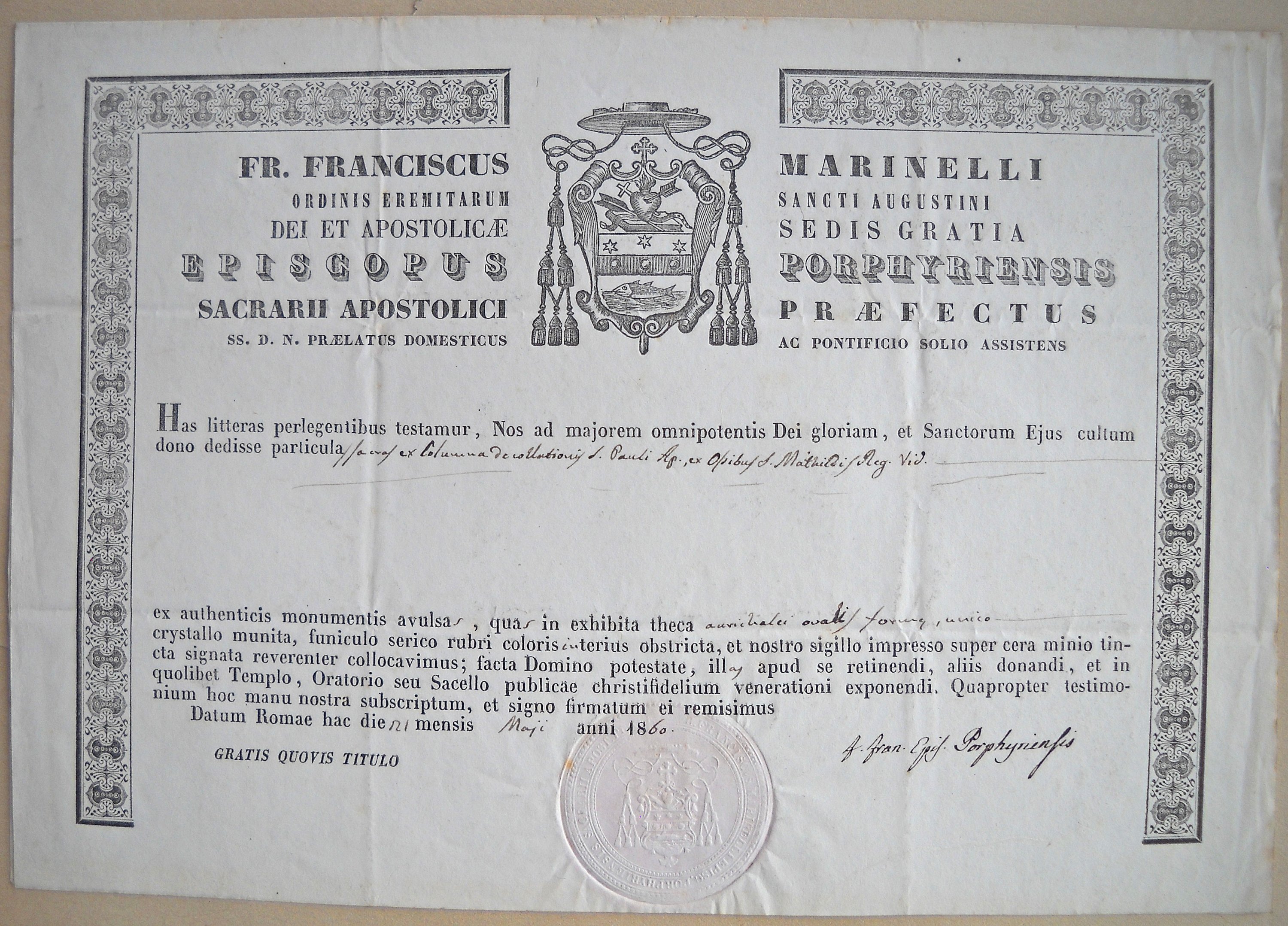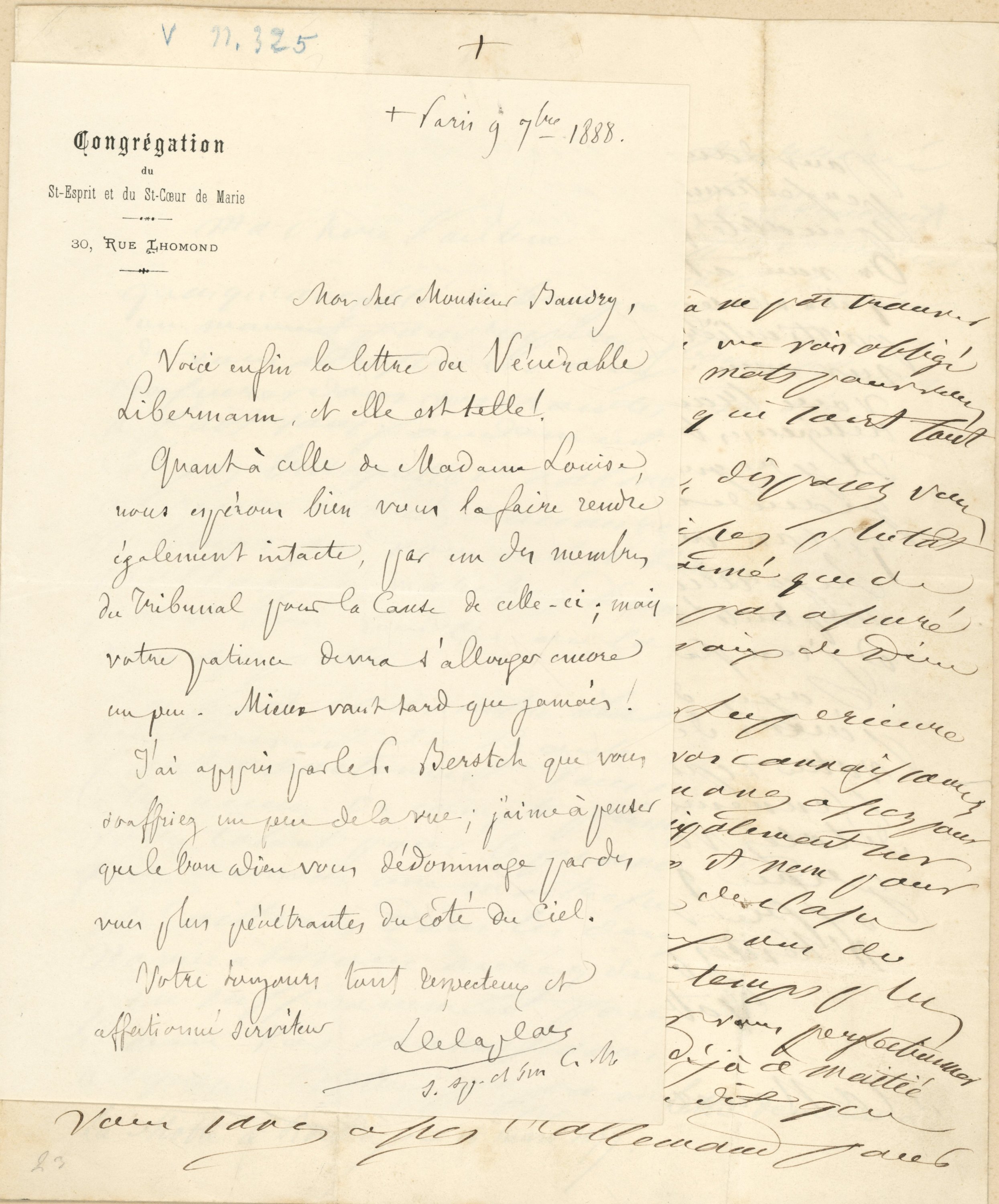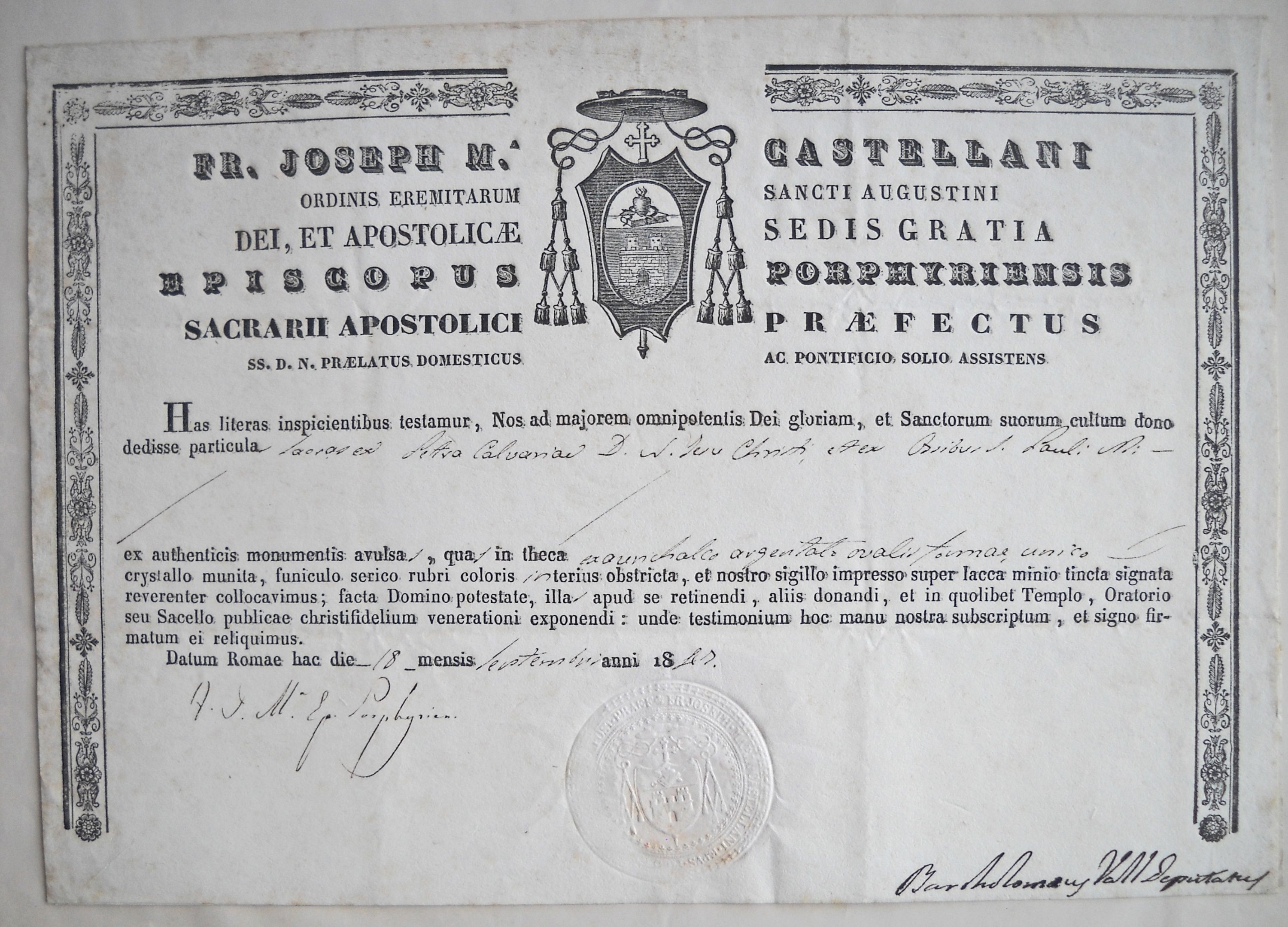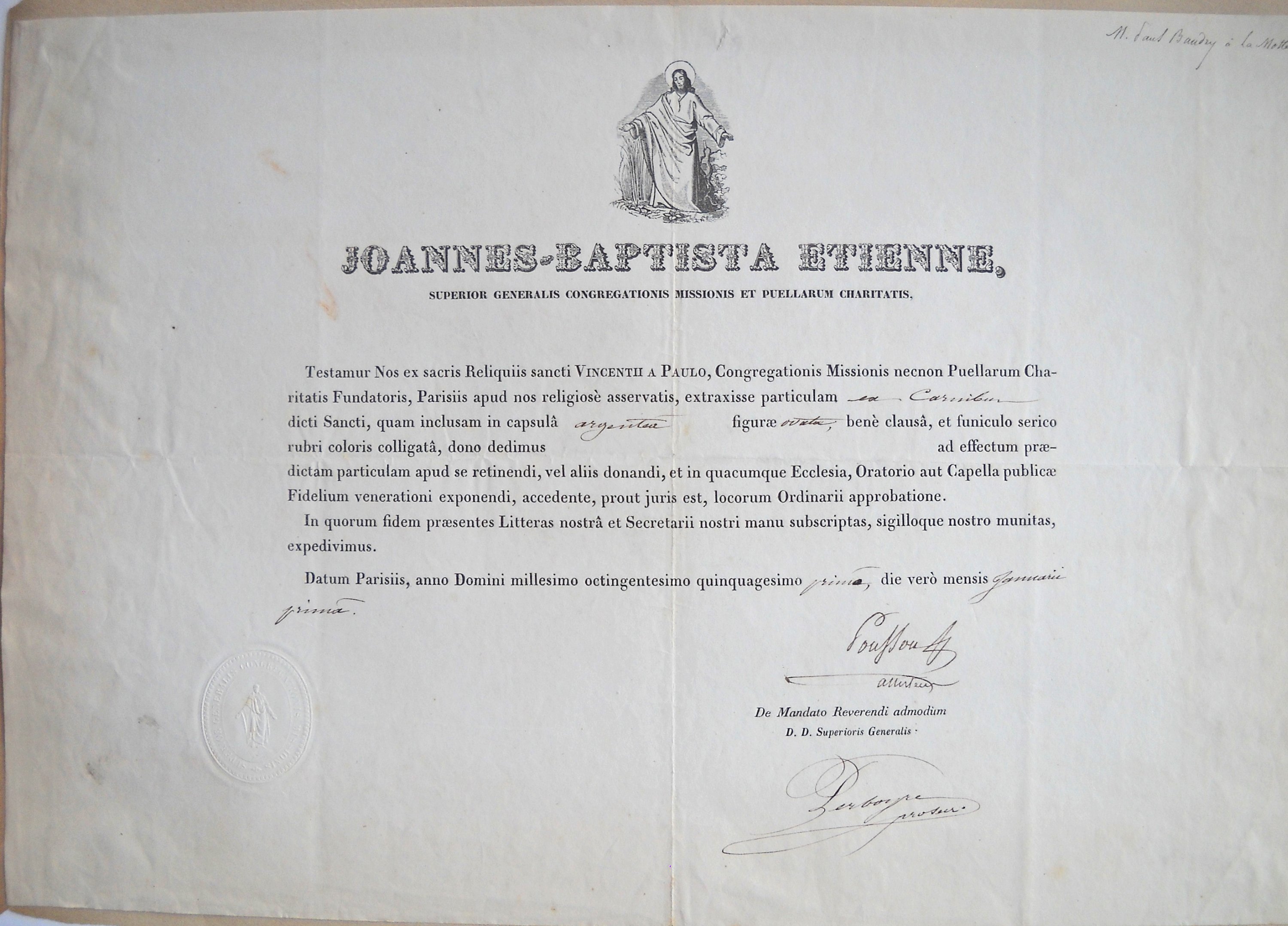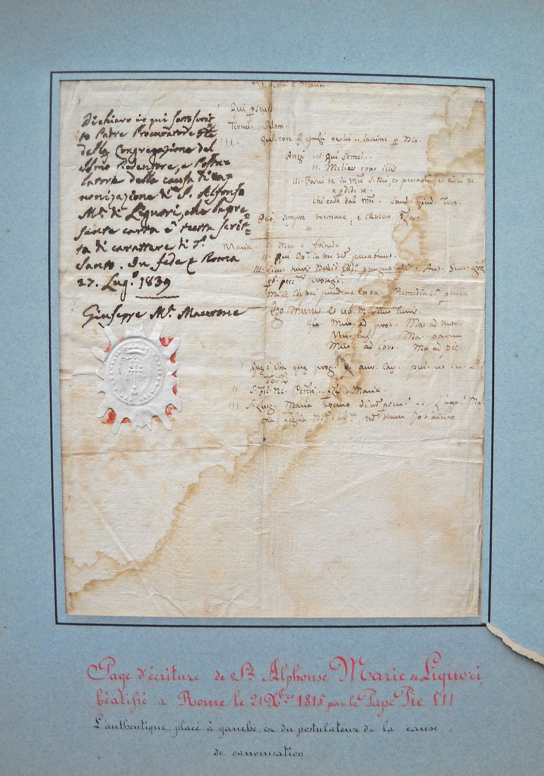 Lot de + de 105 documents divers dont 4 fragments de manuscrits, XIV ou XVe siècles, sur parchemin - 78 " Souvenir de communion ", XIXe et XXe siècles, tous formats - 2 certificats de confession à la basilique Saint Pierre de Rome, 1773 - Affiche de l'église paroissiale de Notre Dame Saint Vincent de Lyon, 71 x 54 cm - Page manuscrite de St Alphonse Marie de Liguori (1696-1787), canonisé en 1839 - etc.