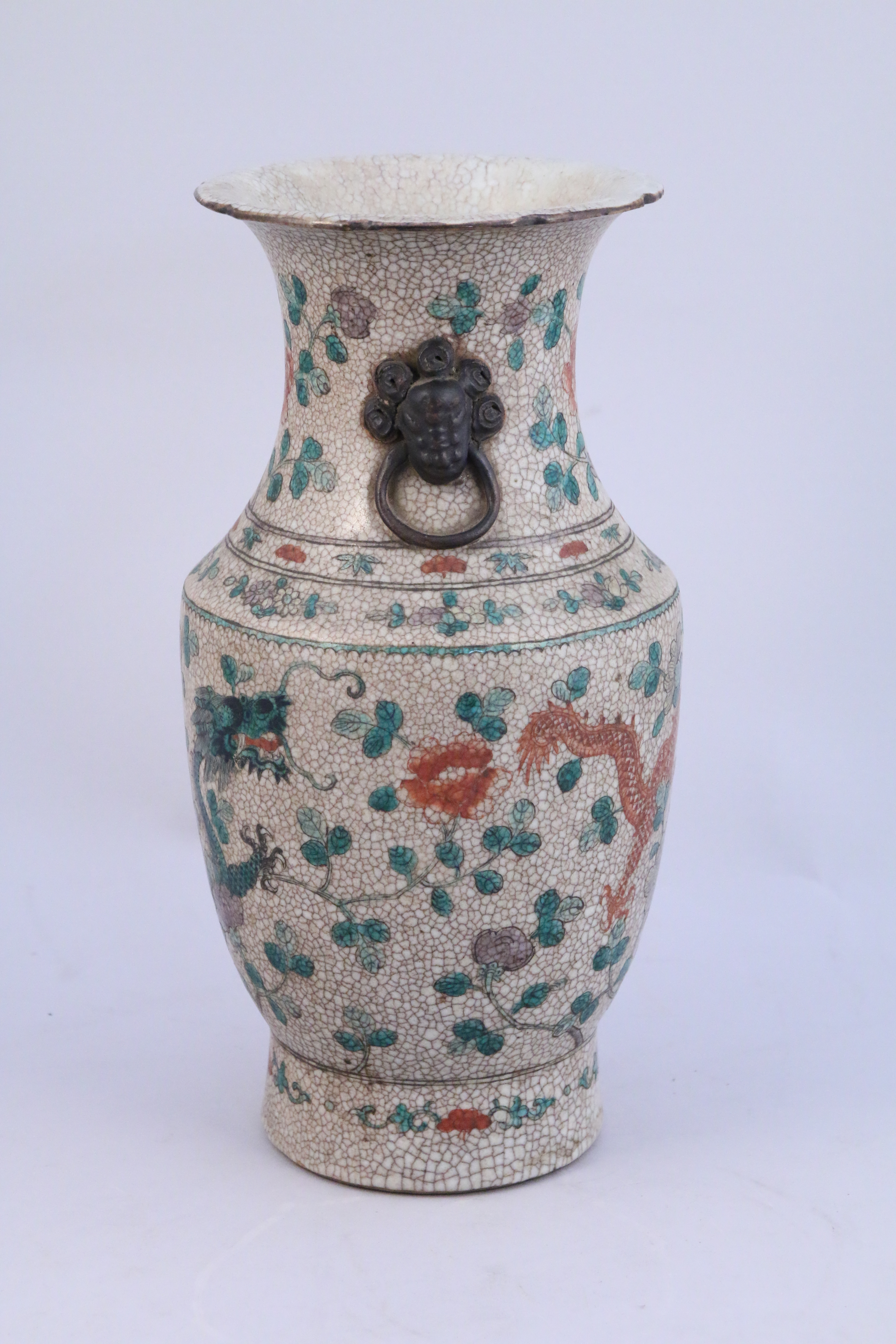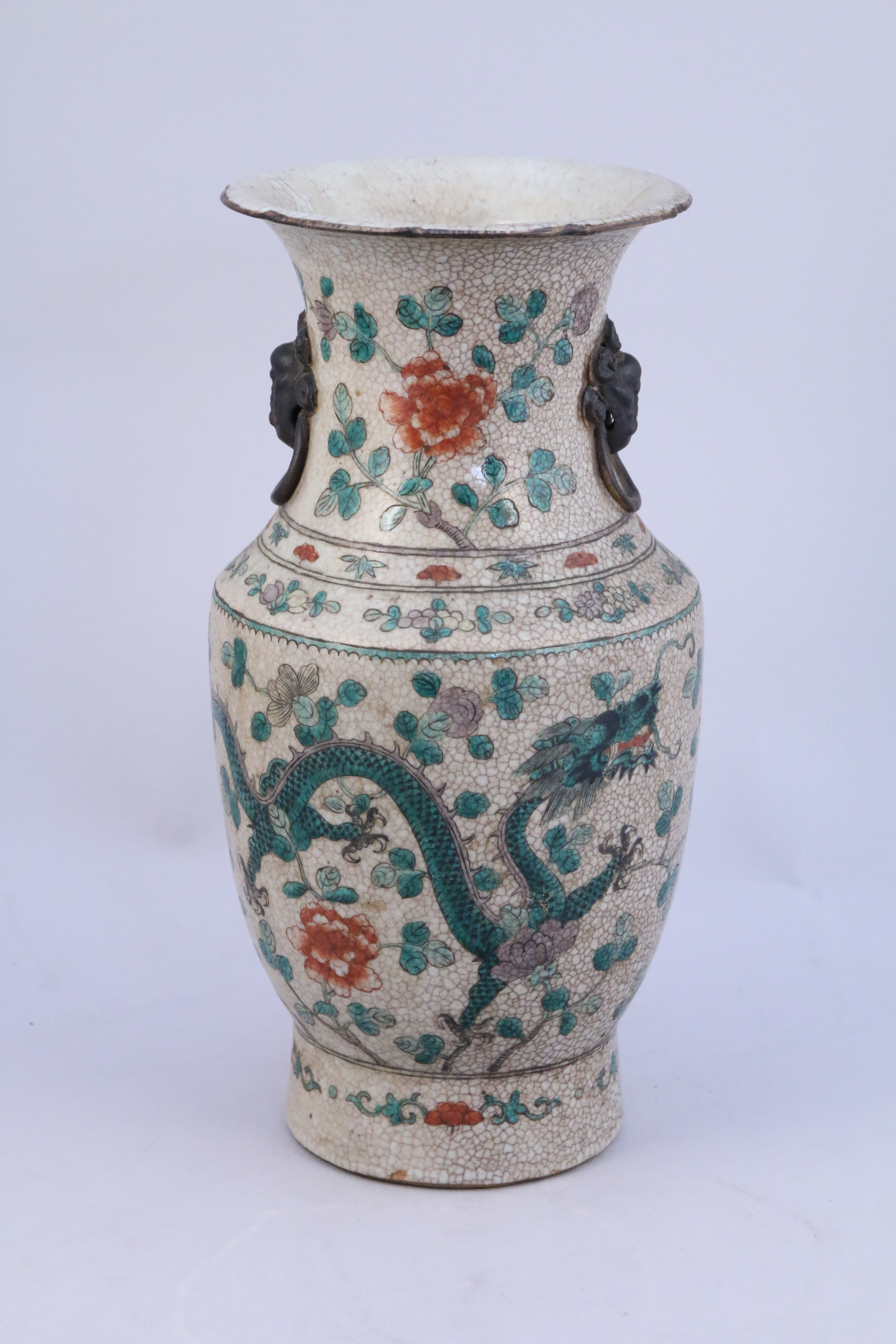 VASE en céramique craquelée, émaillée à décor de dragon.