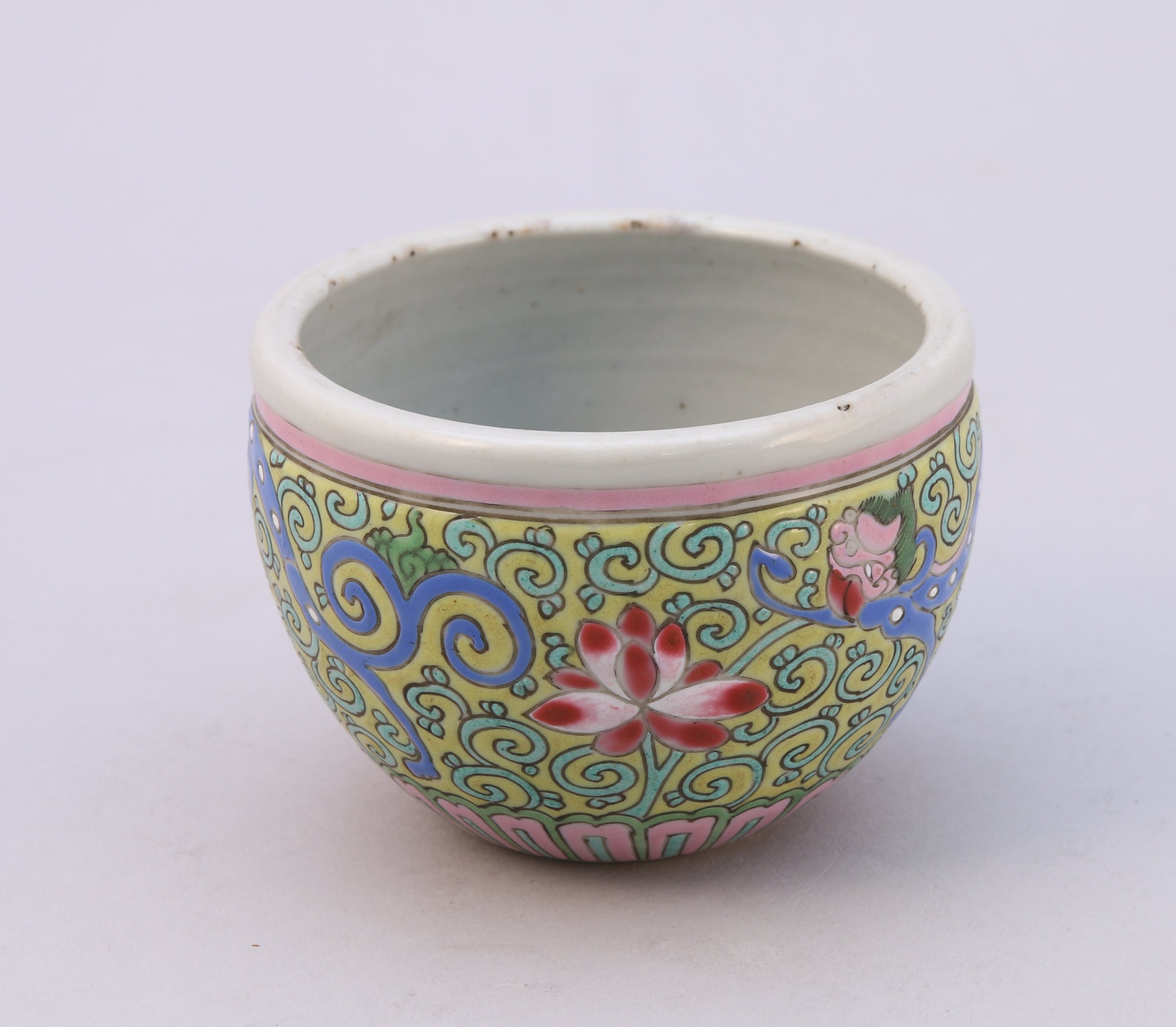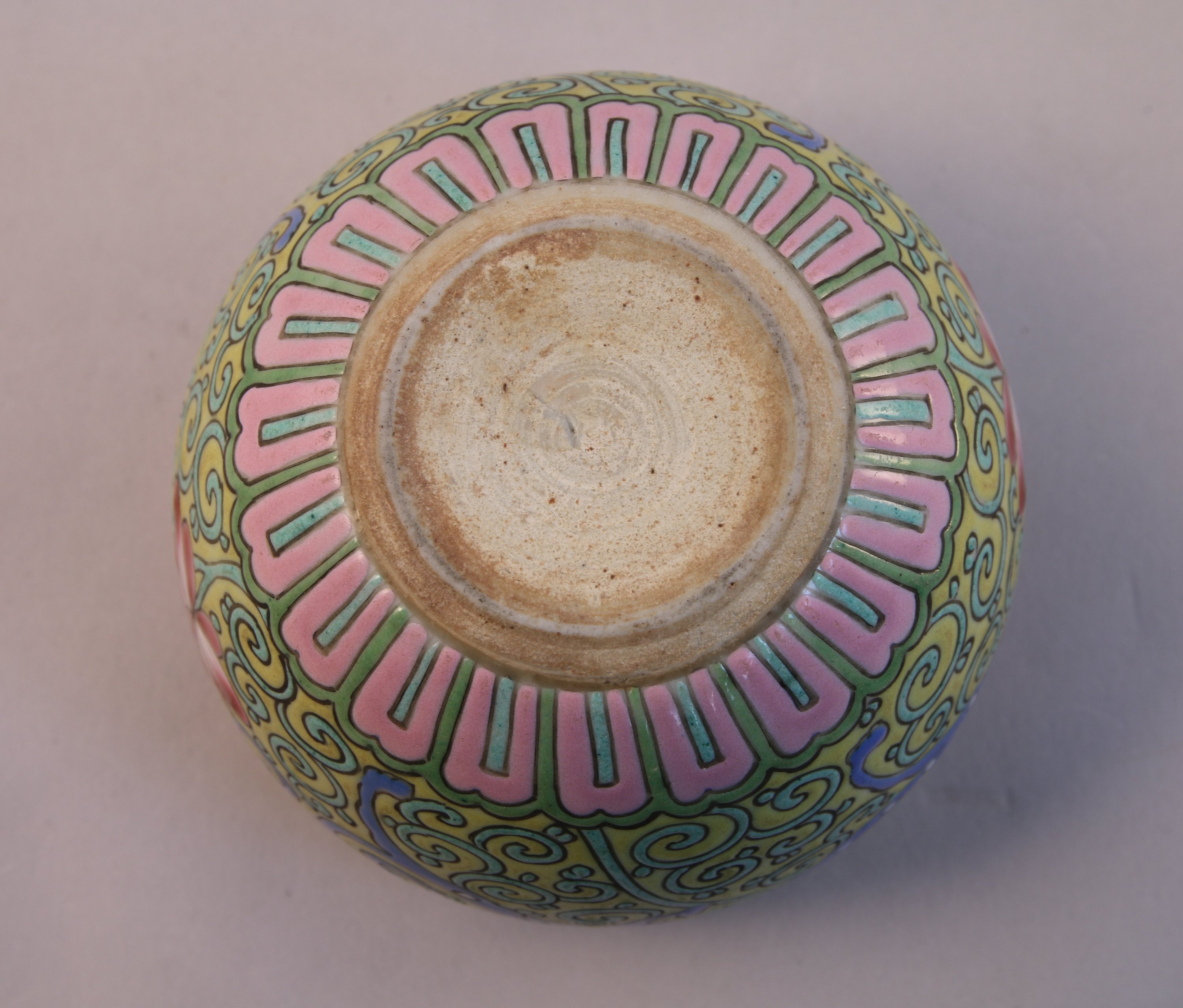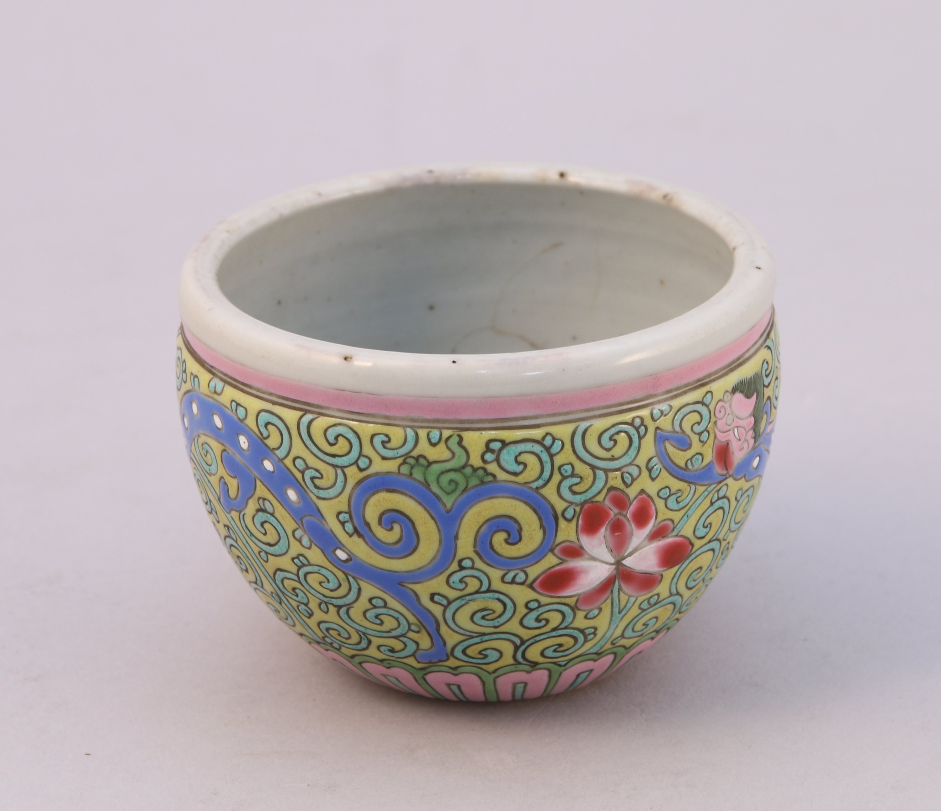 JOINT : petit BOL en porcelaine émaillée polychrome. Haut. 6,5, Diam. 9 cm.