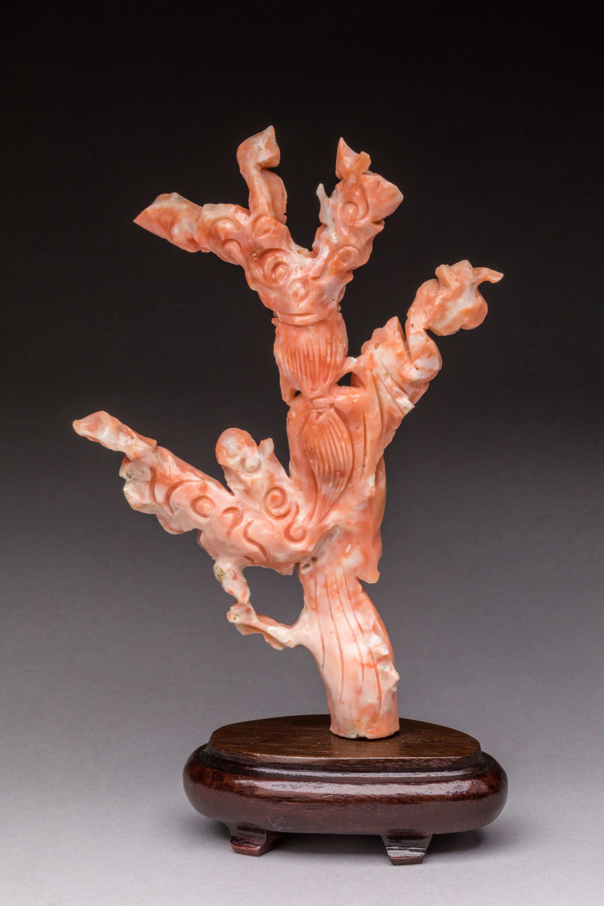 CHINE - XXePetit GROUPE EN CORAIL rose, jeune femme debout...