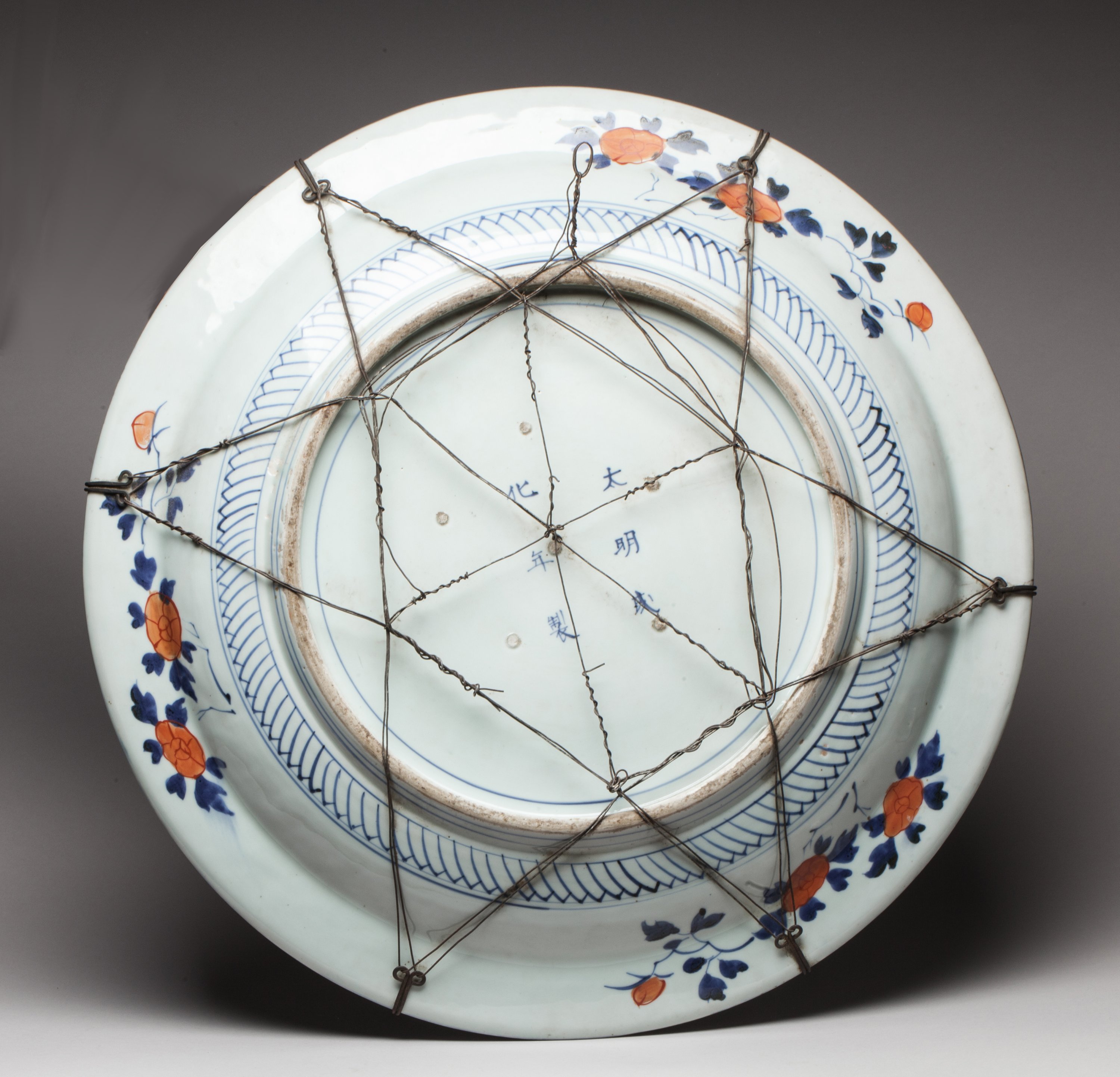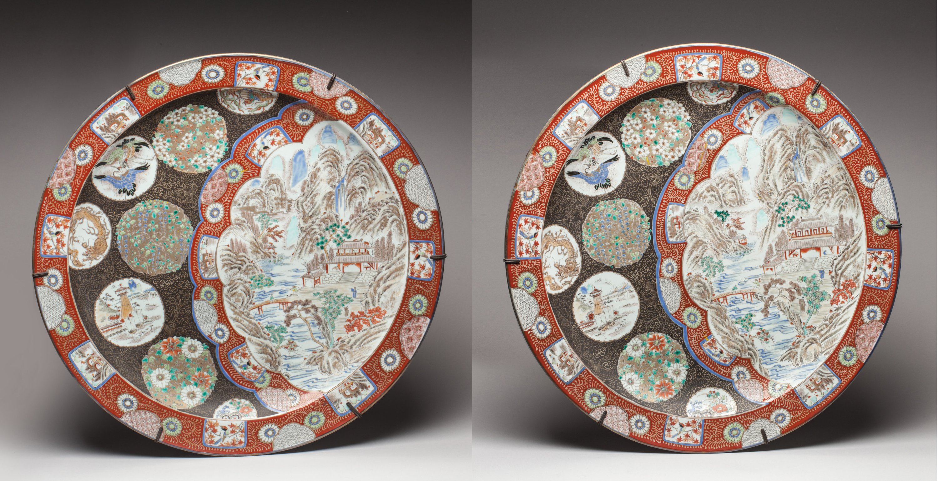 JAPON - XVIII-XIXe Paire de grands PLATS en porcelaine polychrome...