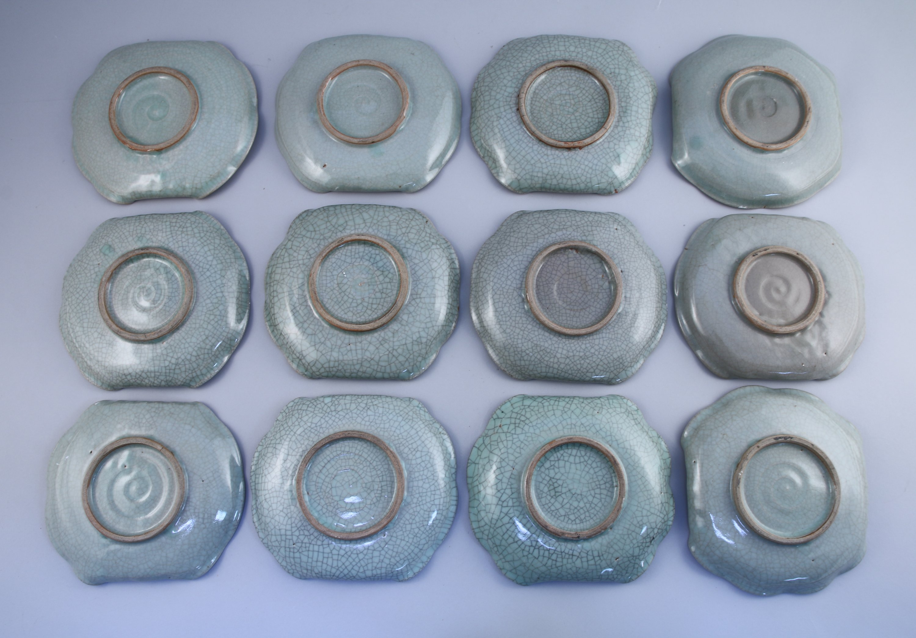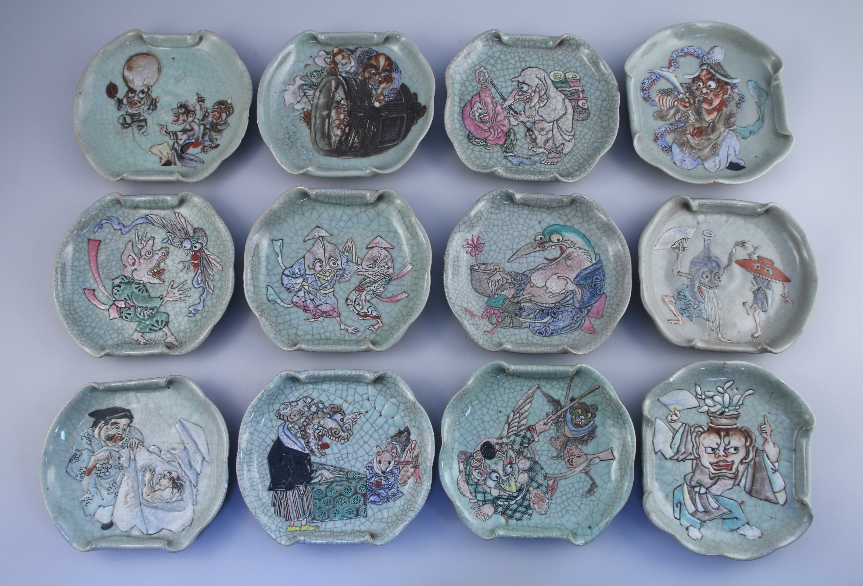 JAPON - XXeSuite de 12 ASSIETTES en grès à décor...