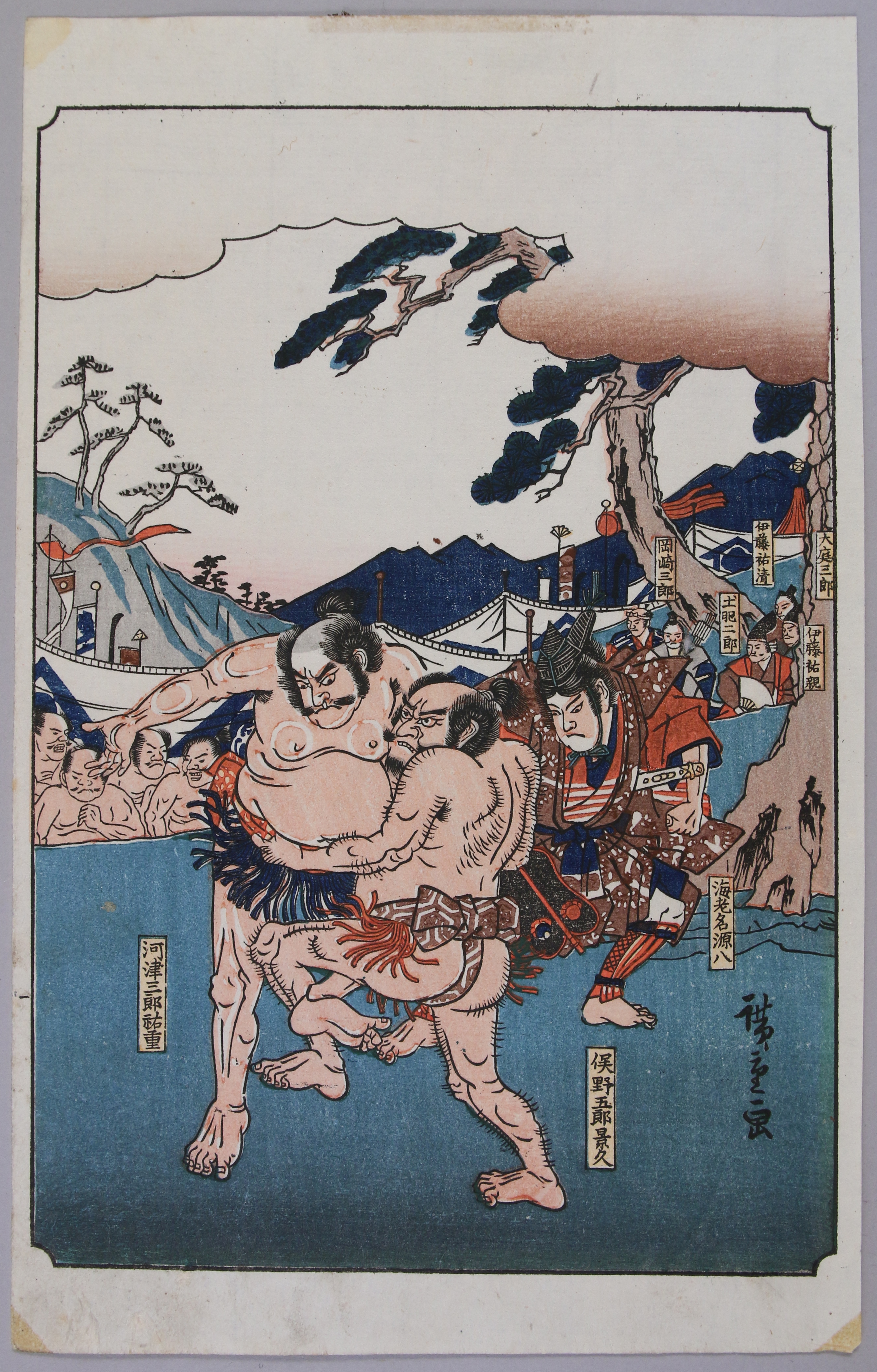 - HIROSHIGE II (?) Combat de sumos. Haut. 24, Larg. 15 cm.