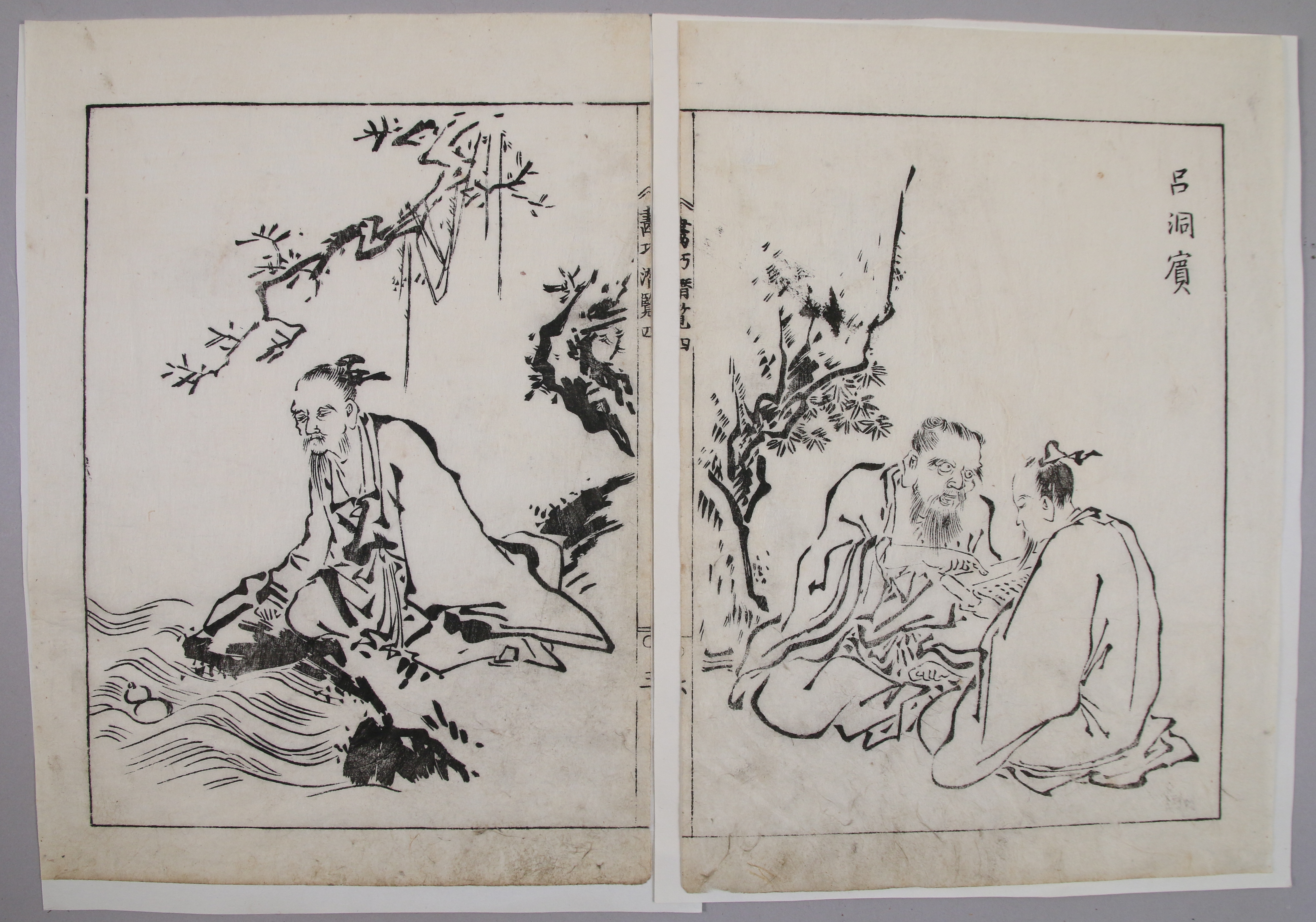 - Suite de quatre estampes, pages d'album découpées. Haut. 23,5 , Larg. 16,5 cm.