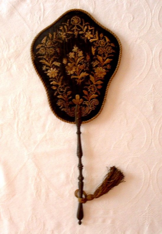 Ecran Napoléon III. La face en tissu brodé de fleurs.