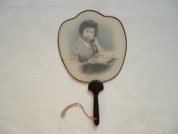 Petit écran cantonais, fin XIXe. Portrait de geisha sérigraphié sur soie.