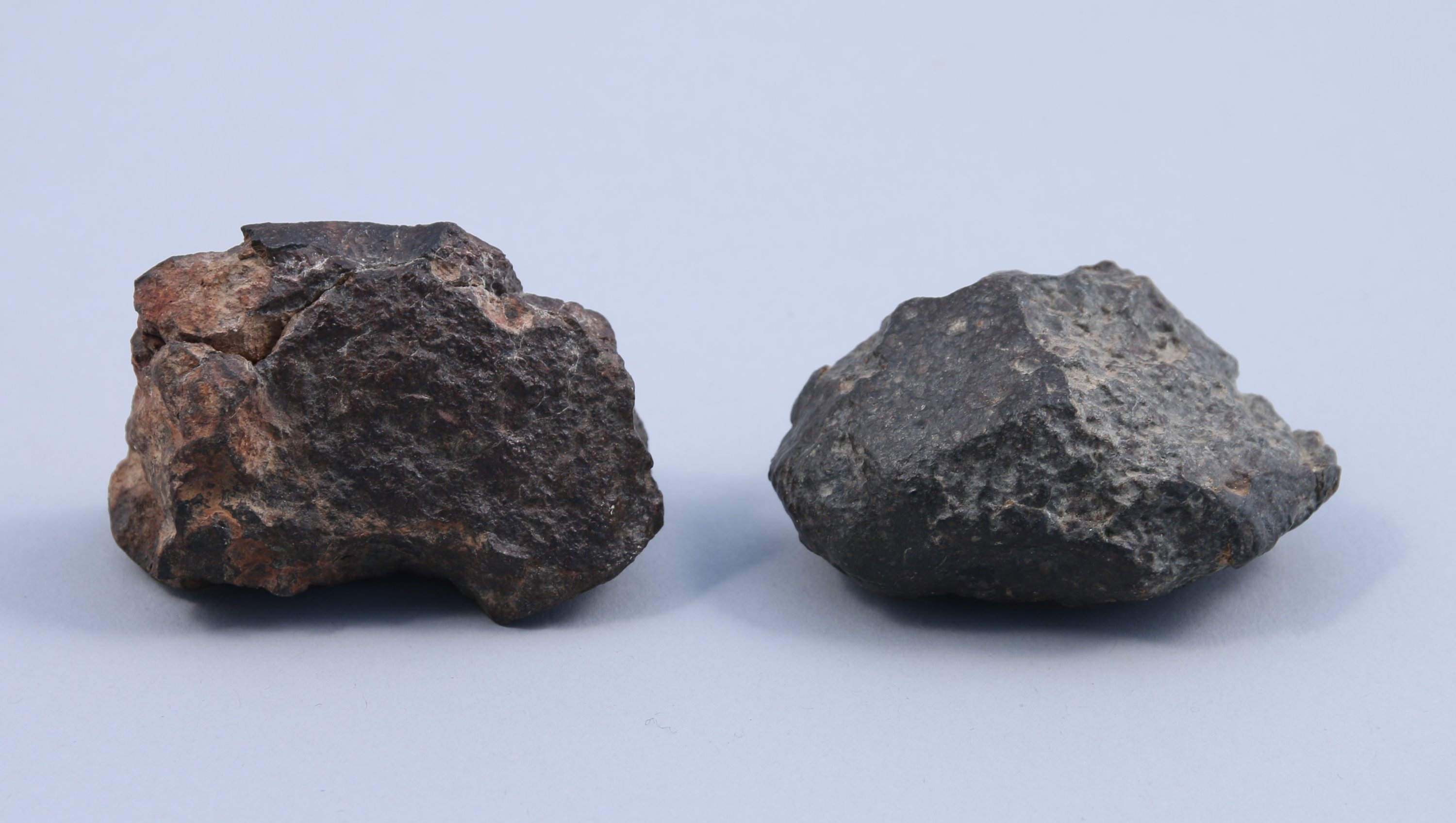 RÉUNION de deux MÉTÉORITES SAHARIENNE entières à belles croûtes de fusion :