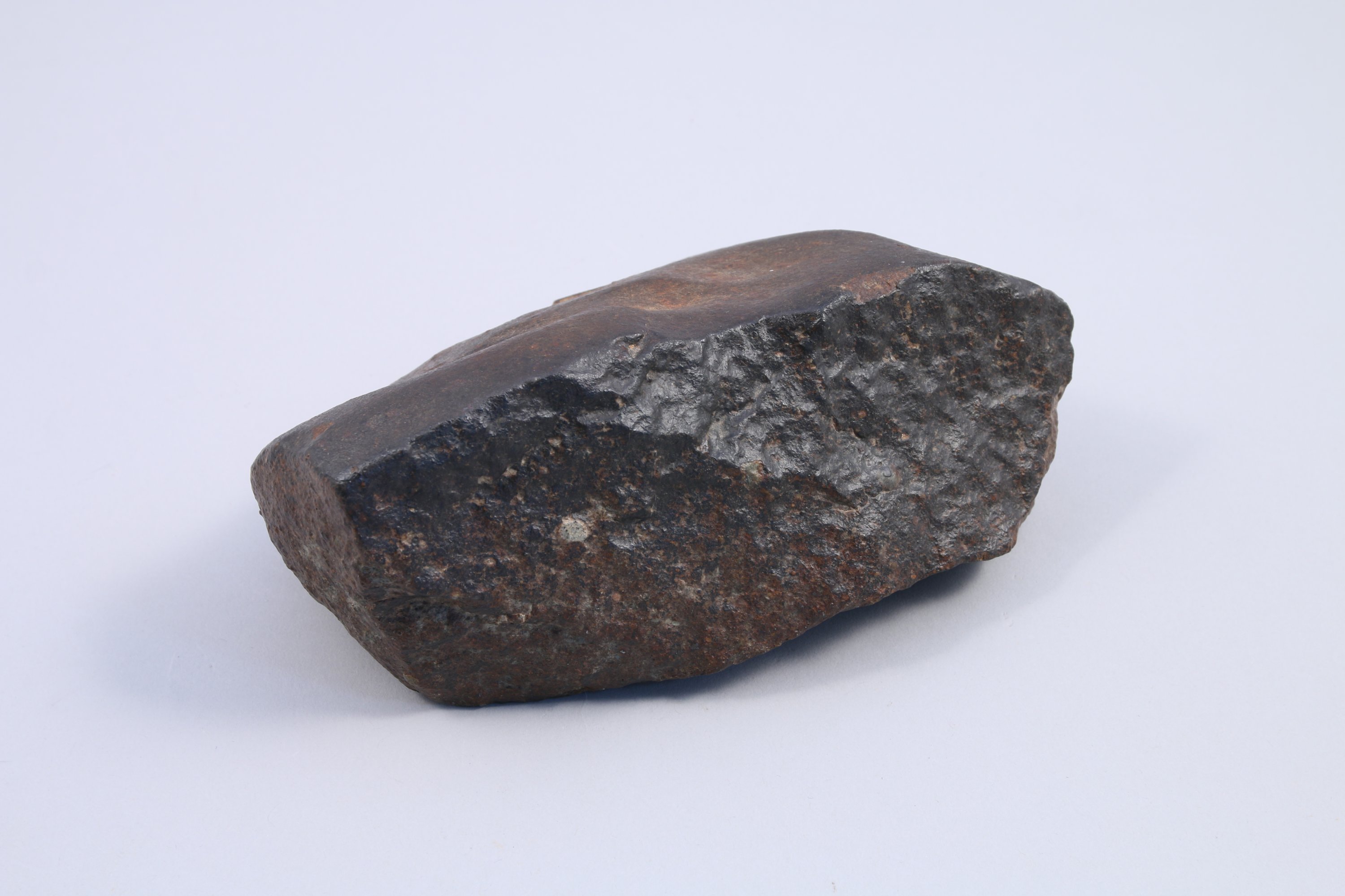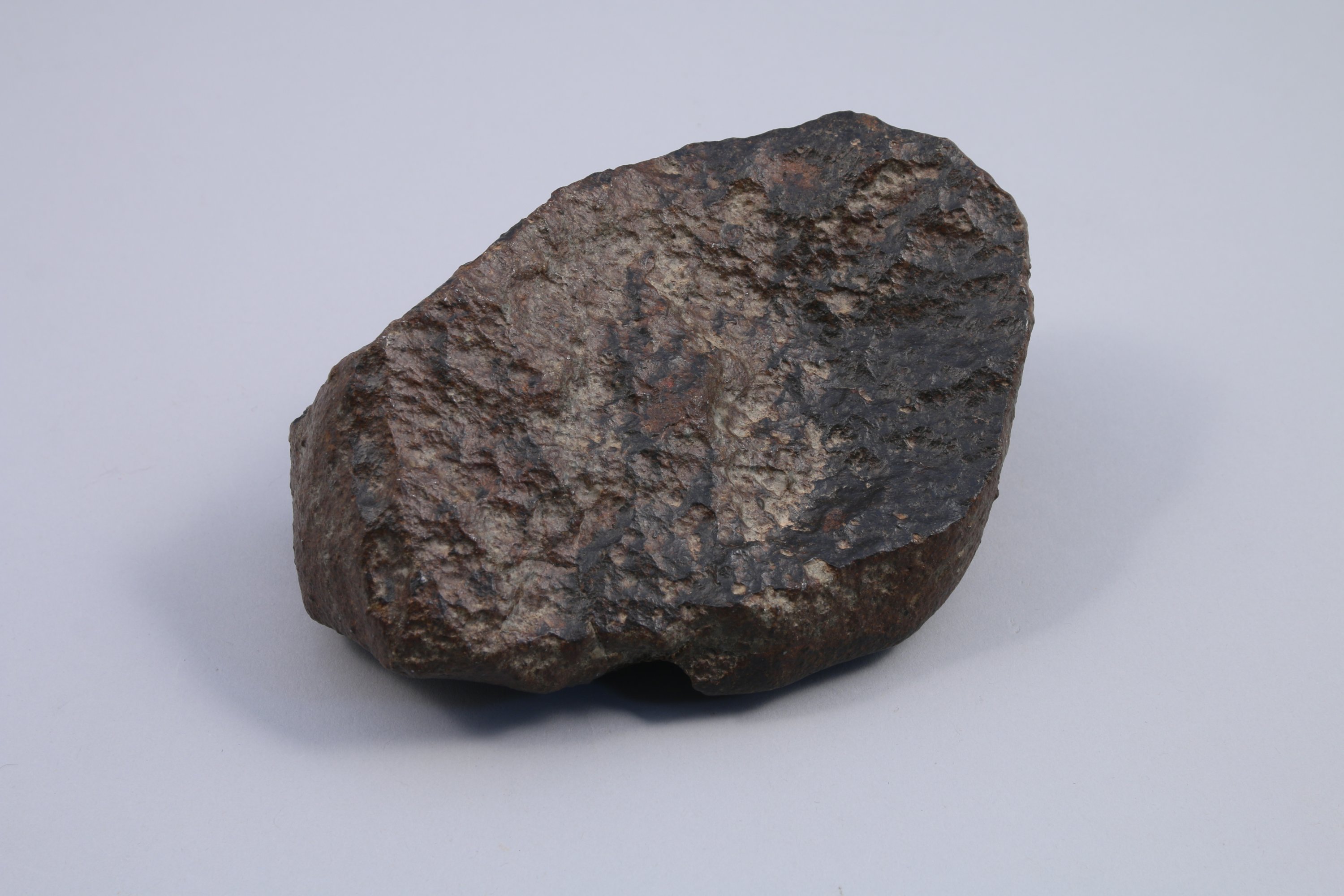 Une MÉTÉORITE entière " COUSIN " trouvée à " OULAD DRISS ". Une face fondue l'autre lisse recouvert d'une belle croûte de fusion.