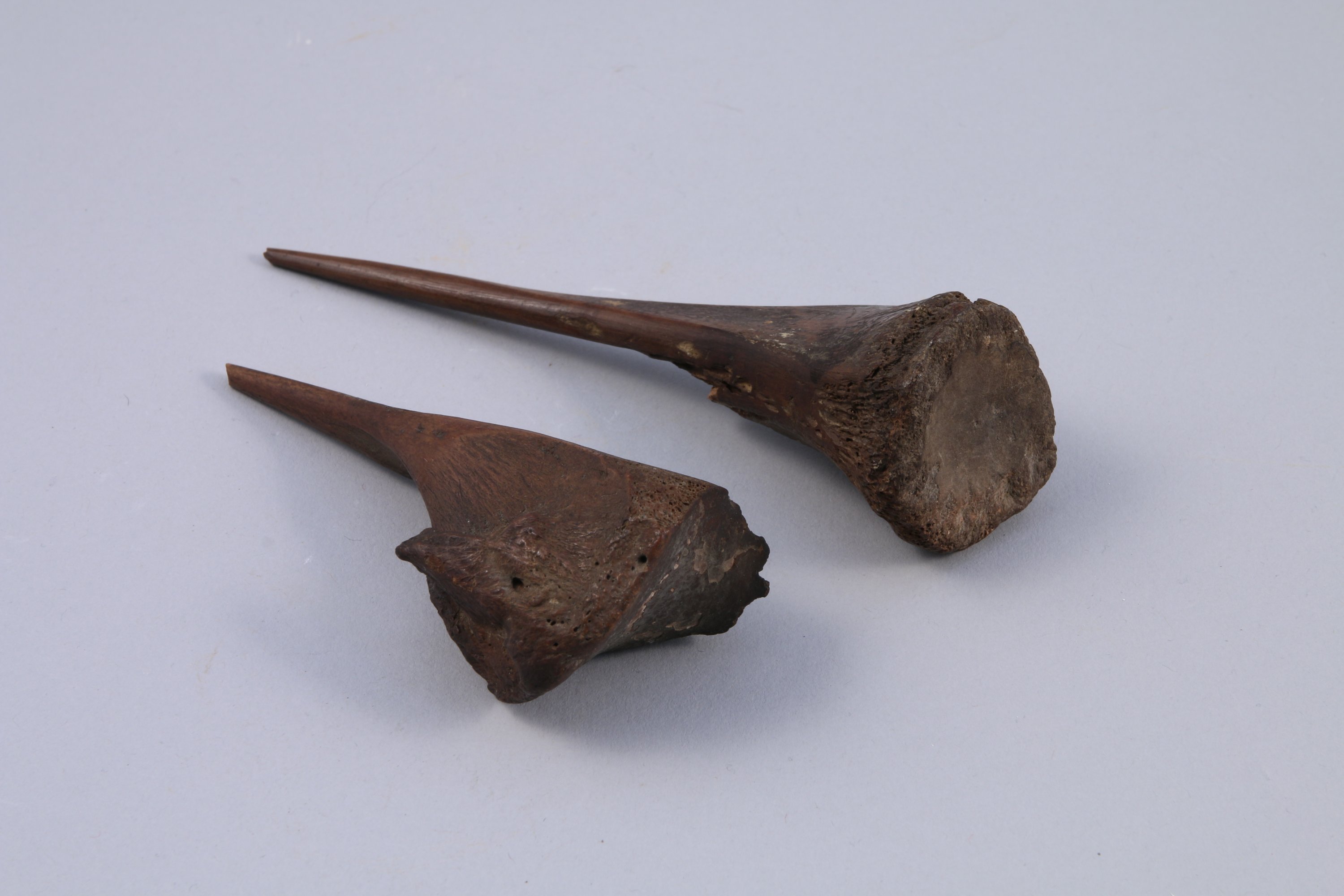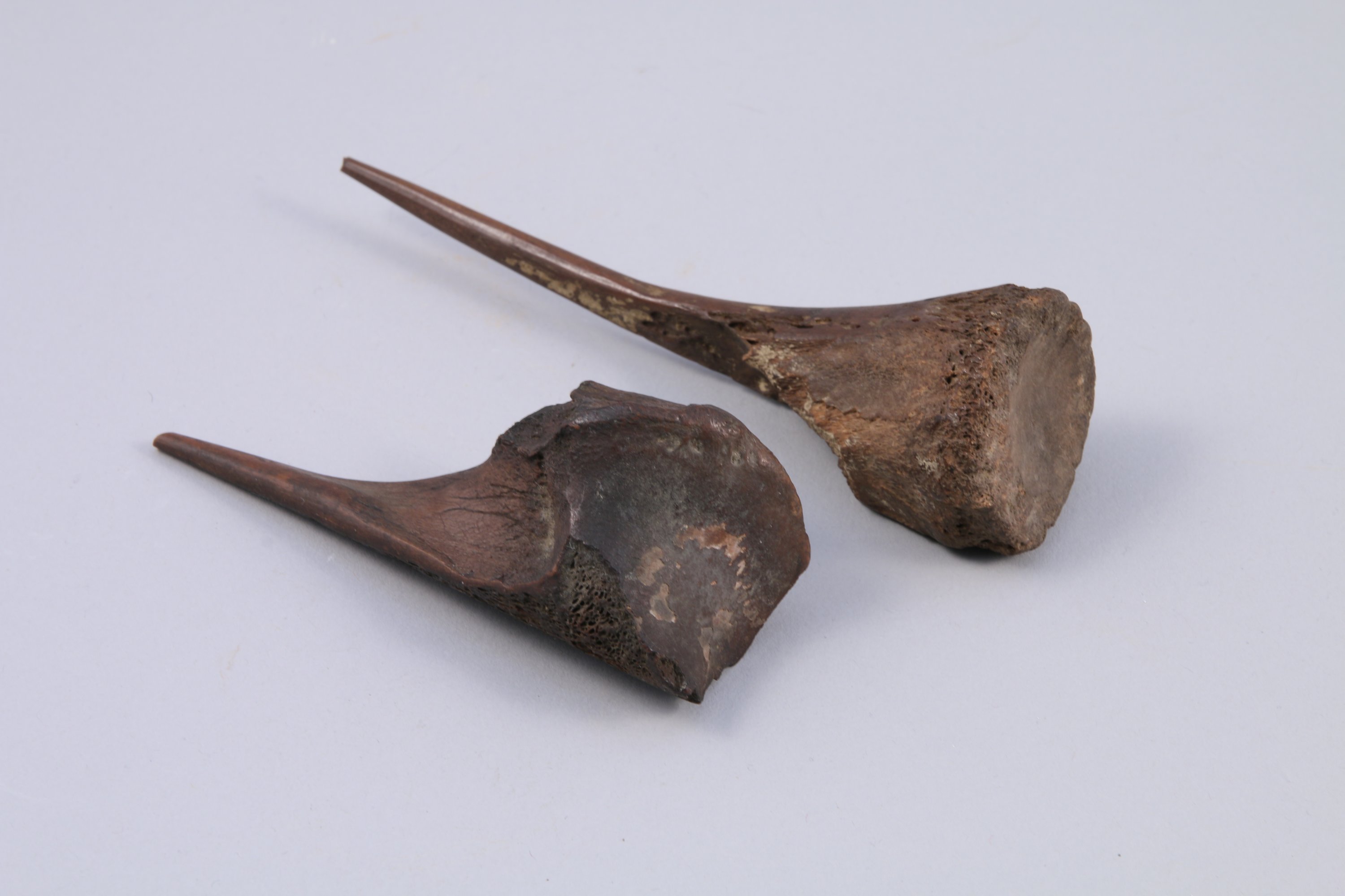 RÉUNION de HUIT OSSEMENTS travaillés et une MÂCHOIRE D'ANIMAL (ours des cavernes ?).