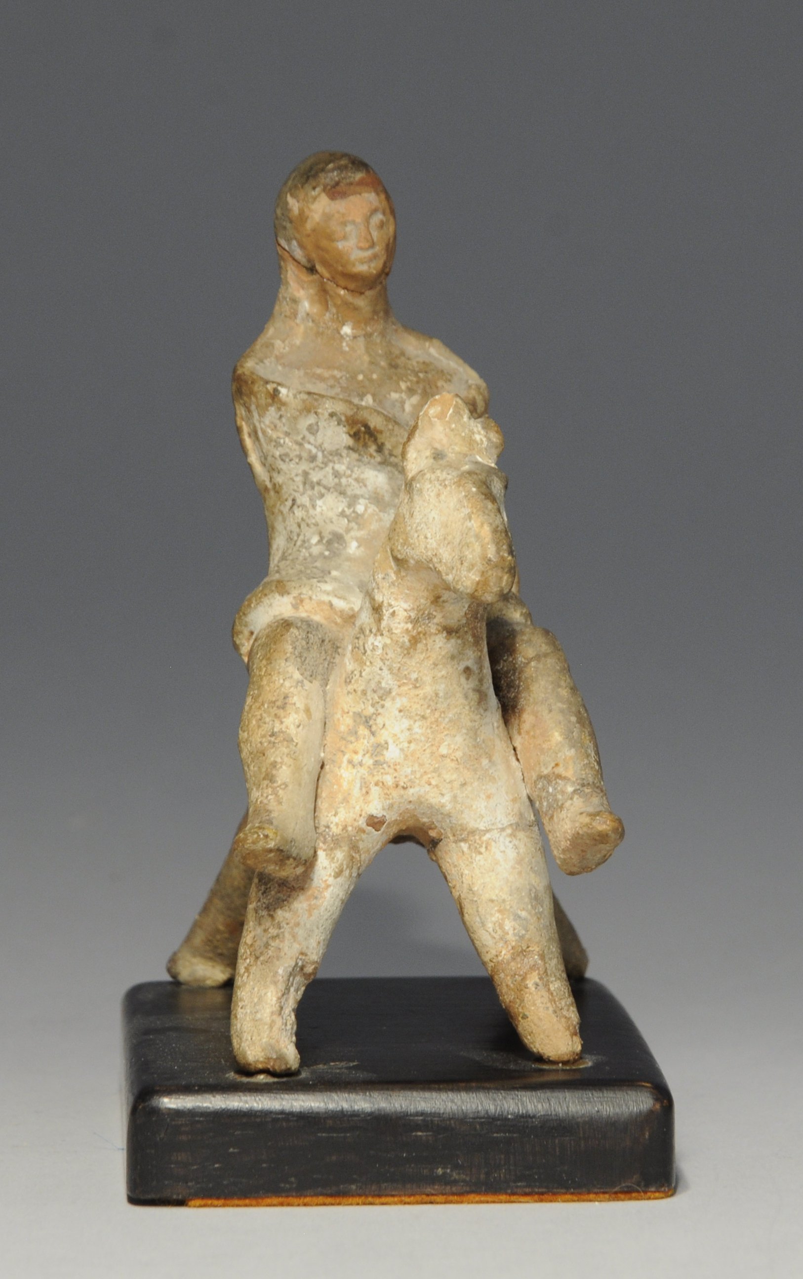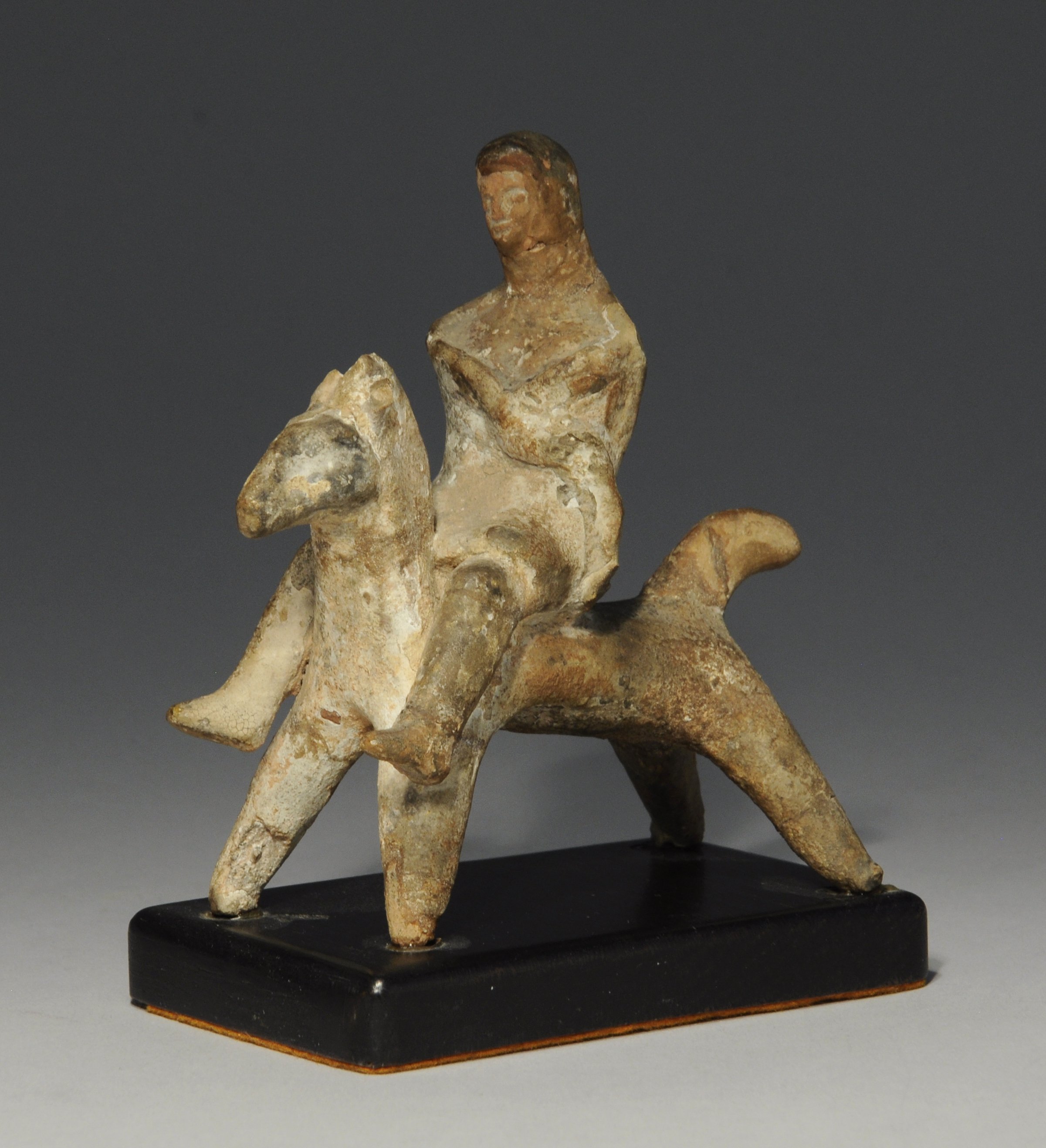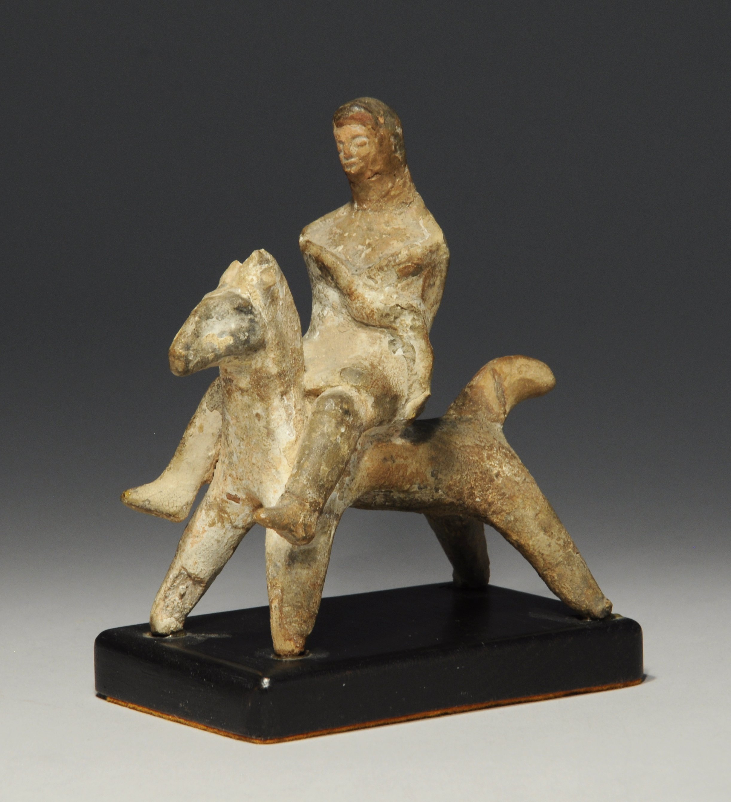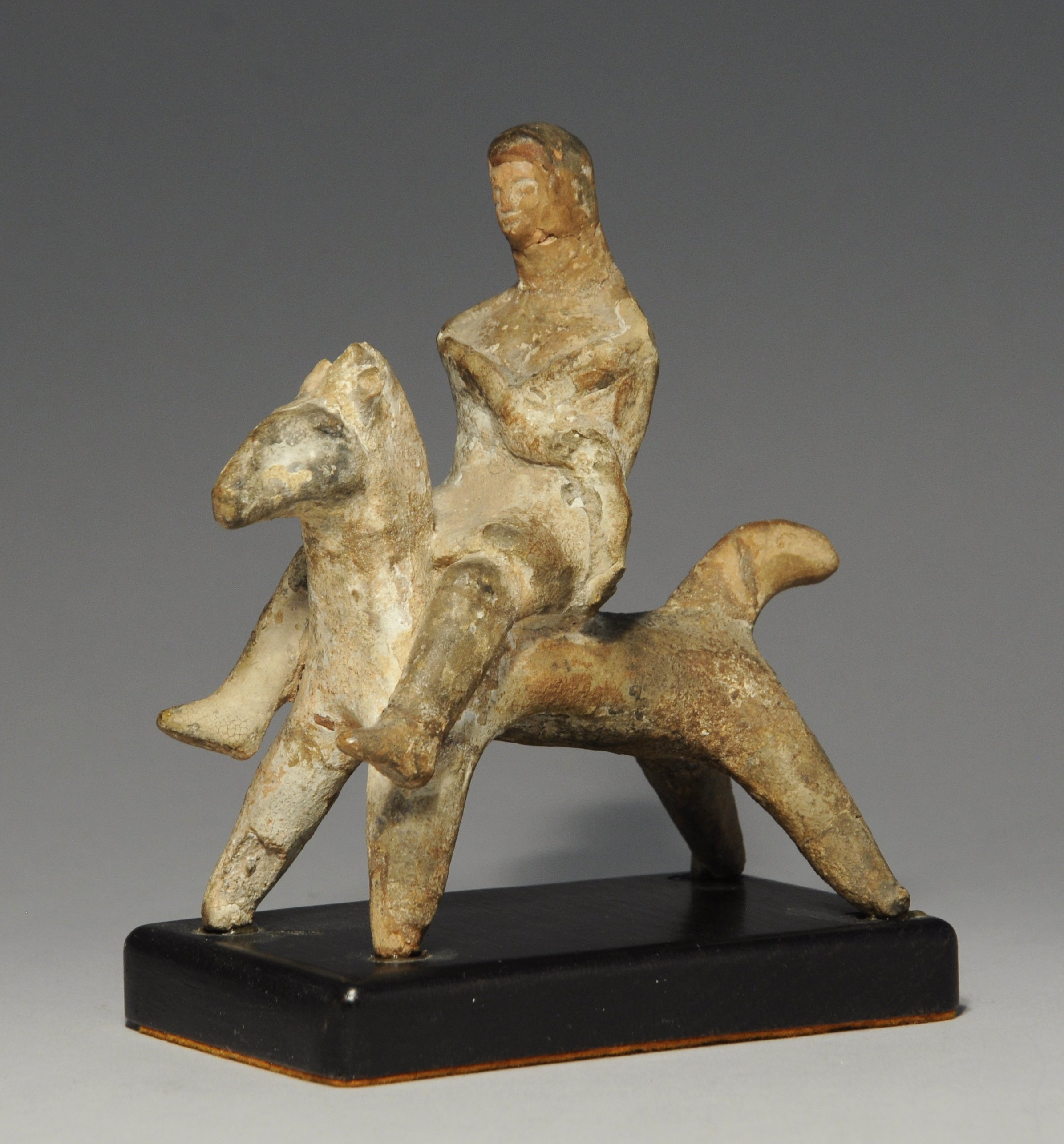 GRÈCECAVALIER. Terre cuite, tête du cavalier ajoutée, quelques manques, restaurations...