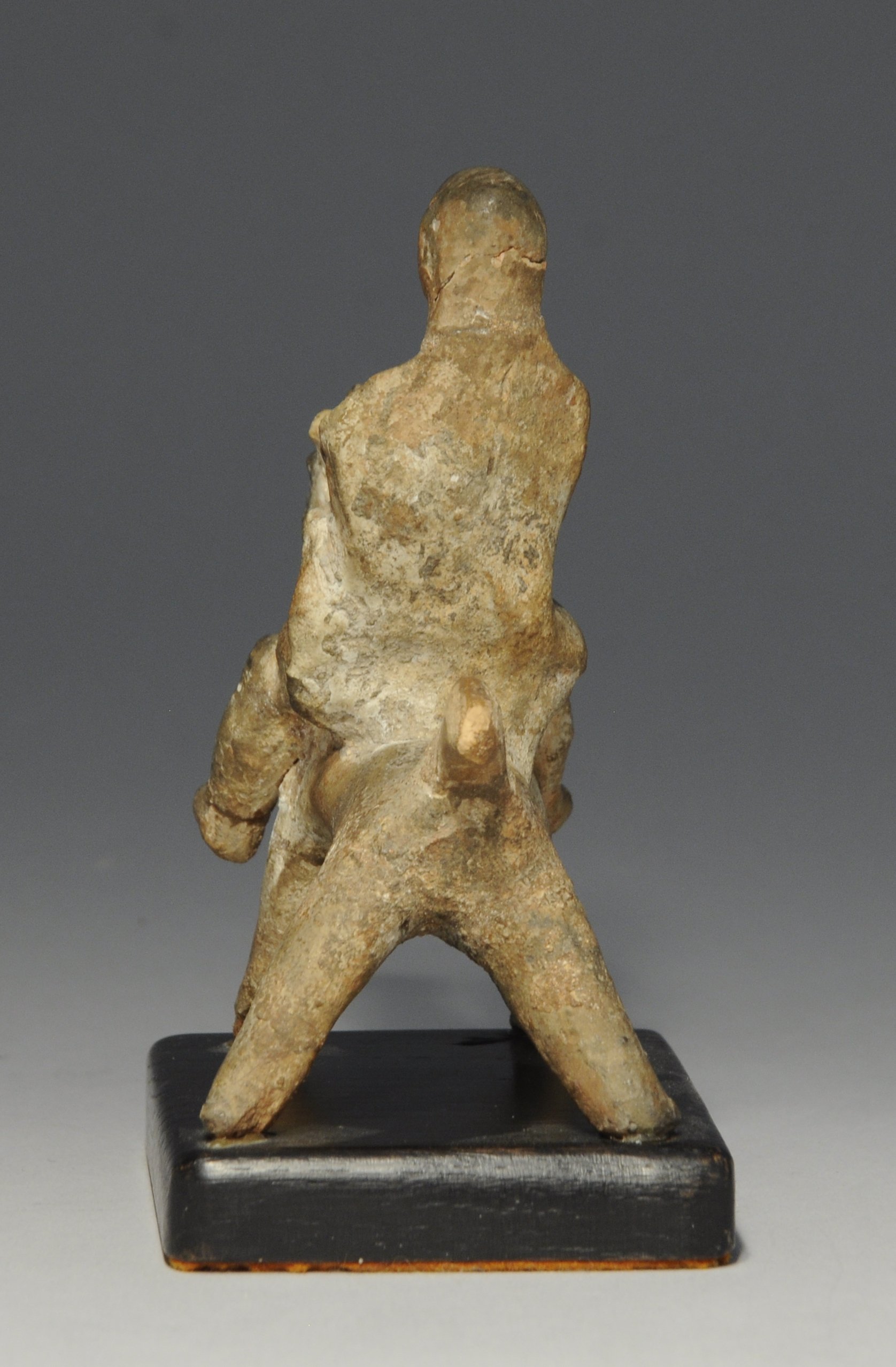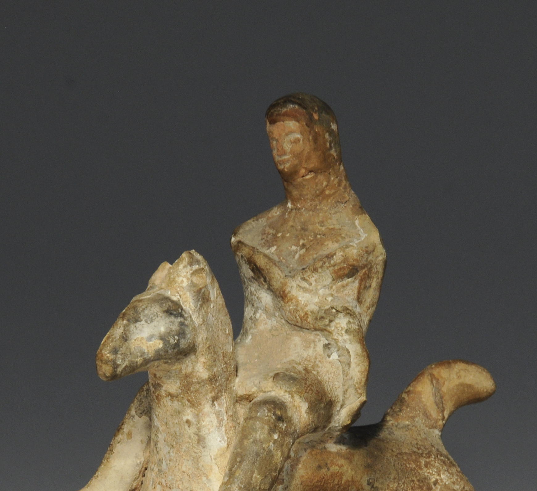 CAVALIER. Terre cuite, tête du cavalier ajoutée, quelques manques, restaurations et parties refaites.