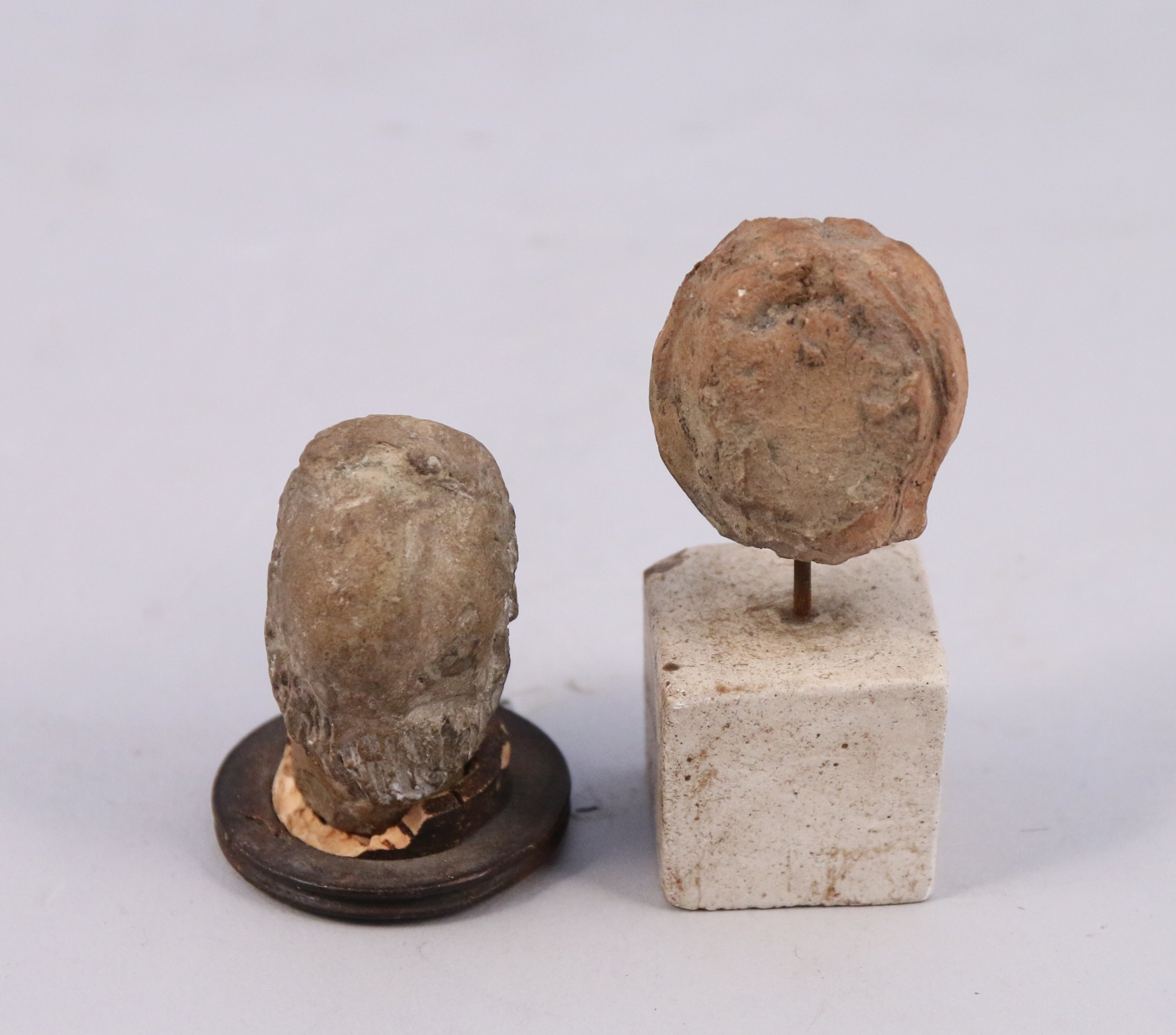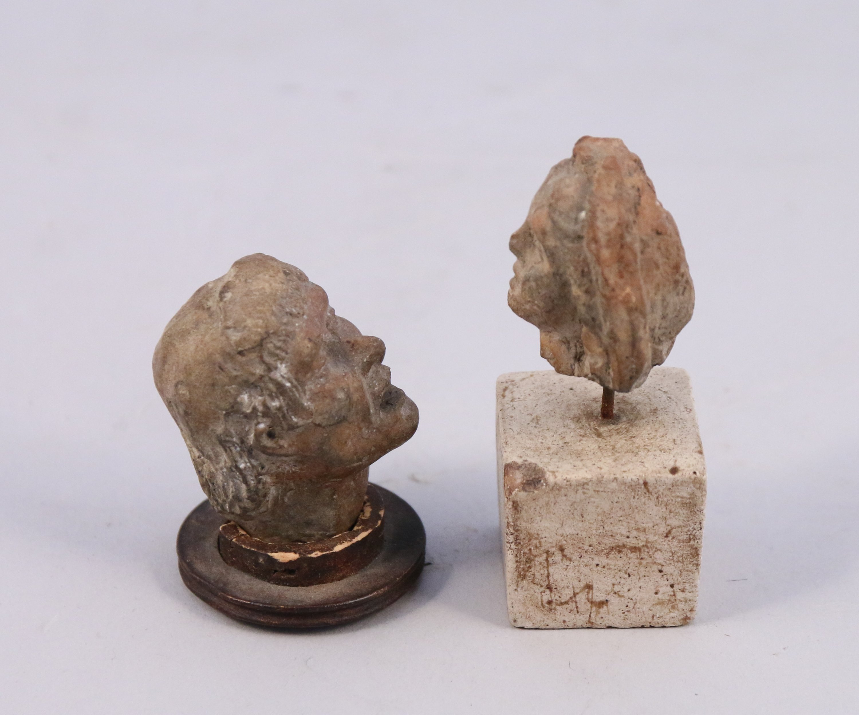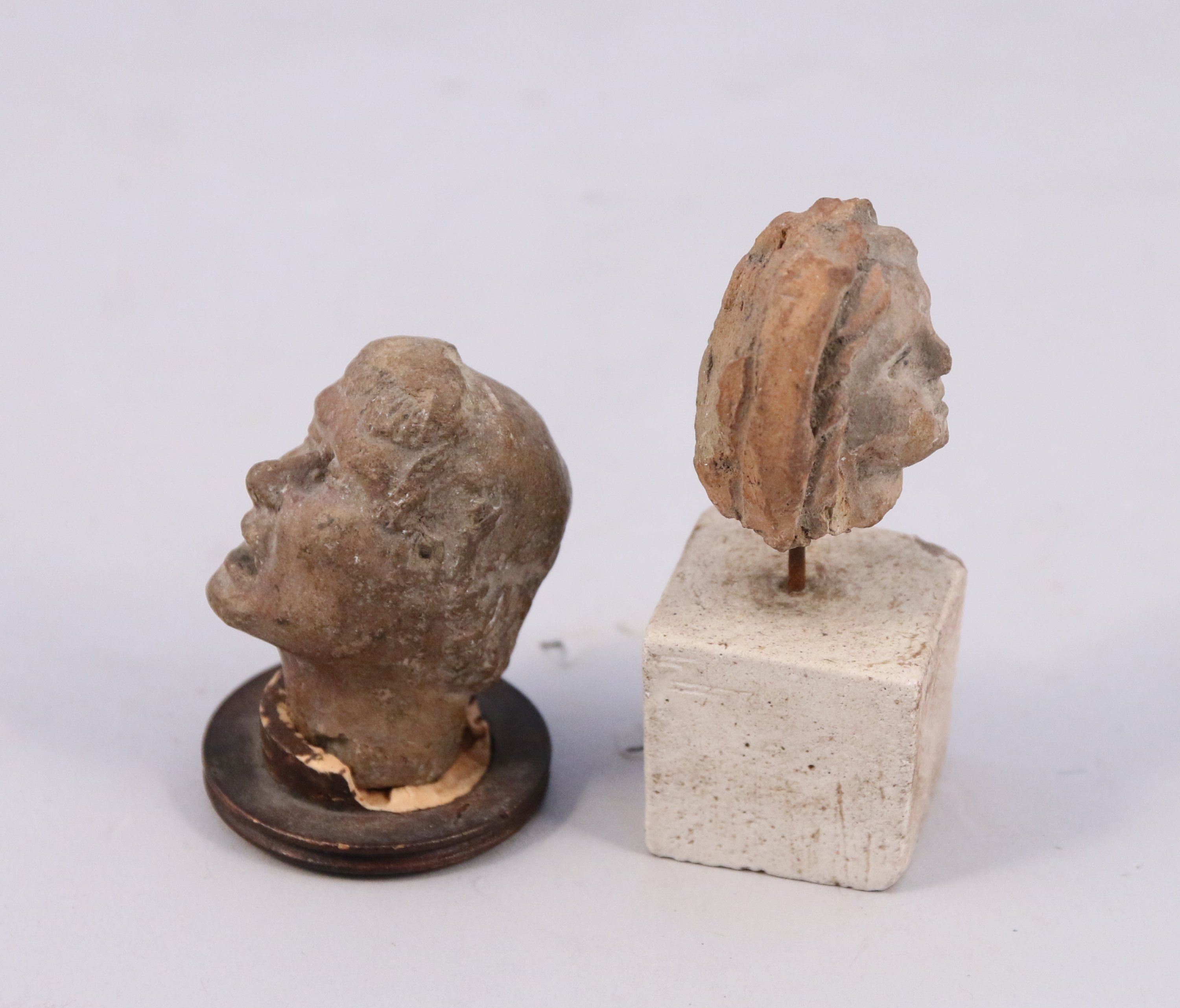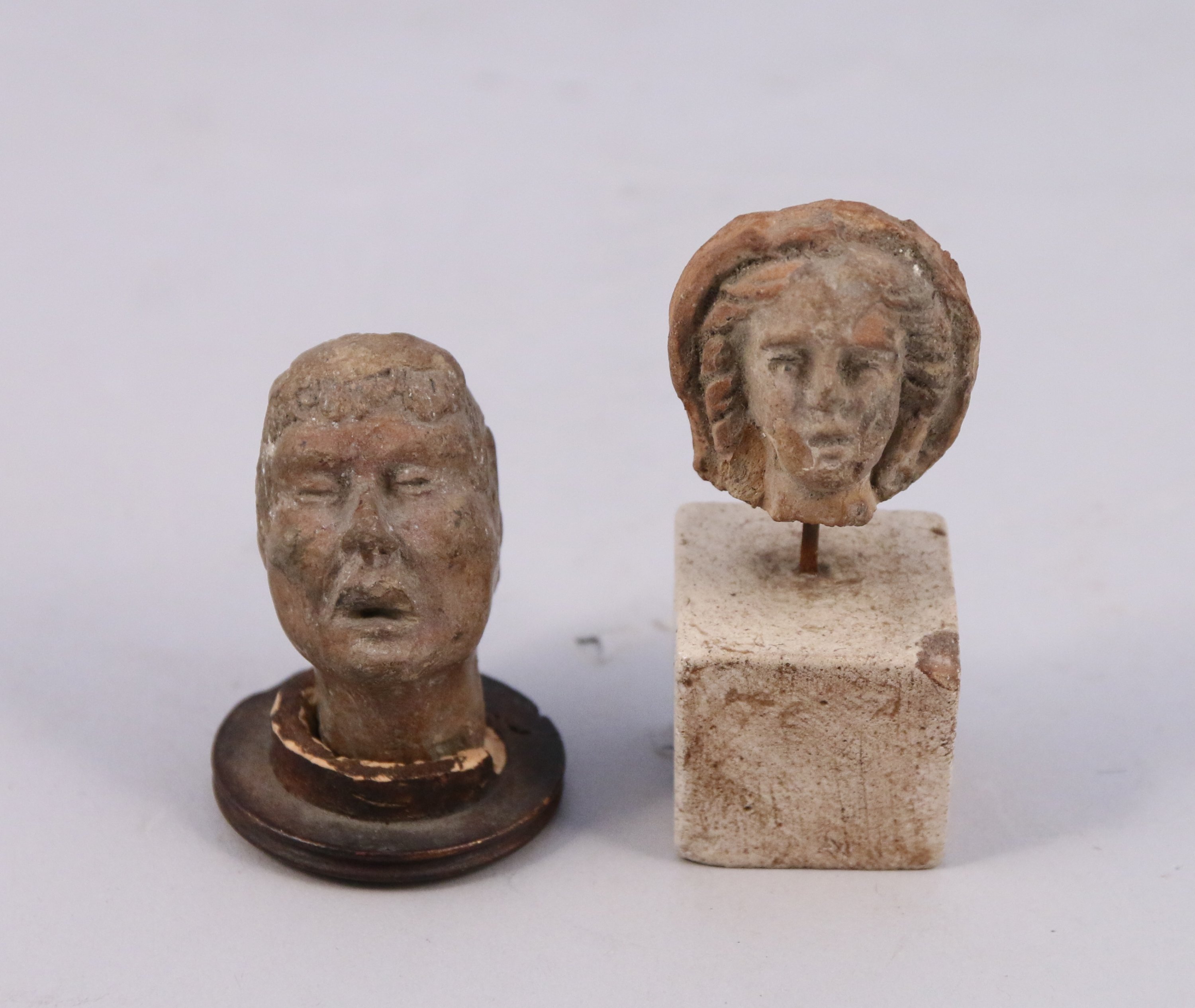 ÉPOQUE ROMAINEDeux PETITES TÊTES. Terre cuite :  - PERSONNAGE...