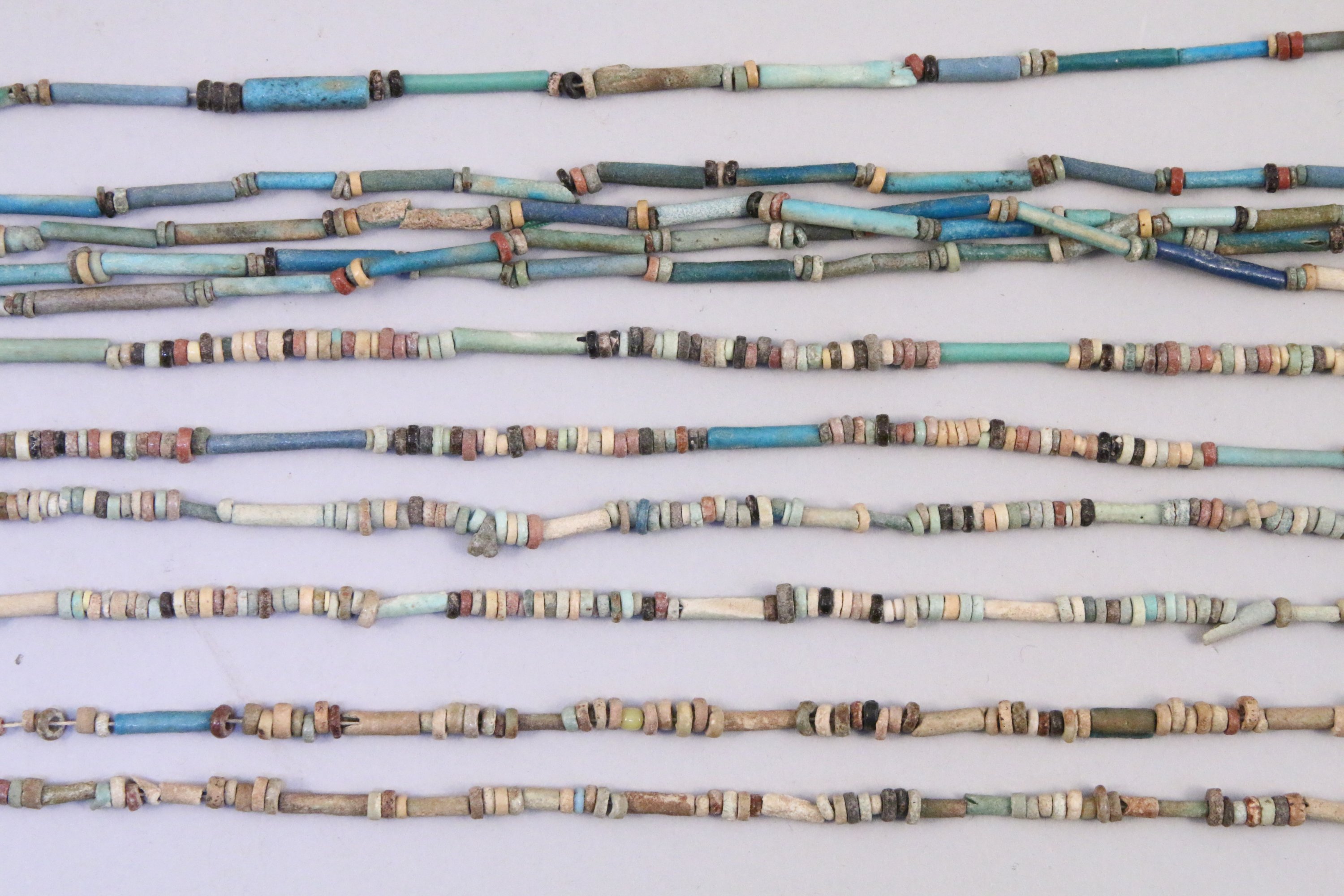 ÉGYPTE COLLIER de trois rangs en fritte émaillée bleue et...