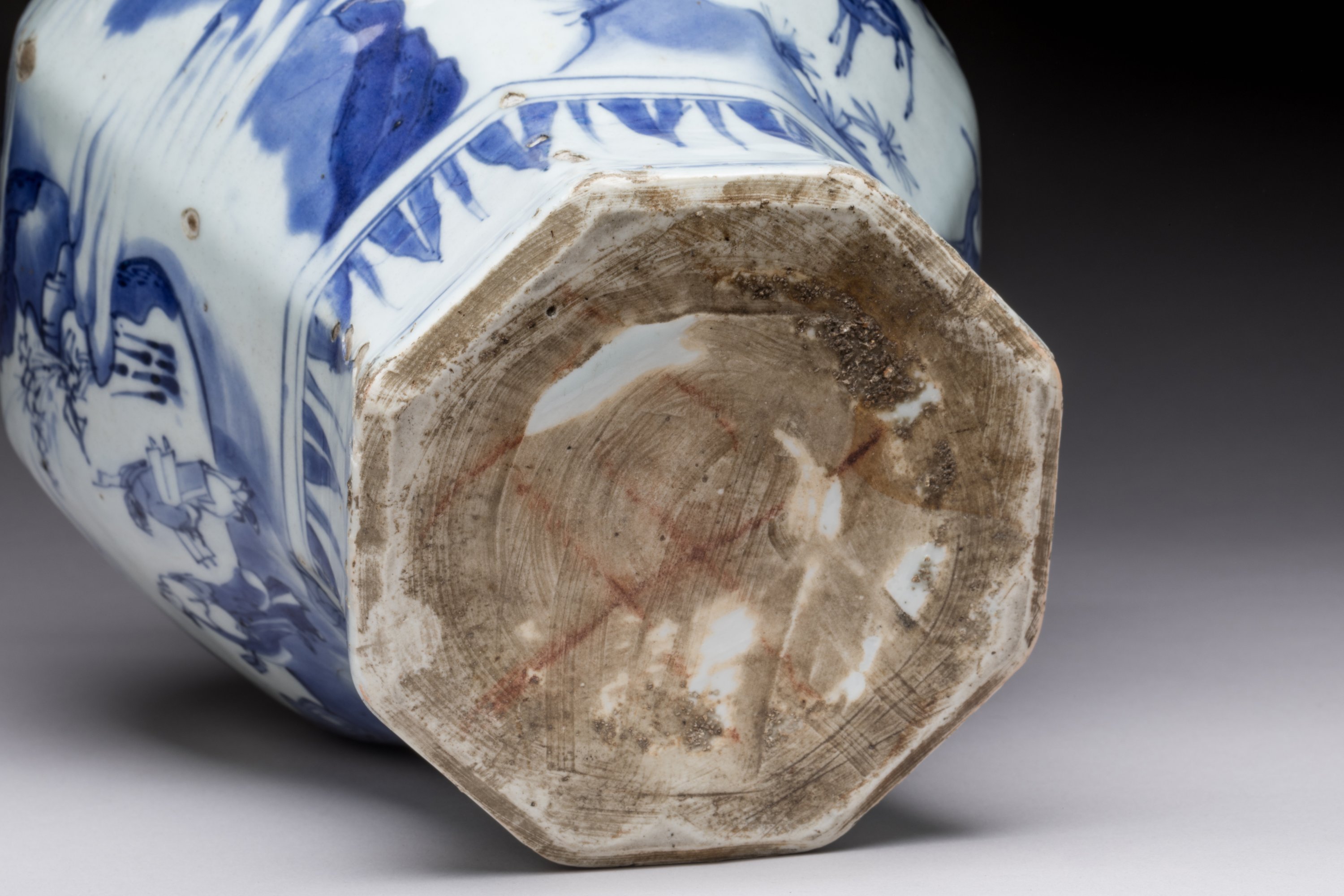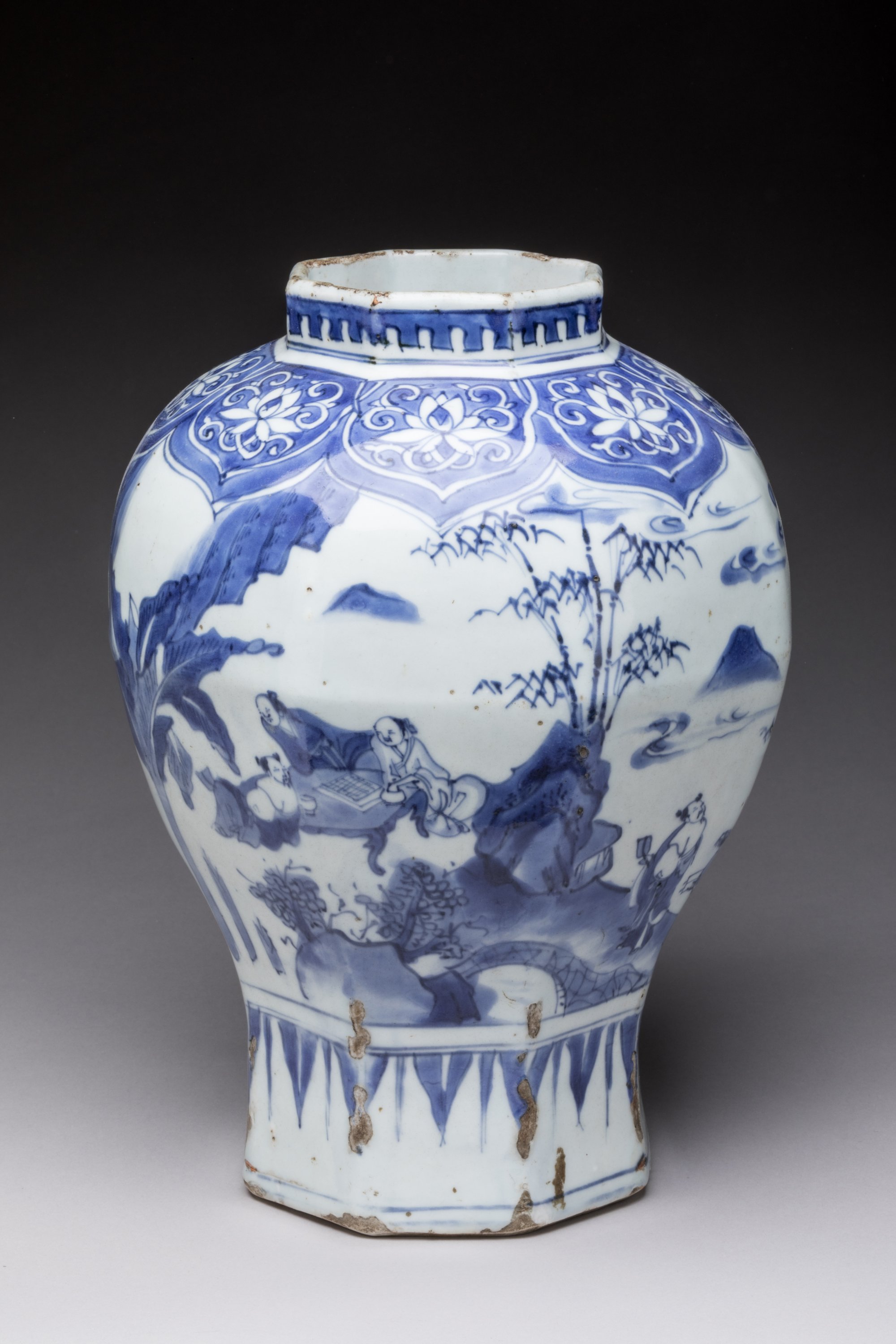 Vase en porcelaine à décors dimmortels, Chine, époque Transition.