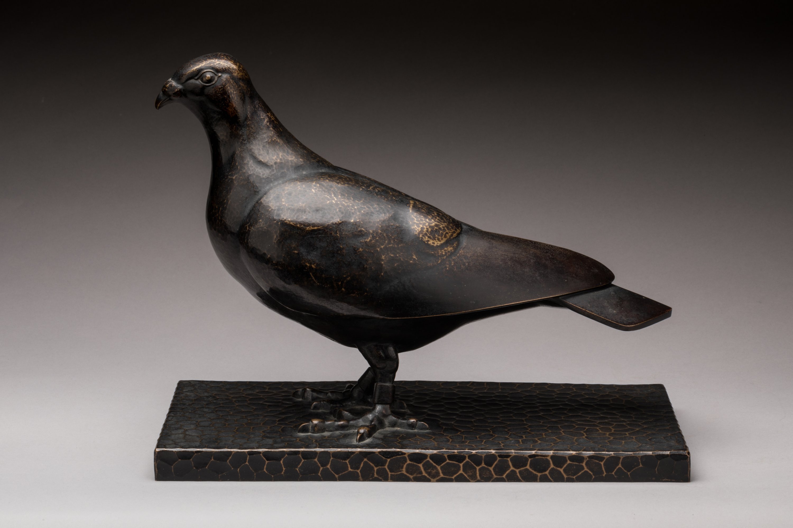Bronze pigeon, sculpted by Le Bourgeois for the Hotel Ducharne, designed by Ruhlmann circa 1924.
