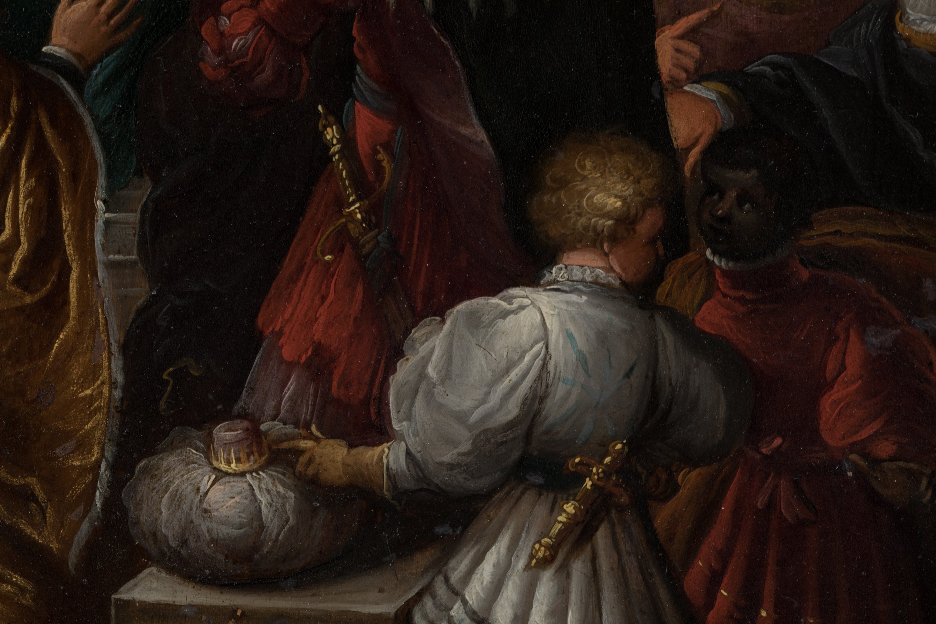 On connaît une autre version de cette composition, de mêmes dimensions avec d'infimes variantes, par Frans Francken (36 x 29 cm, galerie Lawrence Steigrad Fine ART en 2008), et d'autres par le maître et son atelier (Vente à Londres, Phillip's, le 19 avril 1994, n°17 ; vente à Cologne, Lempertz, le 25 novembre 2000, n°1157).