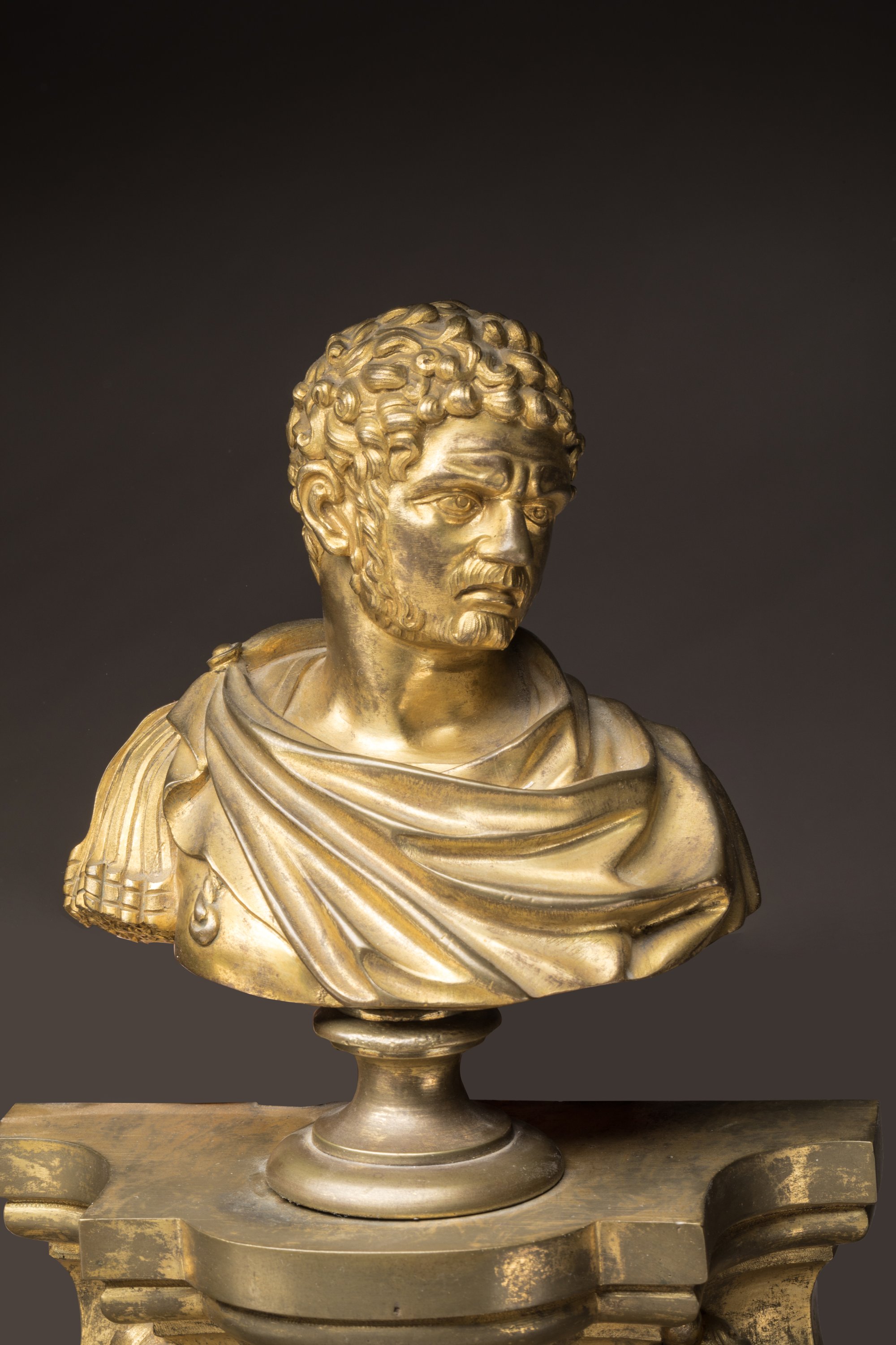 Wall clock with the bust of Caracalla, in gilded bronze.