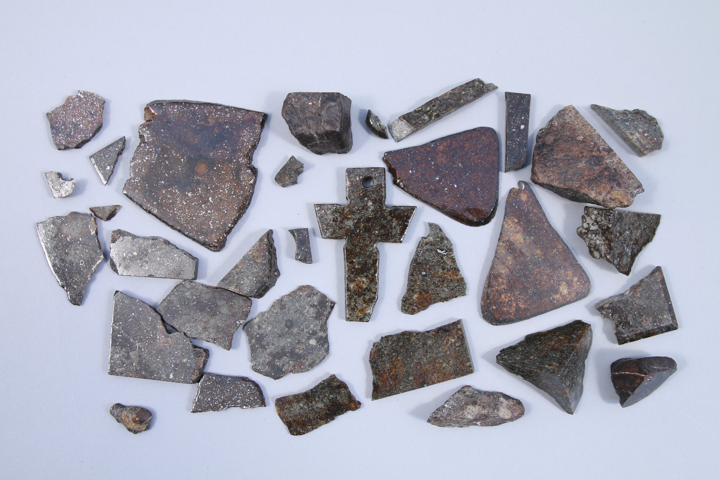 Ces tranches, éclats et talons ont été découpées dans des météorites trouvées par Gérard Merlier et préalablement classifiées par Madame Michèle Bourot-Denise, de l'équipe " Météorites " du laboratoire de Minéralogie au Muséum national d'histoire naturelle de Paris (actuel IMPMC) entre 2000 et 2010.