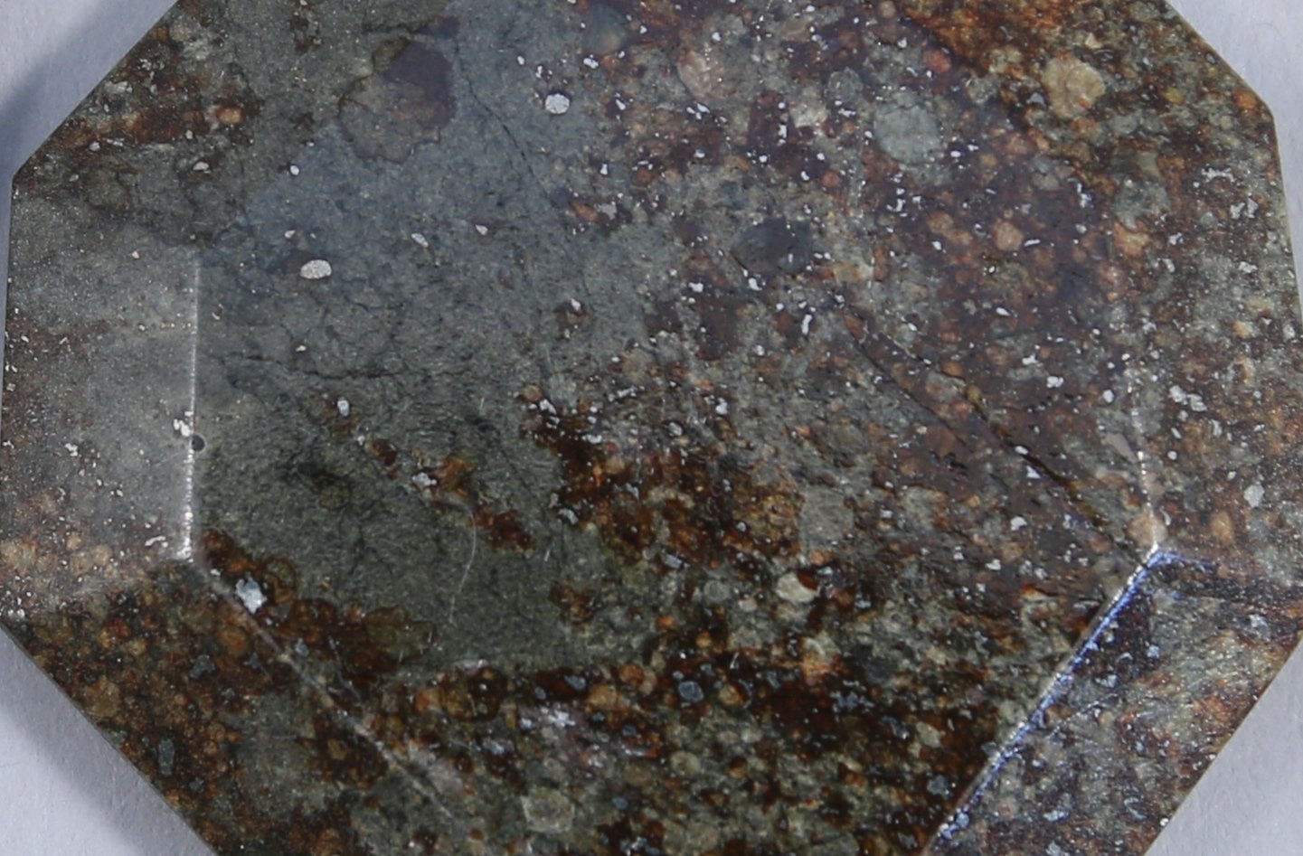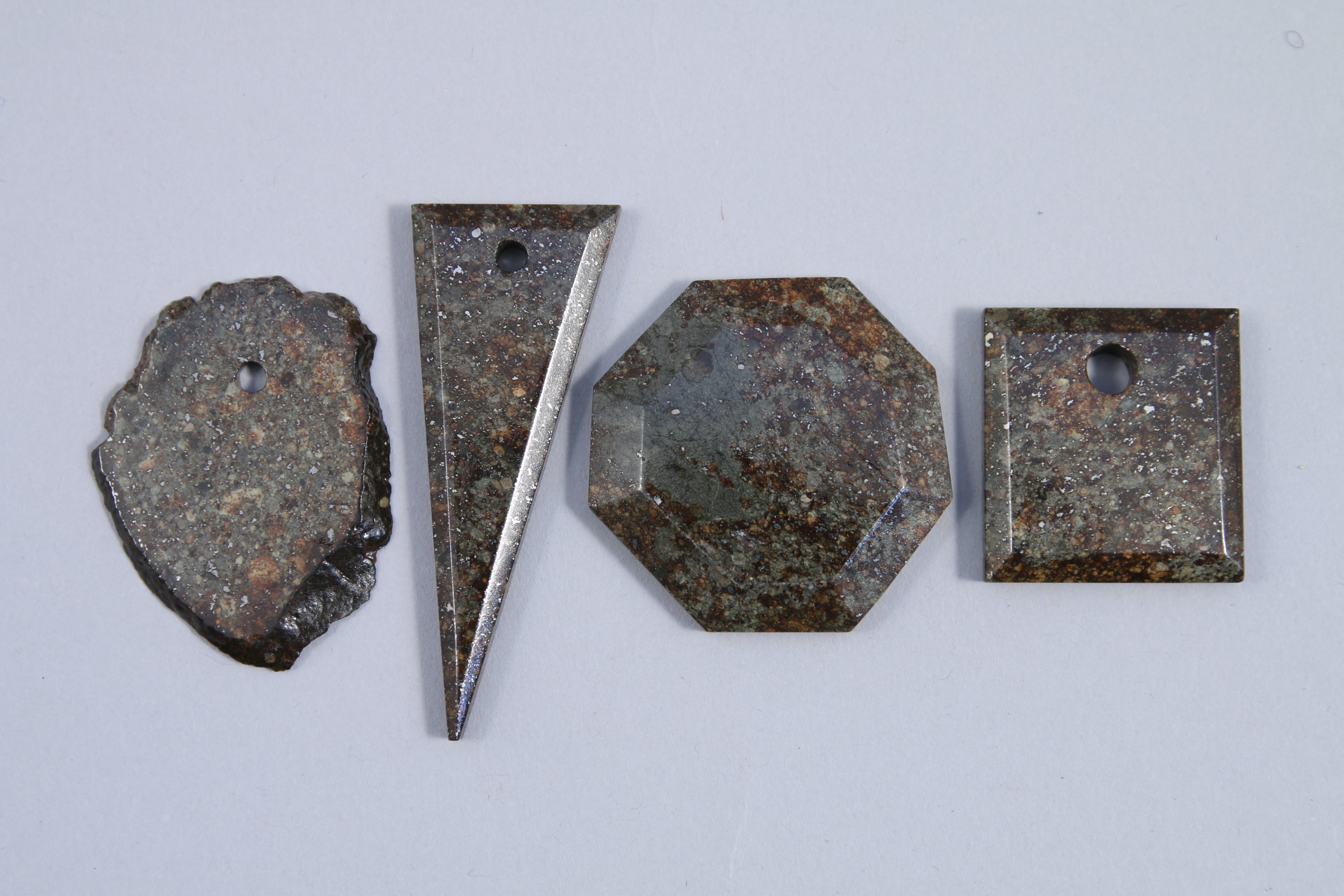 CHONDRITE H ou L. LOT de QUATRE CRÉATIONS ORIGINALES en MÉTÉORITE facettée de la " Ceinture d'Astéroïdes " entre Mars et Jupiter. Faces polies et légèrement vernies.