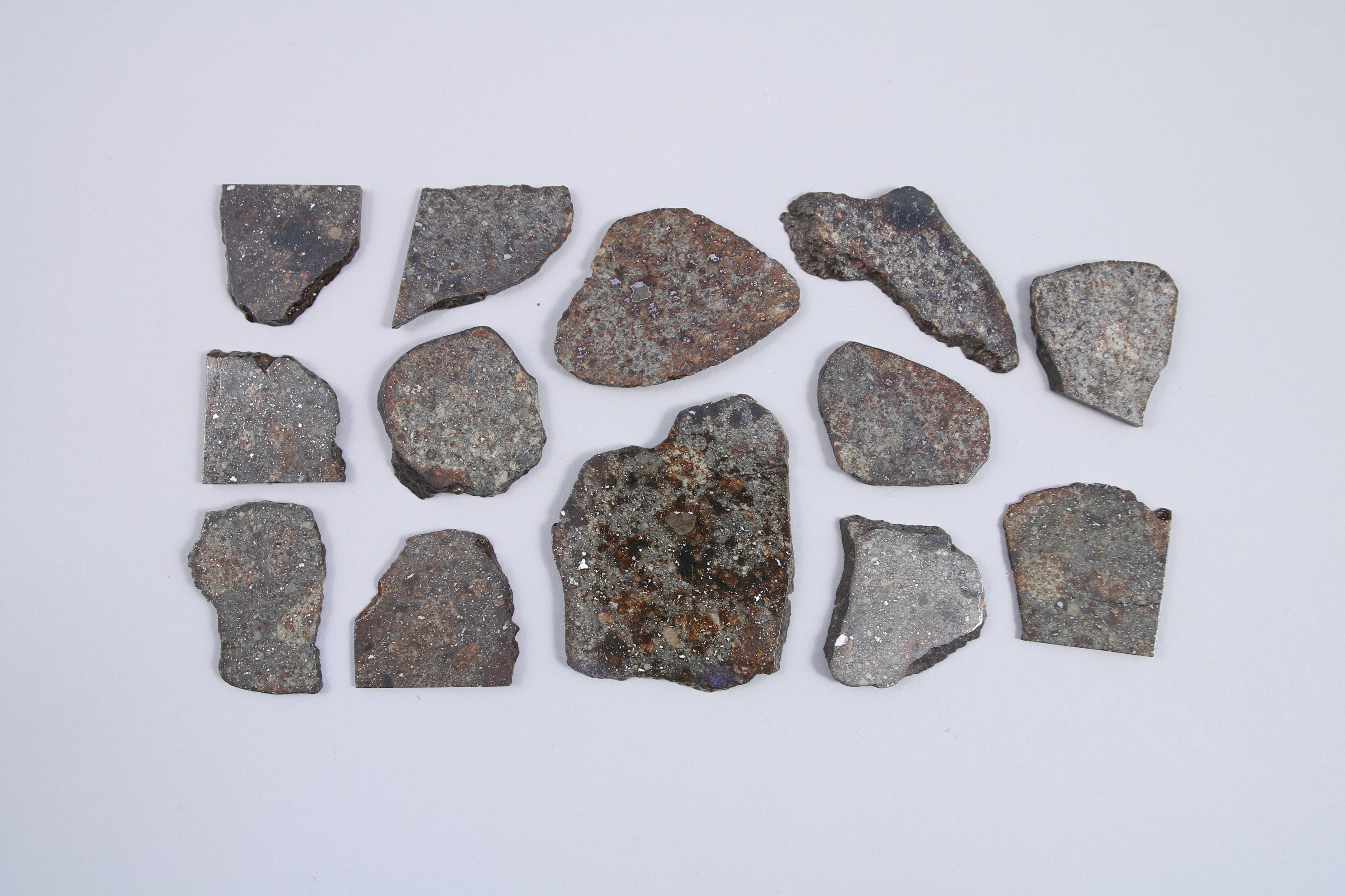 CHONDRITE H ou L. LOT de TREIZE TRANCHES de MÉTÉORITE...
