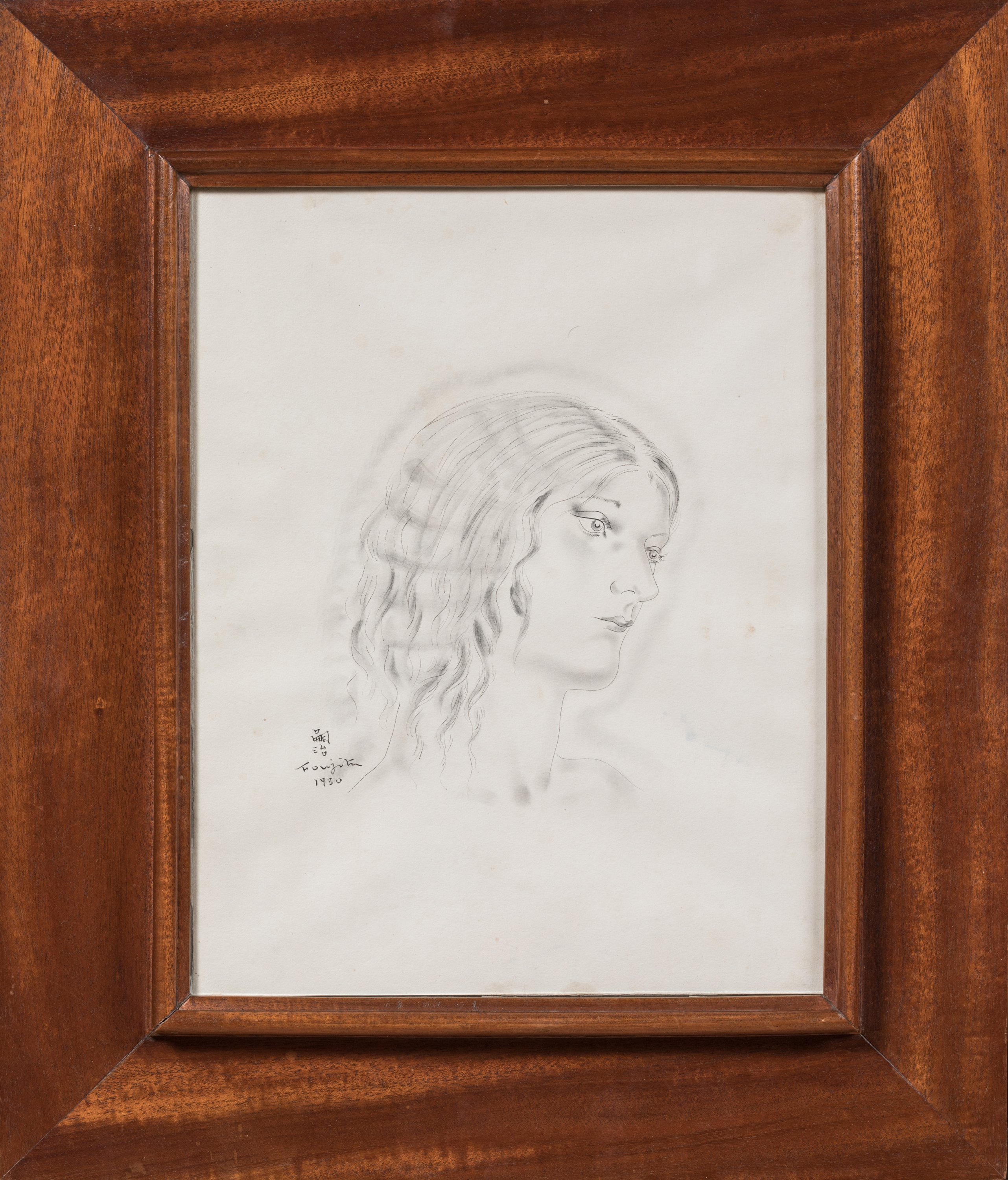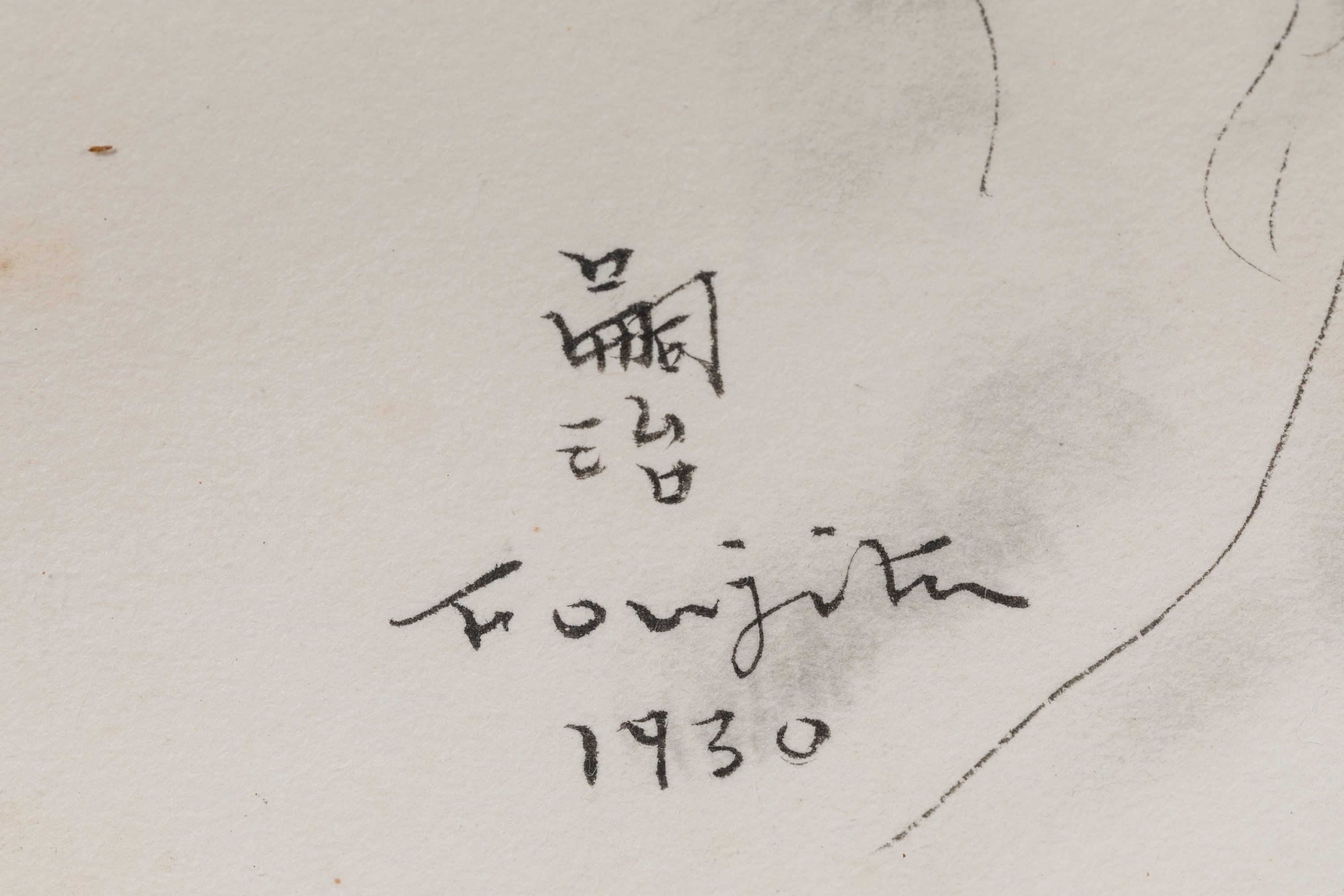 Encre et lavis estampé au pinceau, signée en bas à gauche Tsugaru en japonais et Foujita, datée 1930.