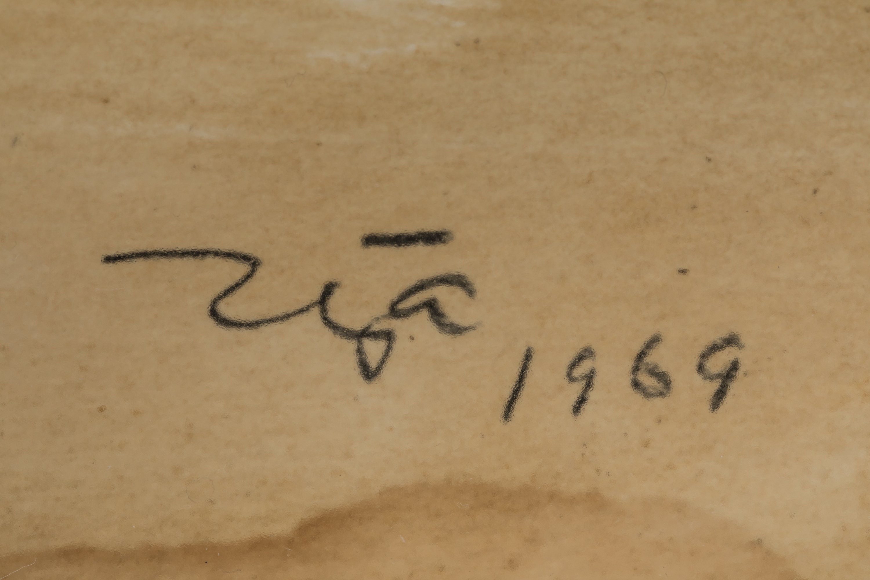 Aquarelle et crayon signée et datée 1969 en bas à droite.