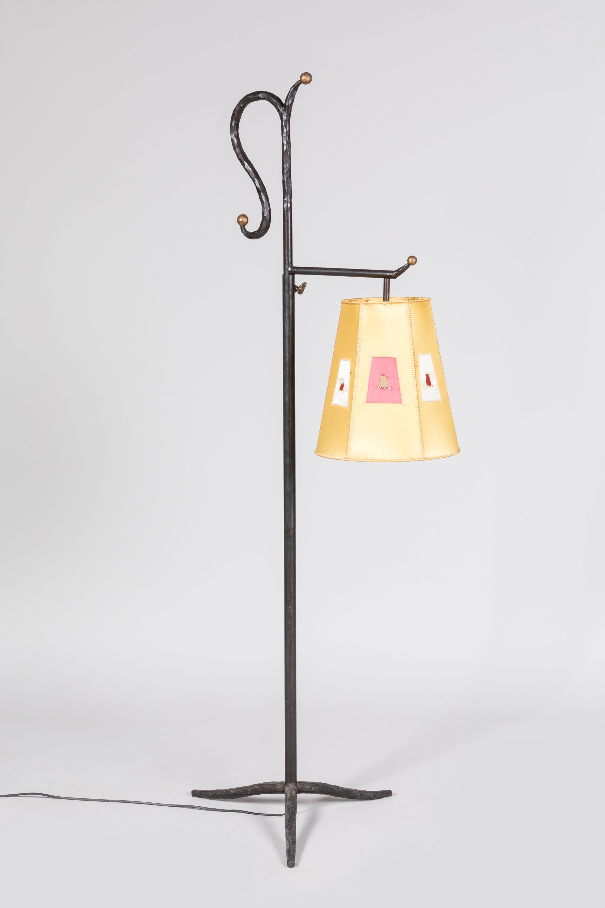 Provenance : collection d'un architecte, Sologne. Une copie d'un intéressant échange avec Élisabeth Garouste confirme l'authenticité de ce lampadaire, sans trancher sur la maternité de l'abat-jour.