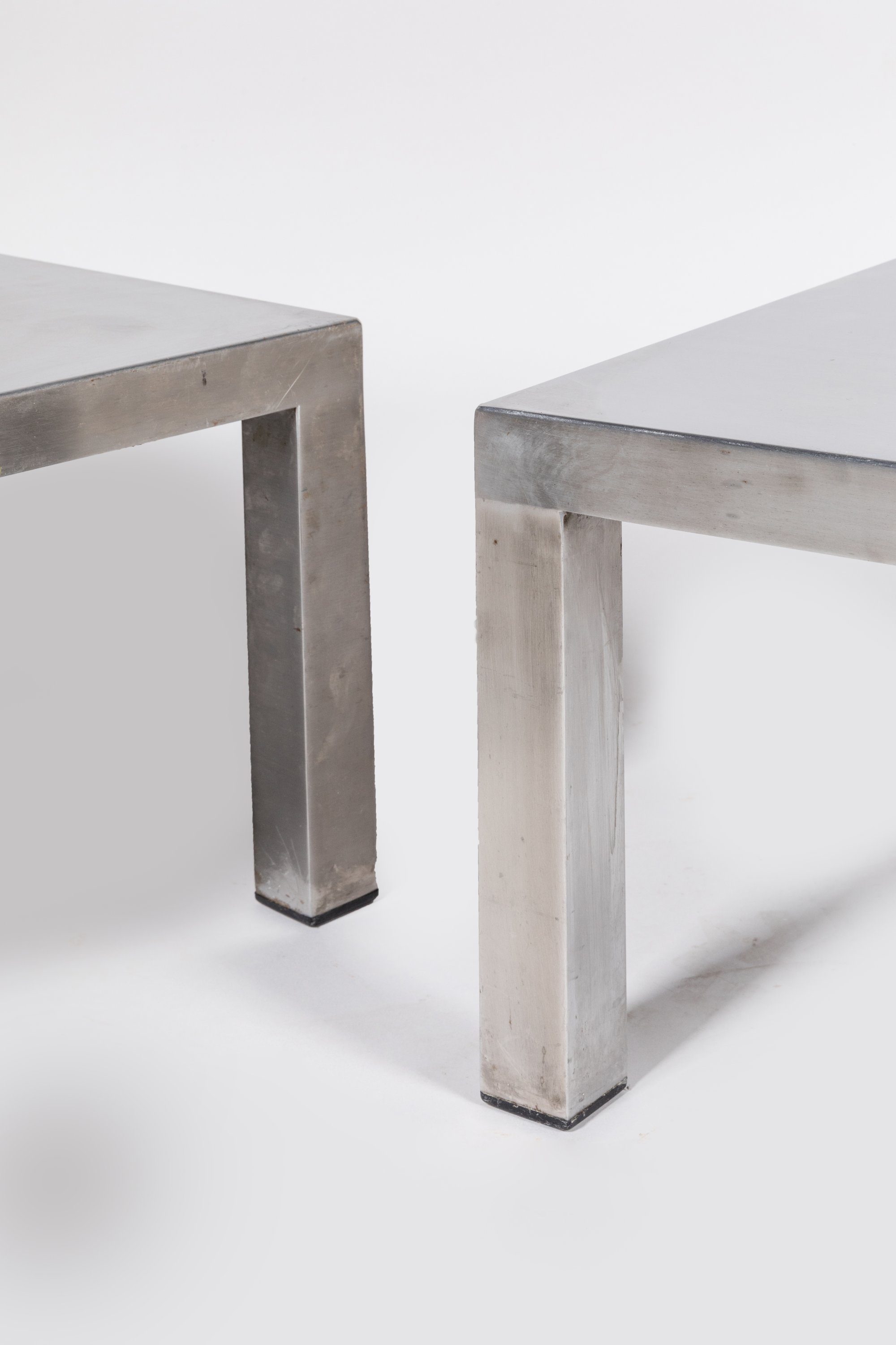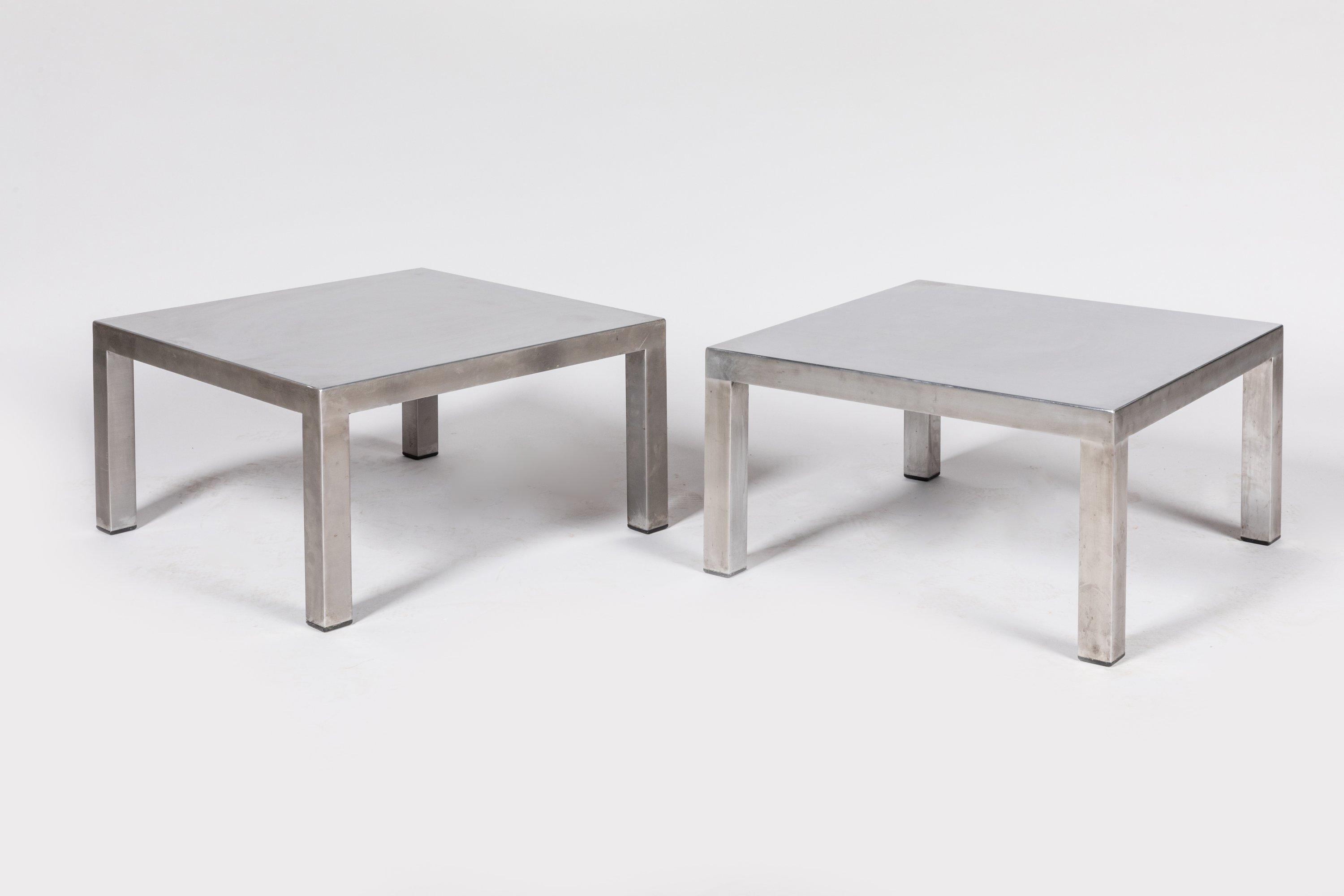 Paire de tables basses petit modèle, structure rectangulaire en bois peint en noir gainé d'acier. Patins en PVC.