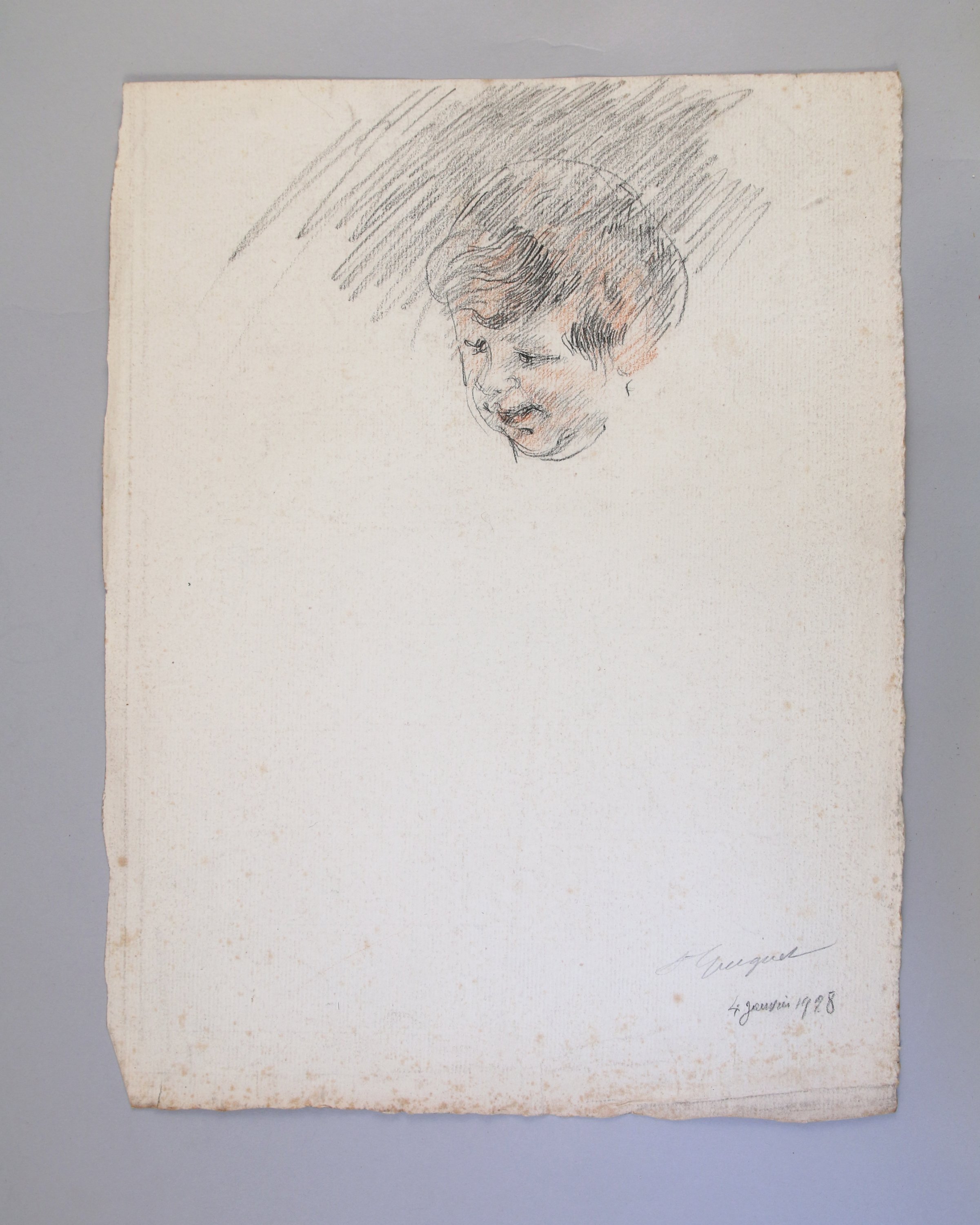 JOINT : Quatre dessins, études du visage de Bernard Ducharne enfant, signés et datés de janvier 1928 par François Joseph GUIGUET (1860-1937)