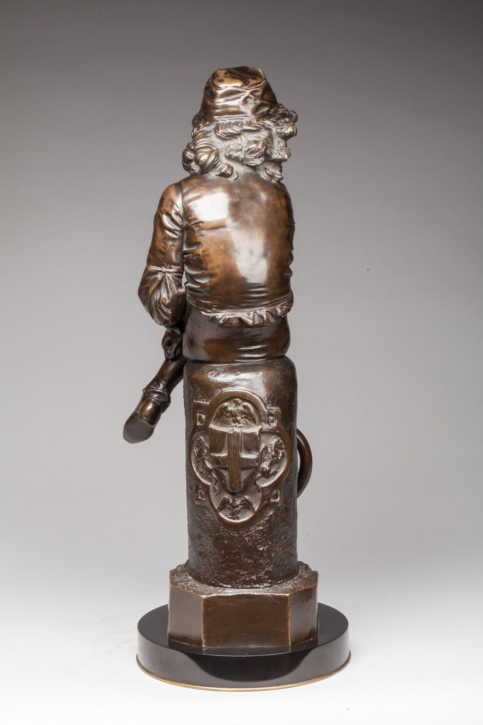 Sur un SOCLE circulaire de marbre noir cerclé de laiton.