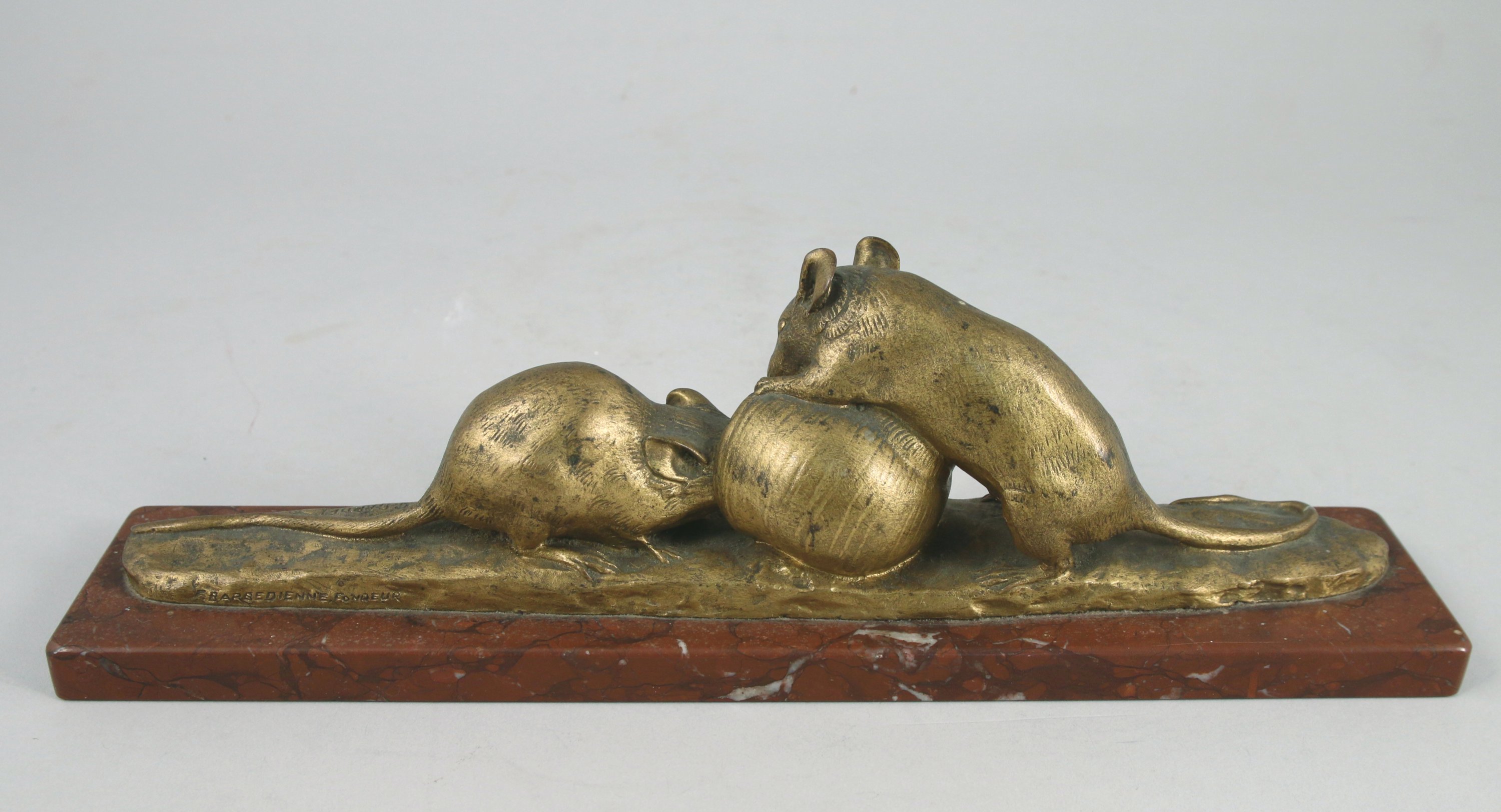 Bronze à patine dorée signé en creux sur la terrasse F. BARBEDIENNE. FONDEUR. Socle en marbre griotte avec plaquette portant l'inscription. " A MONSIEUR SCHRIBAUX, SES ÉLÈVES RECONNAISSANTS/ GRIGNON JUILLET 1918 ".