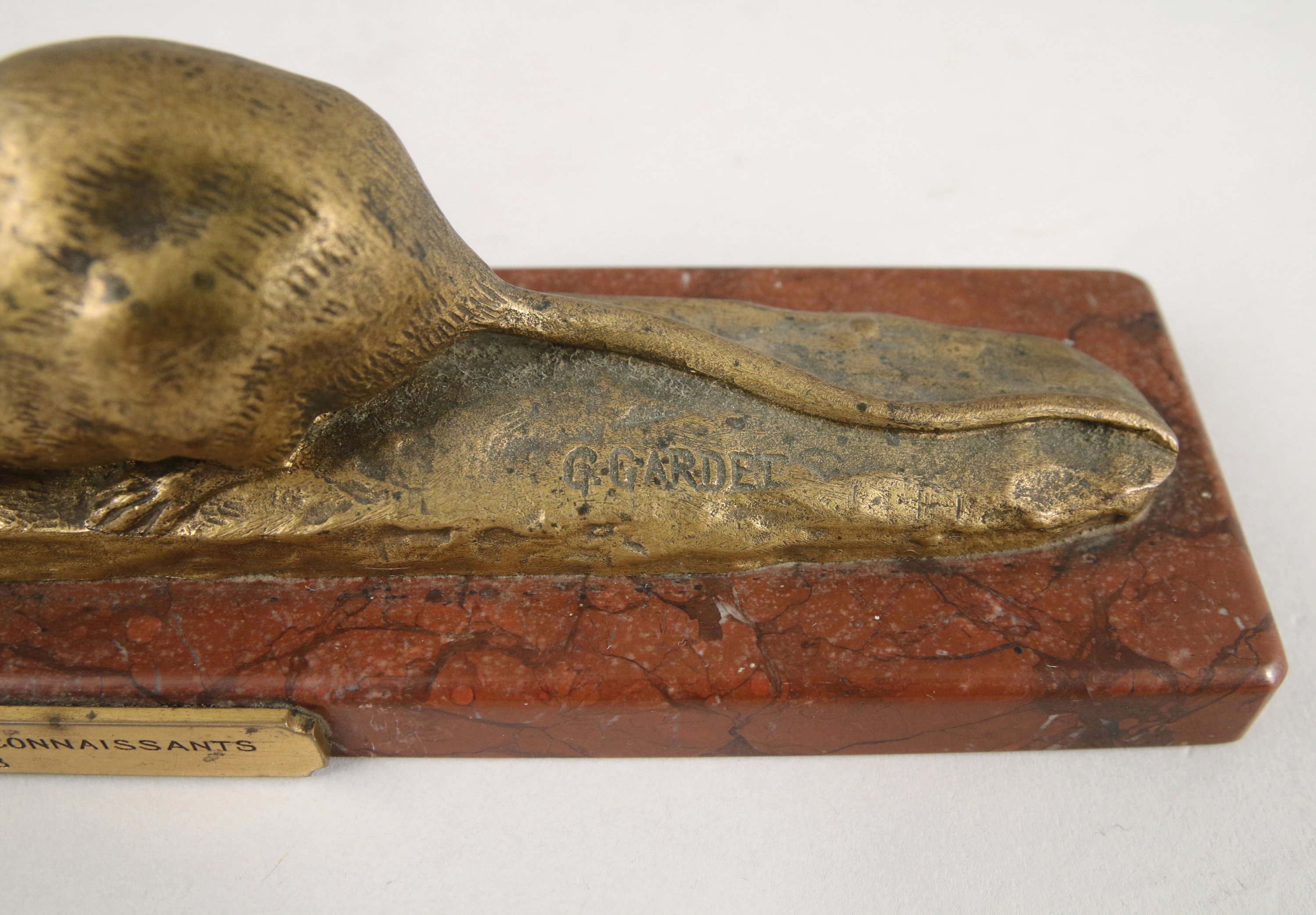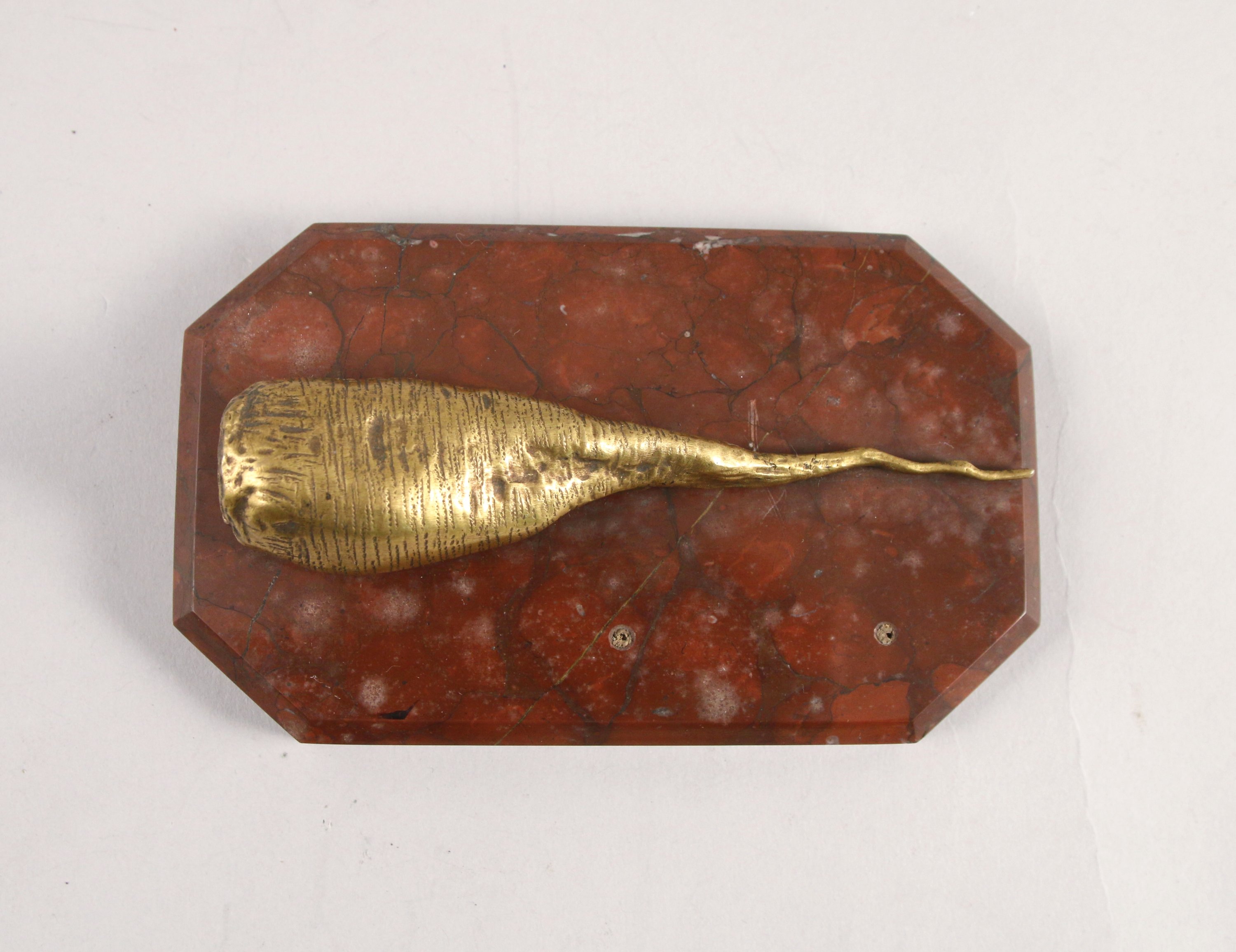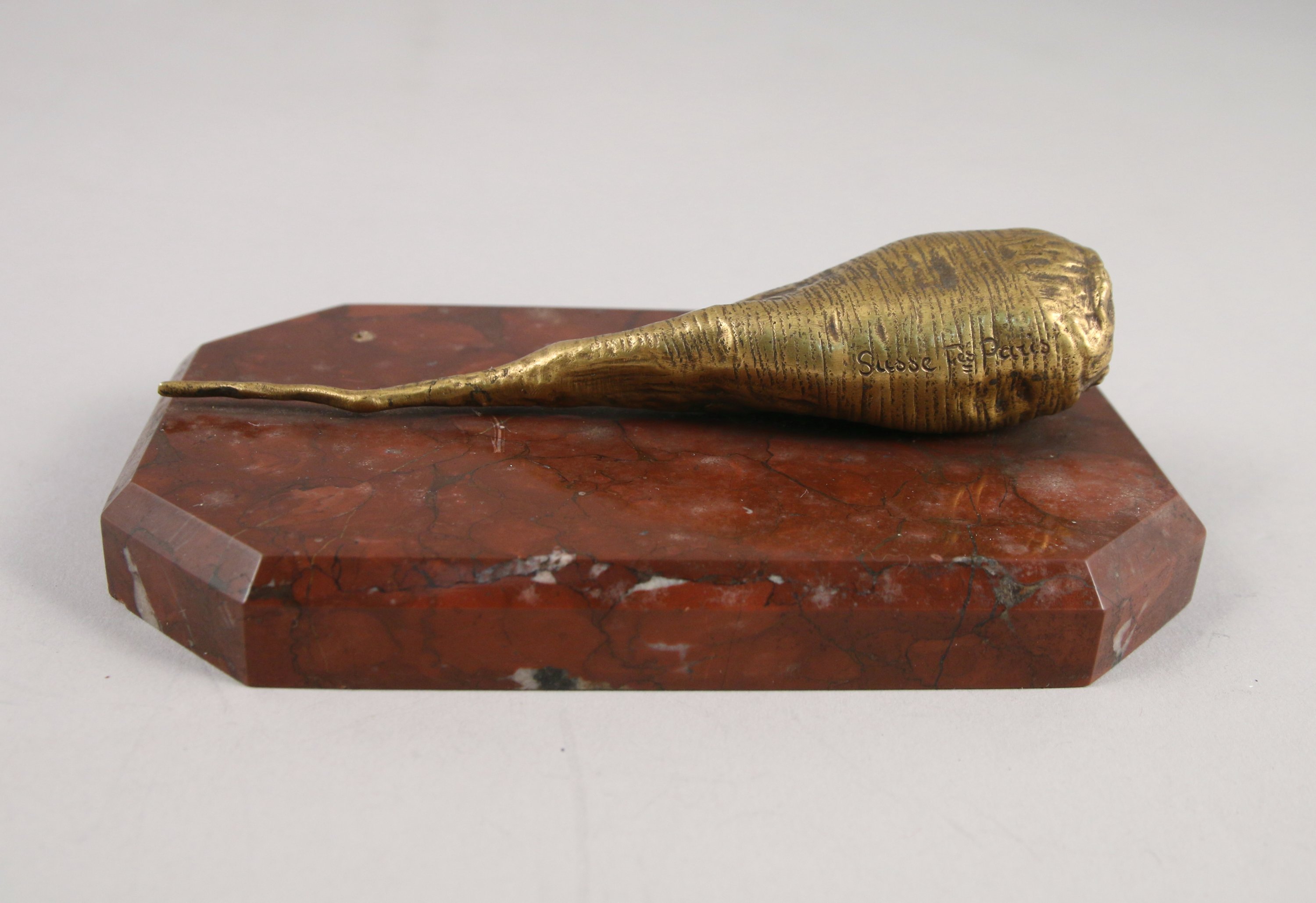 JOINT : SCULPTURE en bronze à patine dorée représentant un tubercule, signé Susse Fes Paris. Socle en marbre griotte. Long.12.