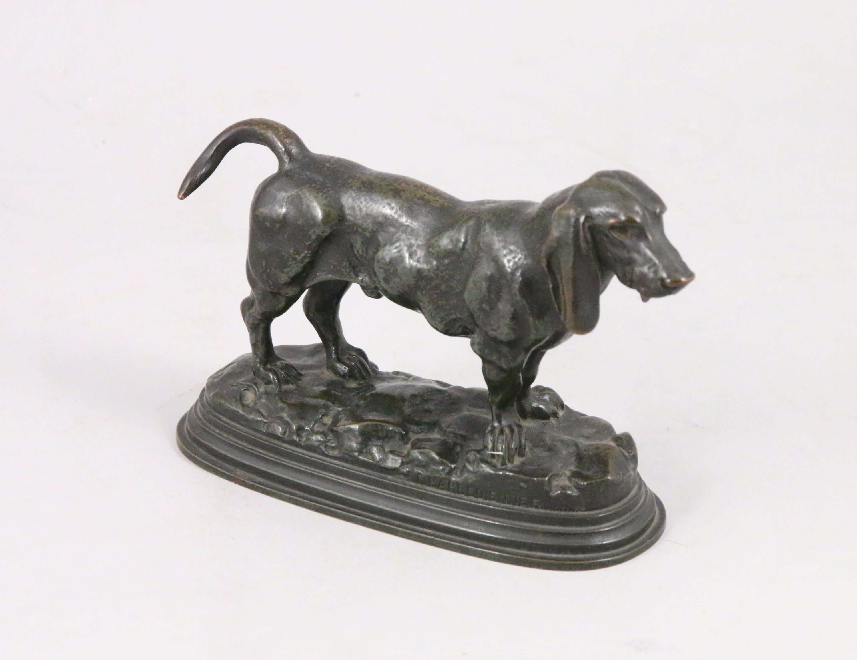 Épreuve de bronze à patine brune et verte. Signé sur la terrasse. Porte le cachet "F Barbedienne. Fondeur", et une inscription au revers 6672.