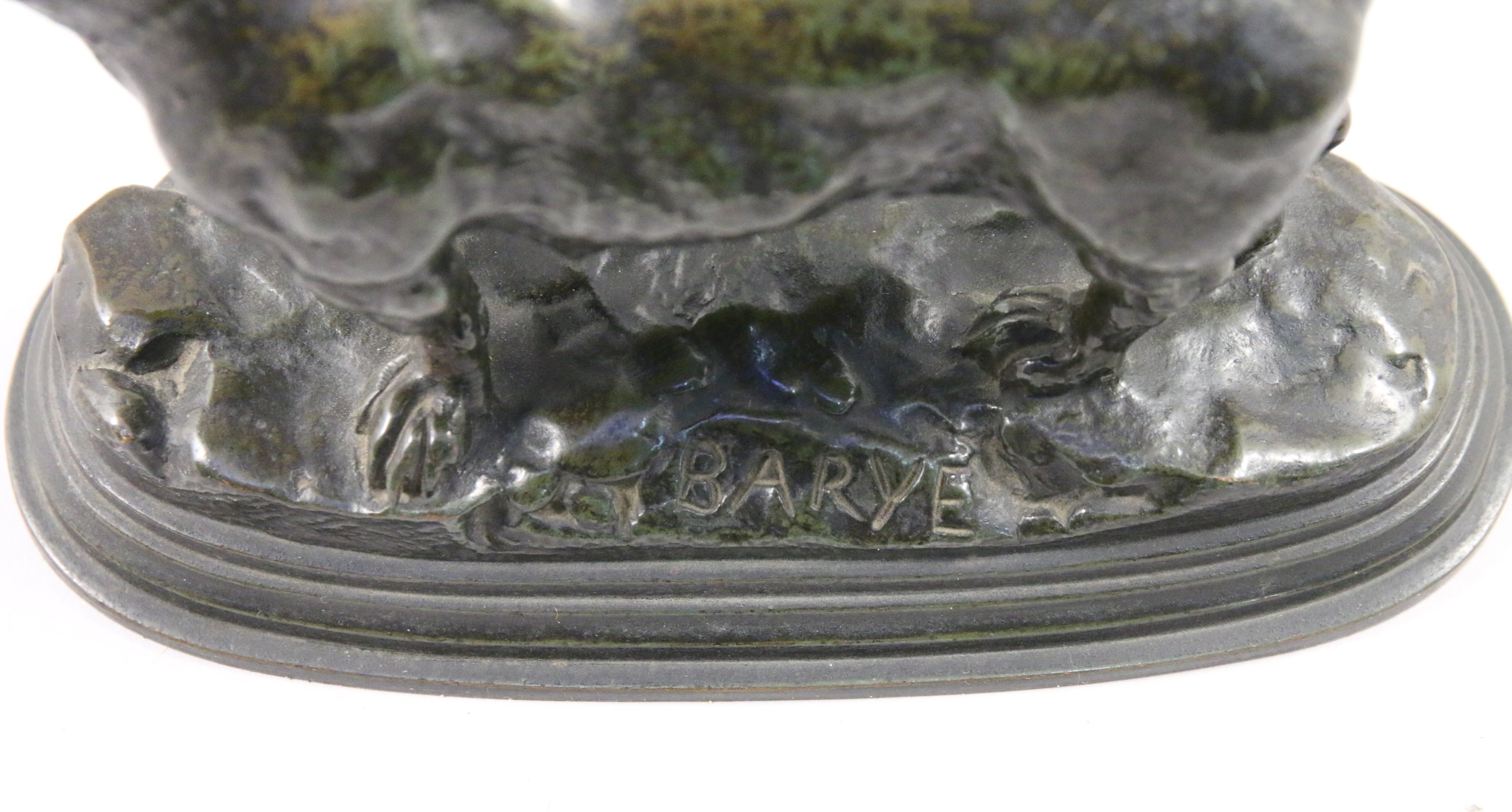 Bibliographie : Michel POLETTI & Alain RICHARME, "Barye, Catalogue raisonné des sculptures", éds. Gallimard, 2000, p.157, modèle illustré sous le numéro 115 " h: 0,102 ; l:0,157... épreuve authentique, édition ancienne de F. Barbedienne fondeur."
