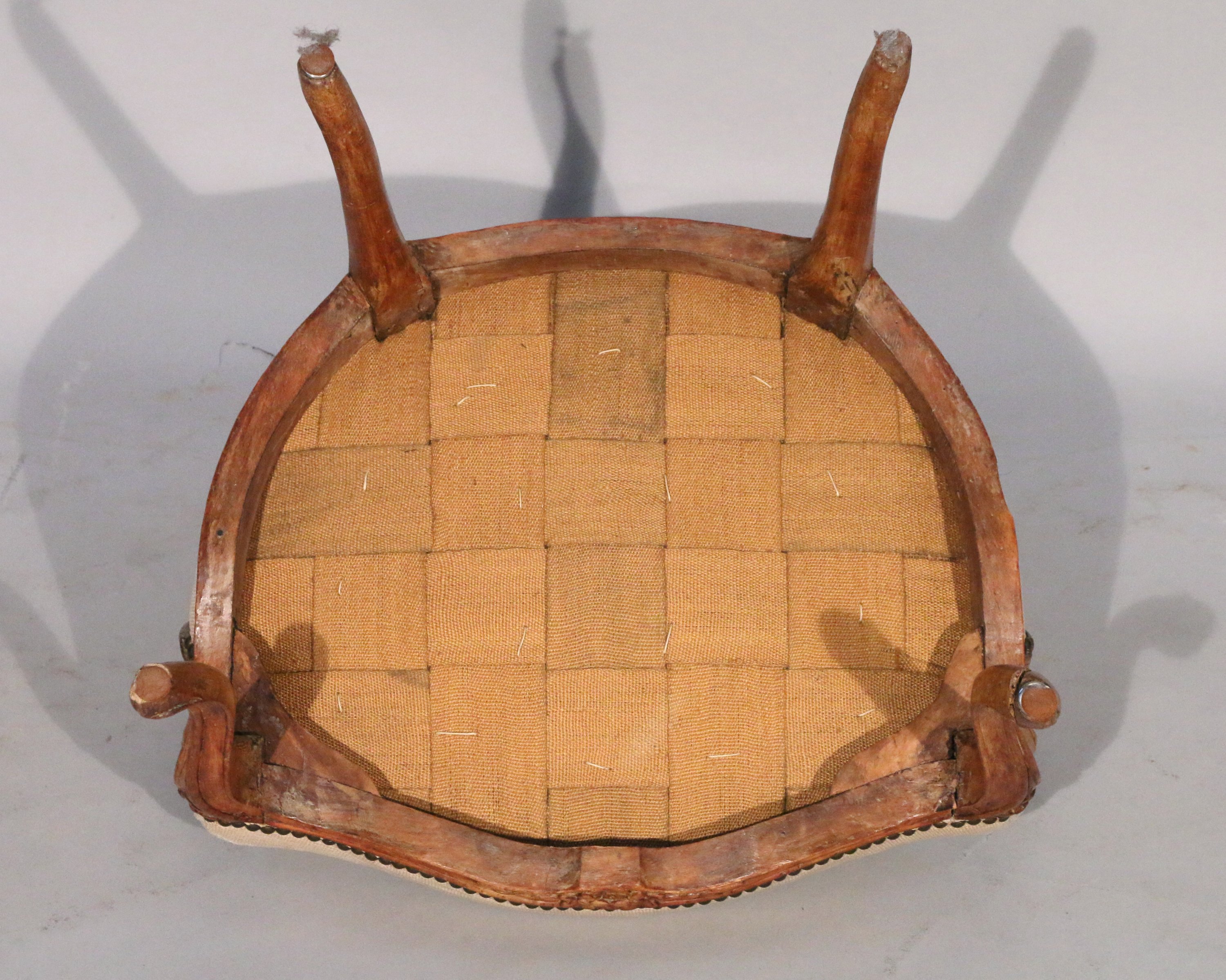 Recouvert d'une tapisserie au petits points à décor de fleurs tels que lys dans un encadrement à enroulement.