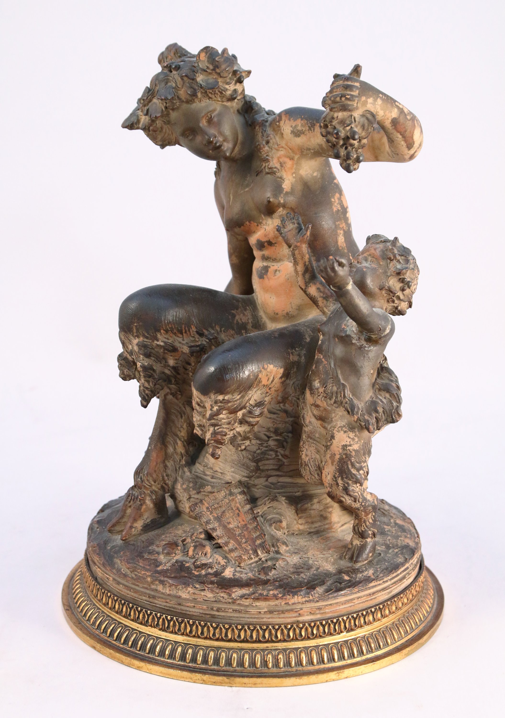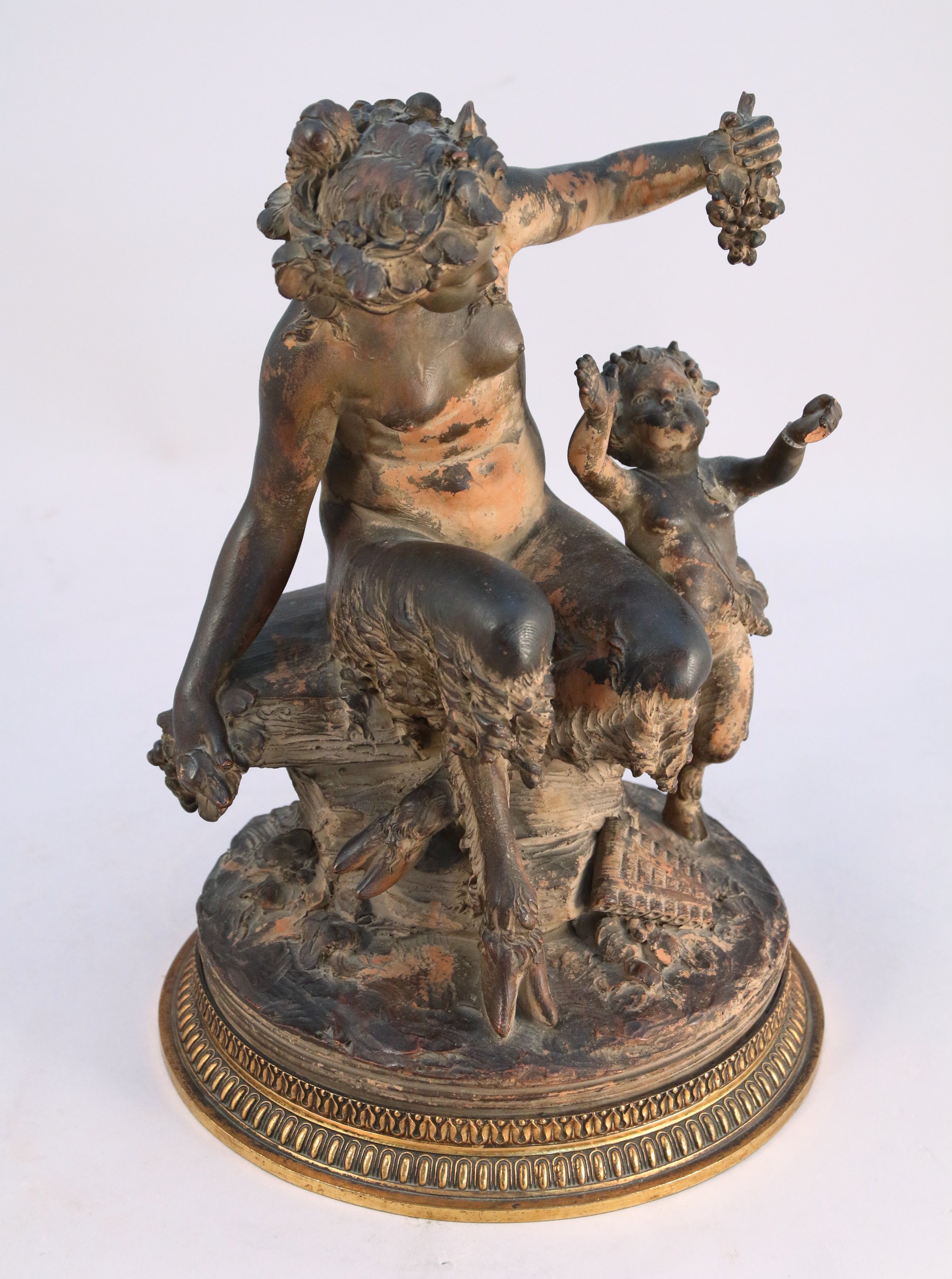 FAUNESSE et ENFANT jouant avec une grappe de raisin.