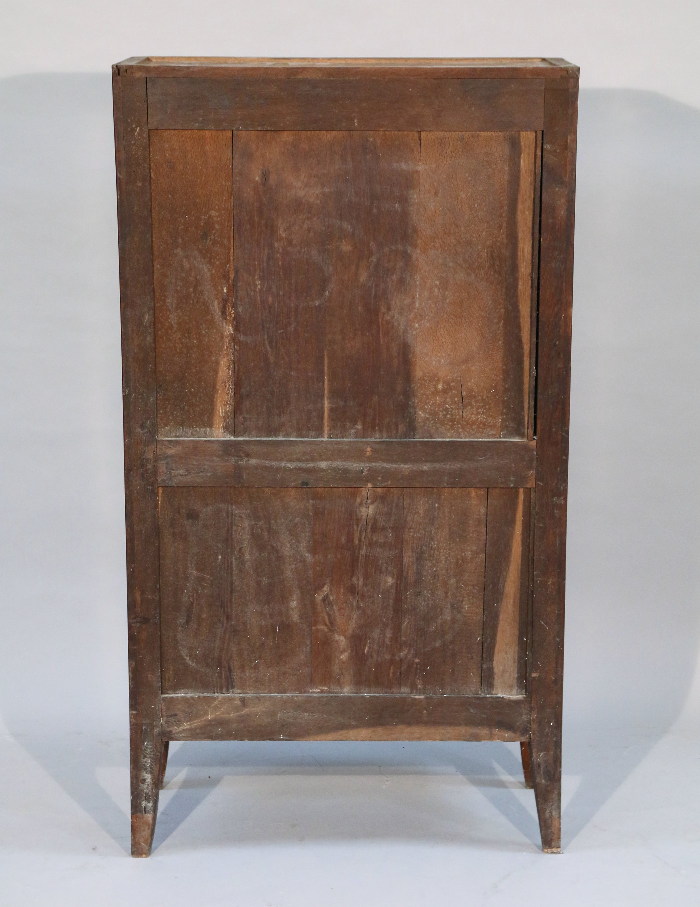 Pieds avant cambrés garnis de sabots de bronze à décor feuillagé. Entrées de serrures et anneaux de tirage en bronze doré et ciselé à décor de noeud de rubans.