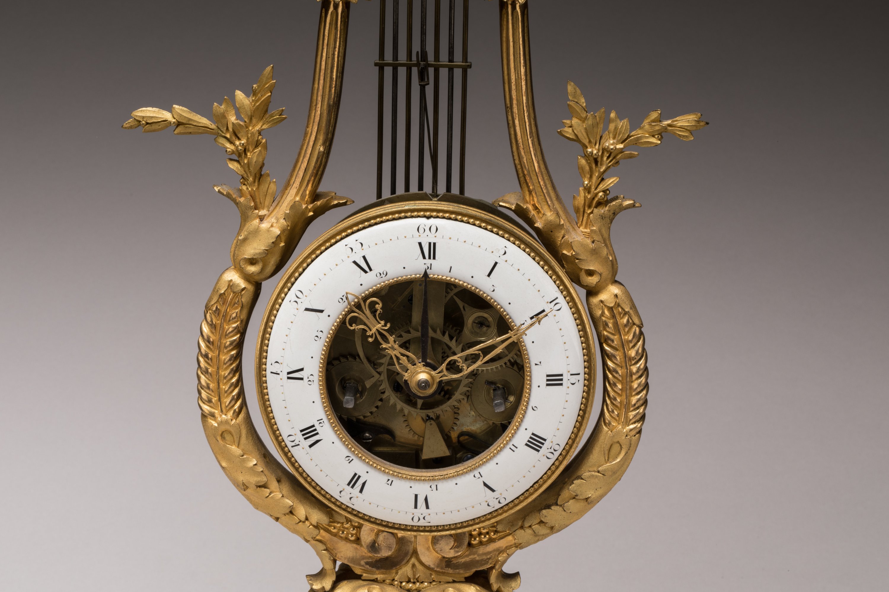PENDULE LYRE en bronze ciselé et doré.