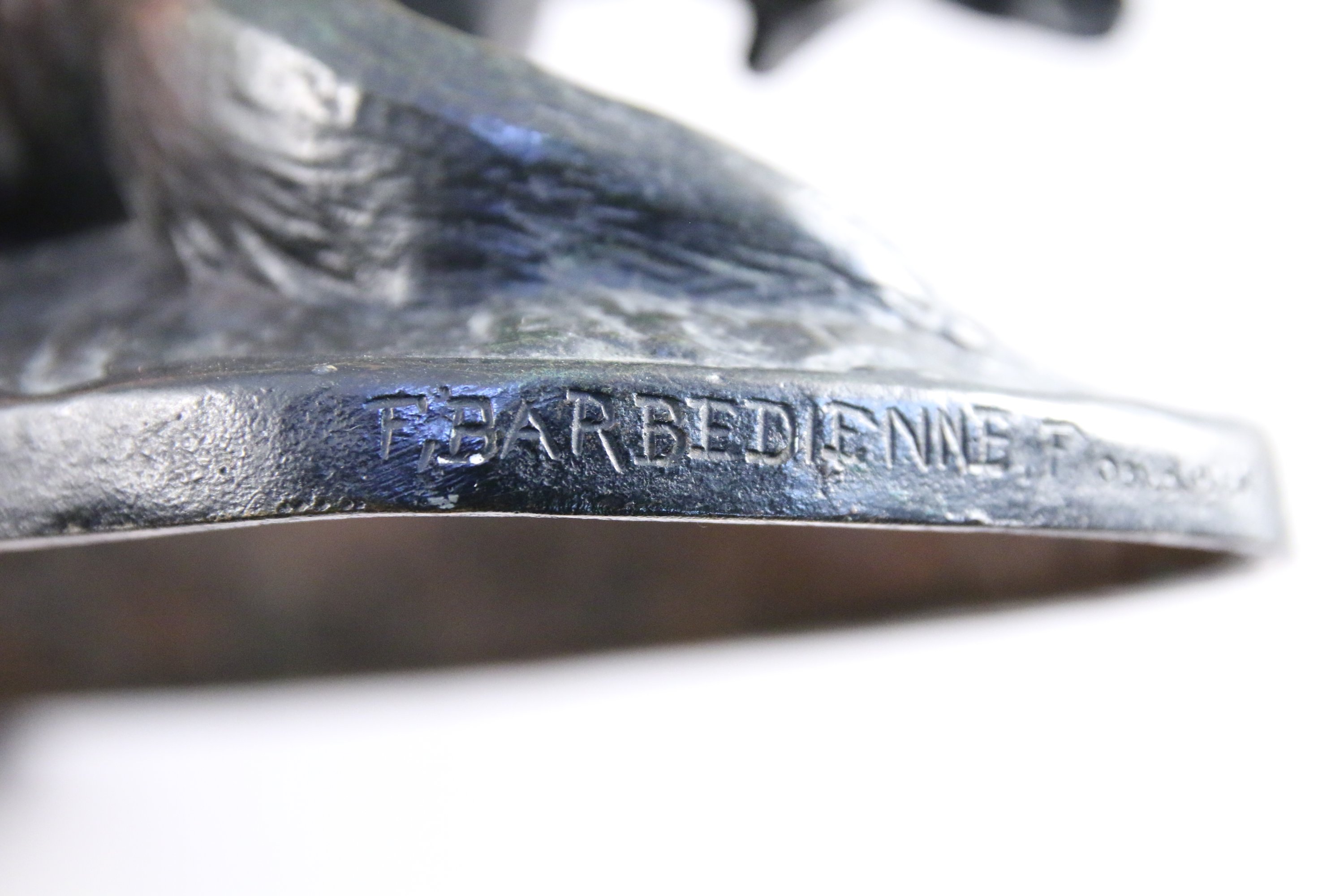 Épreuve en bronze à patine brune. Signée Barye sur la terrasse et marqué "F. Barbedienne. Fondeur Paris".