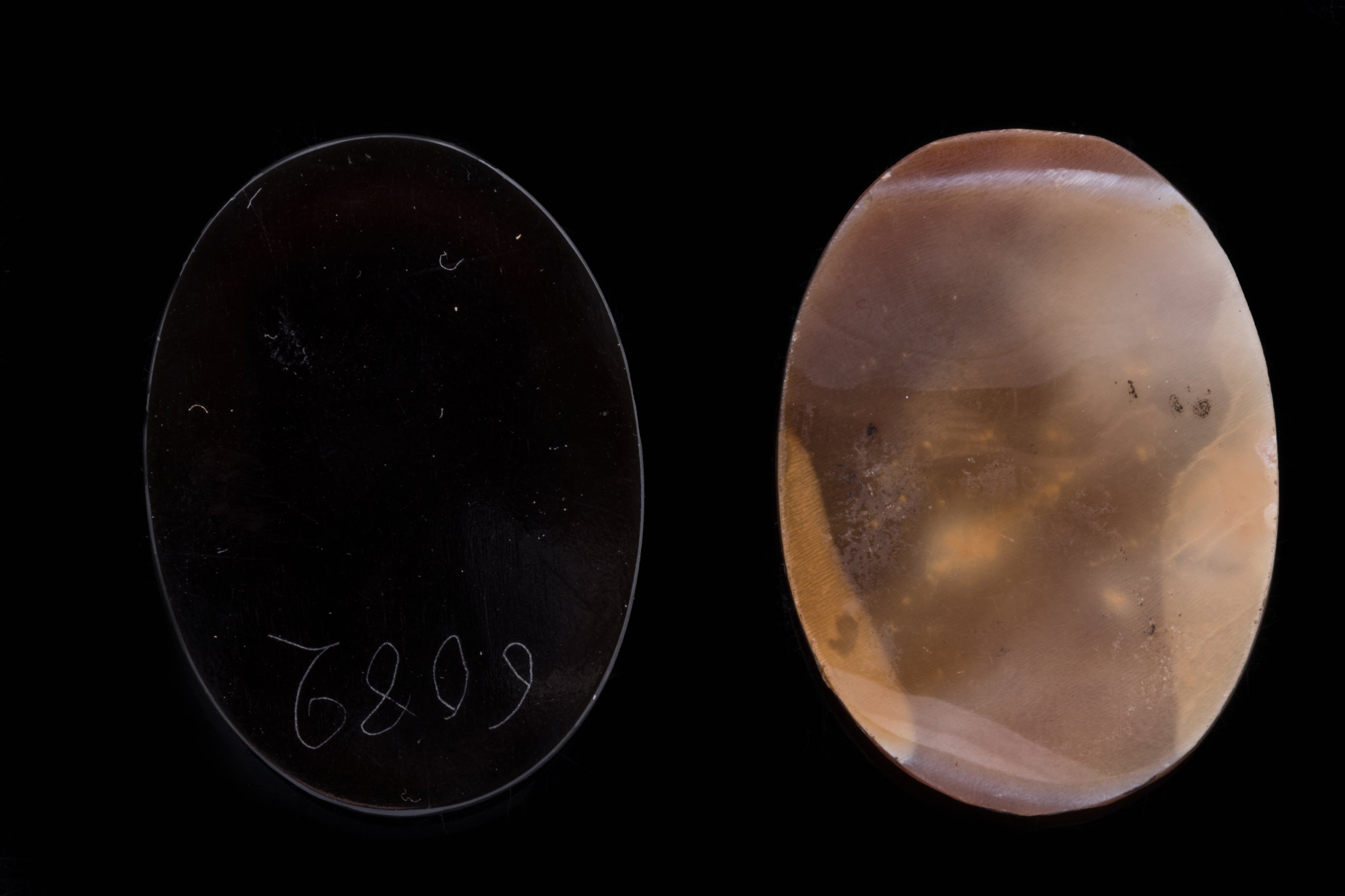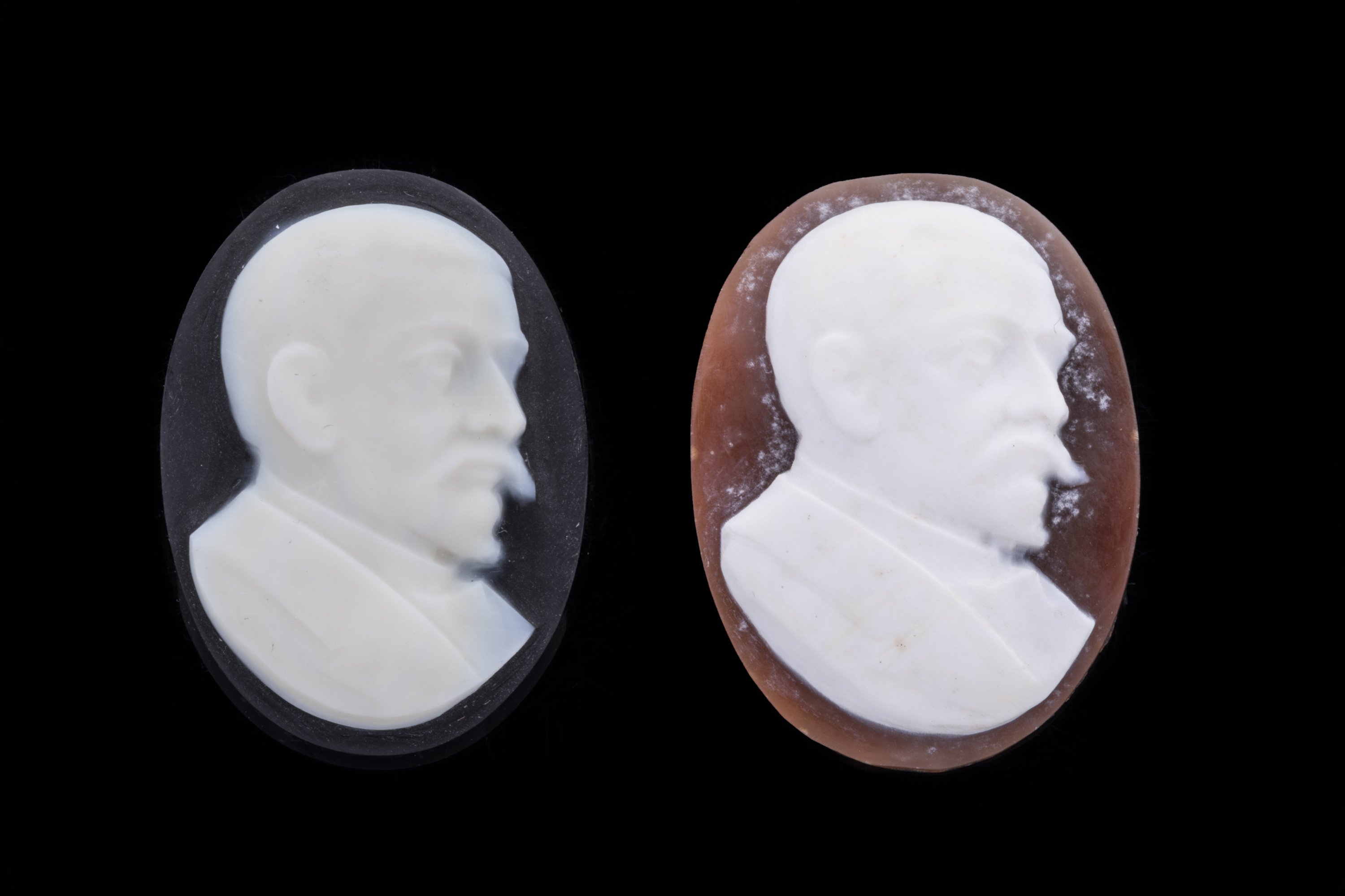 RÉUNION de deux CAMÉES l'un sur ONYX, l'autre sur COQUILLAGE de forme ovale représentant chacun un HOMME à la MOUSTACHE.