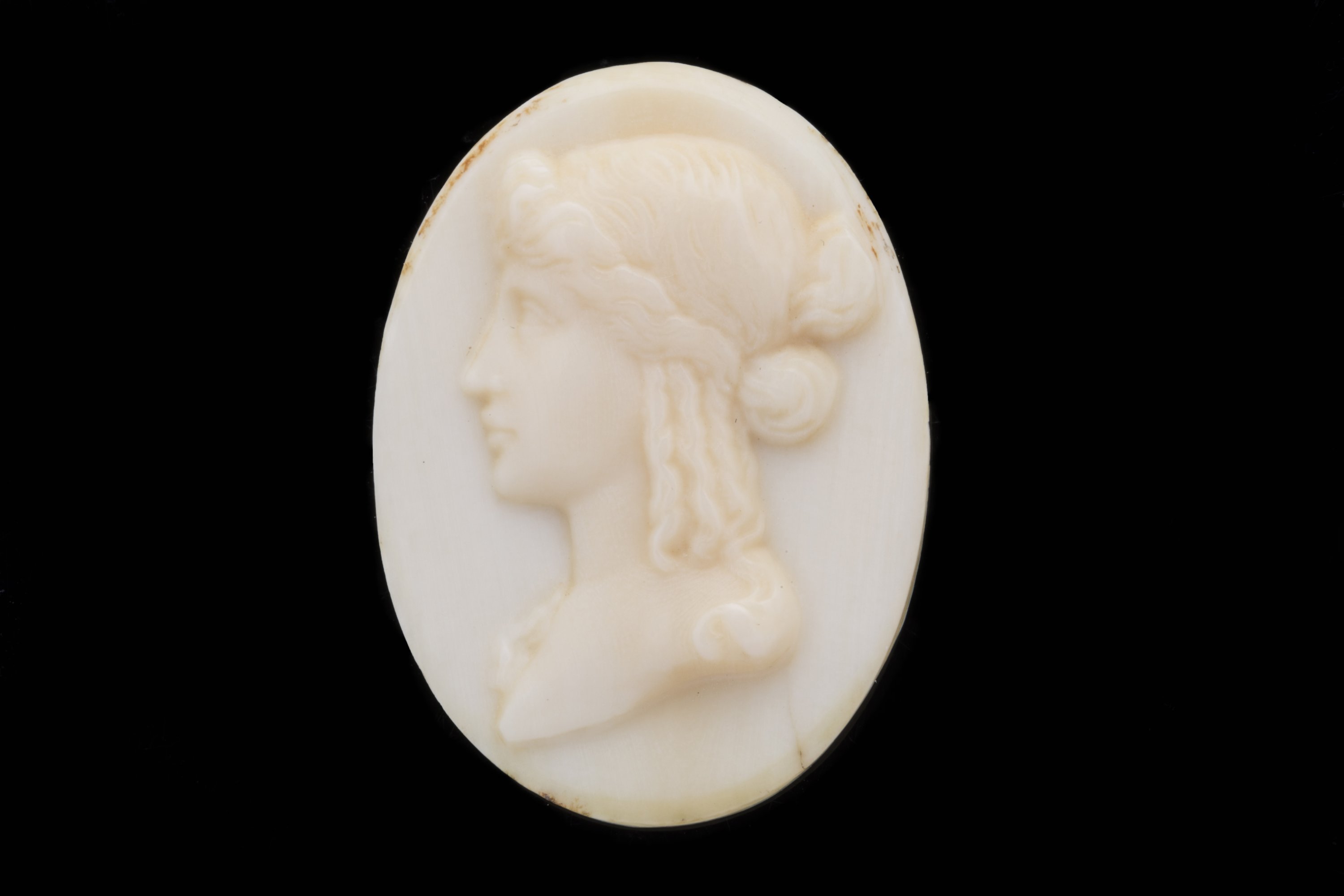 CAMÉE sur IVOIRE de forme ovale représentant une PROFIL FÉMININ coiffé à l'antique.